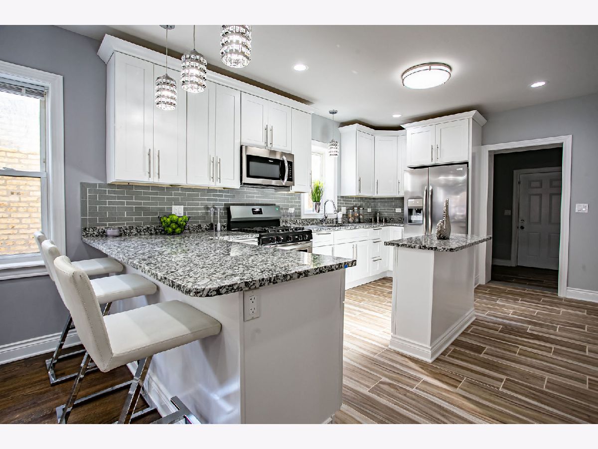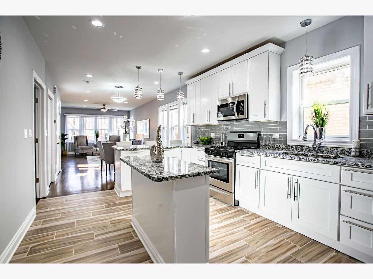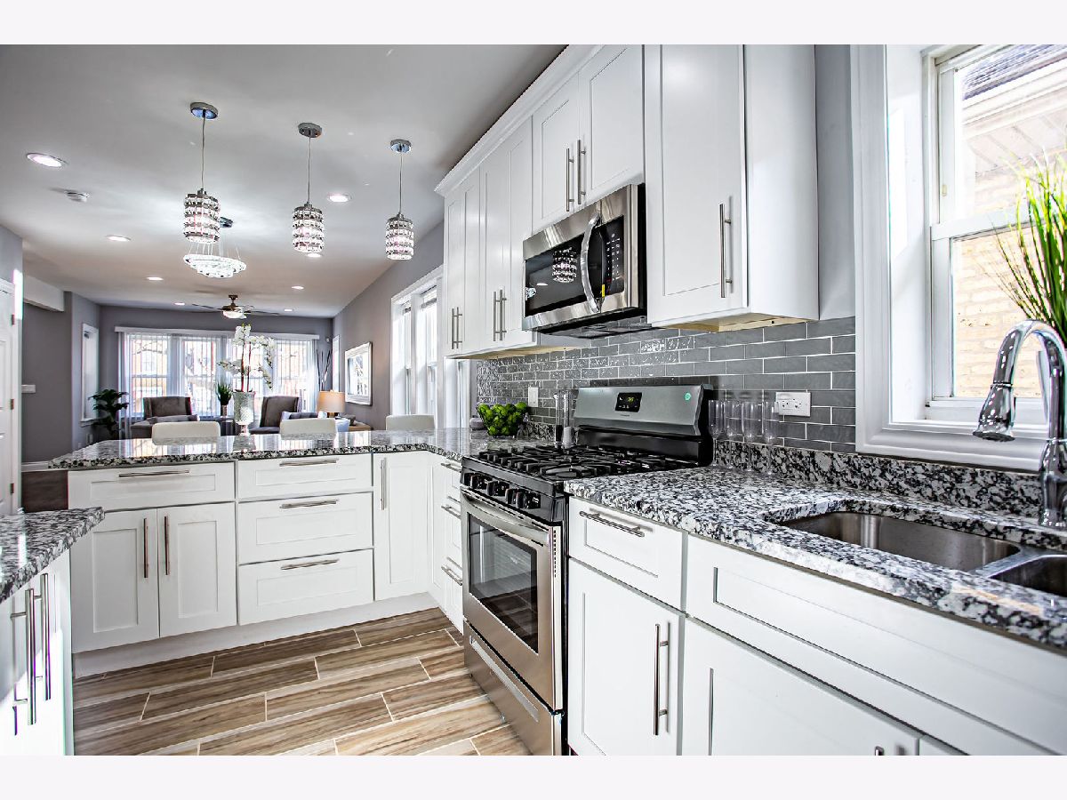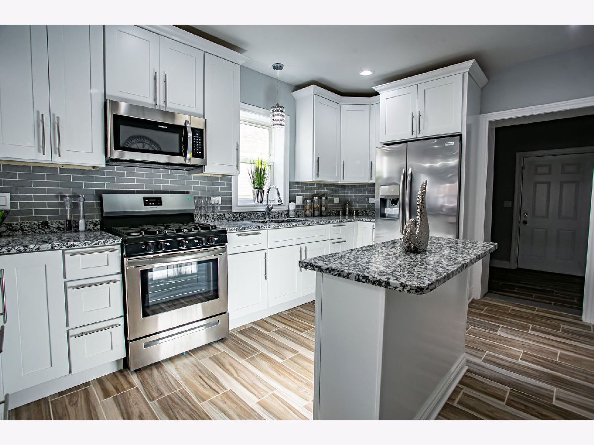 BEAUTY IS HER NAME! You will not be disappointed with this gorgeous, modern, and extravagant jumbo bungalow that has been thoughtfully renovated with 3 levels of living space! Come and experience the open and inviting floor plan with gleaming hardwood floors throughout that exquisitely highlights this 4 bedroom, 3.5 bath plus bonus room masterpiece. Enjoy the central air, formal living and dining rooms, state of the art kitchen with custom white shaker cabinets, lovely granite counter tops, lovely back splash, island, & stainless steel appliances. There is a lovely half bath off of the dining room. You will love the main level master bedroom with washroom and huge walk in closet. Second floor highlights include 3 generously sized bedrooms with huge closets, a den area, and full bathroom. The basement features a huge family room/recreation area, laundry room, full bath, and bonus room with closet that can be used as another bedroom. Let's go outside and love the deck which offers a view of the downtown skyline and sears tower, nice sized yard, & brand new 2 car brick garage. EXTREMELY LOW Property taxes, great location only minutes to shopping malls, Walmart, and Metra stop. Act quickly you will not find another home like this one! HIGHEST & BEST by 04/14/20 11:30am