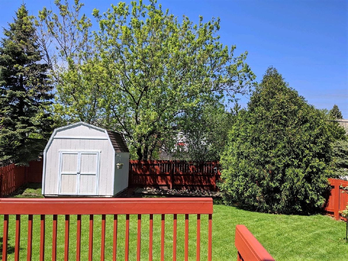 Welcome to this beautifully maintained, move-in ready home in the desirable College Trail subdivision. This large 3-bedroom, 2 1/2-bath duplex model with the hard to find 2-car garage is waiting for you. Located next to the Brae Loch Golf Course and near Rollins Savannah and featuring 2 parks within a 5-minute, walk there is plenty of green space. The downtown is just over a mile away, as well as the library and swimming pool. The College of Lake County is just down the road. Both train stations are about a 5-minute drive, and there are Pace bus stops within a short walk. When you walk in the front door, you are greeted by tall ceilings and an open entryway. The living room and dining room are flooded with light from the large windows, and vaulted ceilings give these rooms an open and airy feel. Both rooms are freshly painted and have new carpeting. The kitchen has been updated with new luxury vinyl flooring, door hardware, fresh paint, and updated appliances. There is an island with a breakfast bar as well. As you look around, you will find plenty of storage and countertop space. Right off the kitchen is the family room, with lots of windows, as well as a built-in entertainment center with plenty of storage underneath. All the windows throughout the house have been replaced in the last 4 years and feature new custom cellular shades. The 2nd floor features 3 bedrooms, 2 bathrooms, and the conveniently located laundry area with brand new large capacity washer and dryer. Like the first floor, the entire second floor has been freshly painted. The bedroom windows also feature new custom room darkening cellular shades. The master bedroom has vaulted ceilings, two large closets with new closet organizer systems with plenty of storage. There is also a nicely appointed master bath with updated fixtures and new luxury vinyl flooring. The two other bedrooms both have large wall closets, and the 2nd upstairs bathroom also has new luxury vinyl flooring and fixtures. Enjoy meals and family get-togethers on the large deck and patio off the kitchen. The back yard is fenced in with nice landscaping, making this a quiet haven to relax in. There is also a large shed in back with a loft, painted to match the house. The furnace and water heater were both replaced in 2015, and the A/C in 2019.