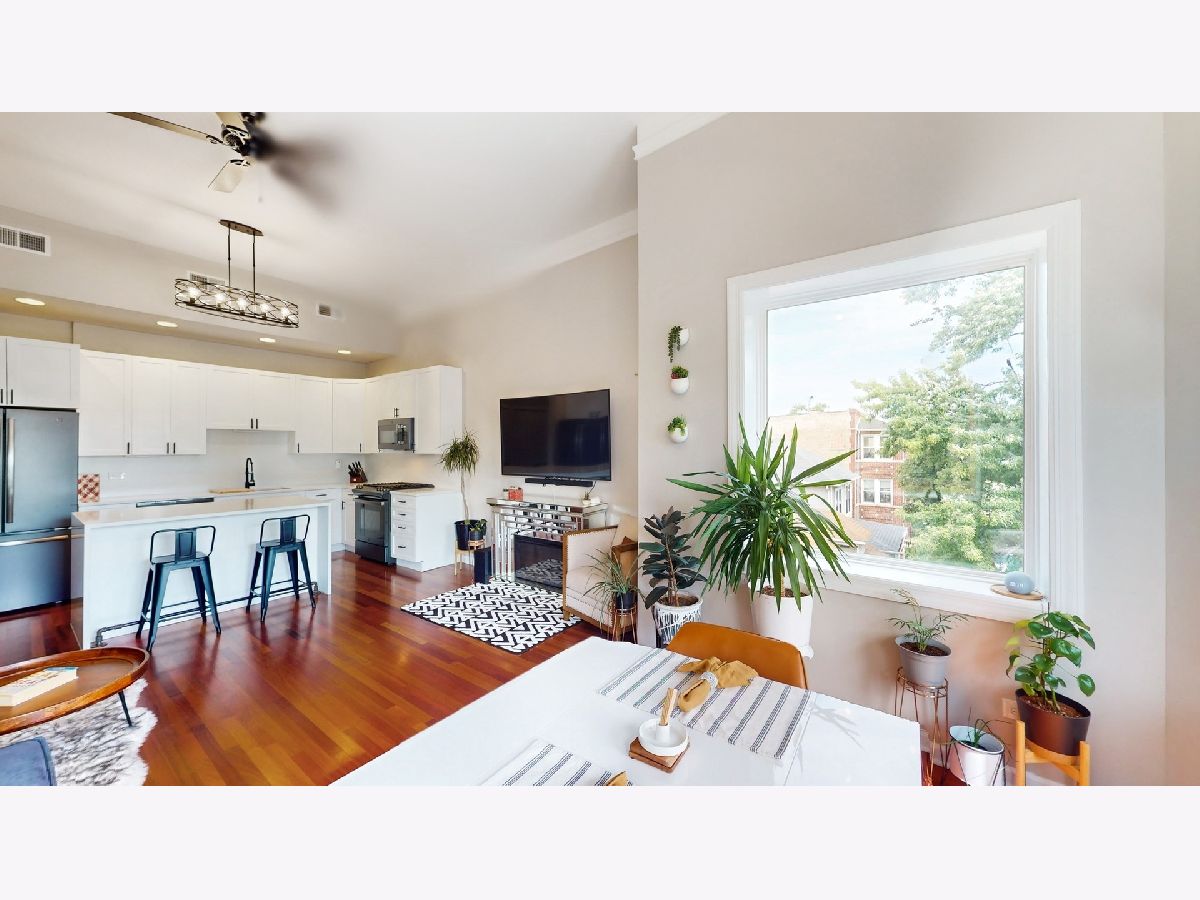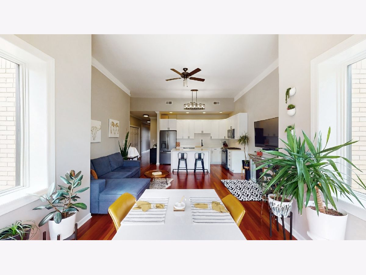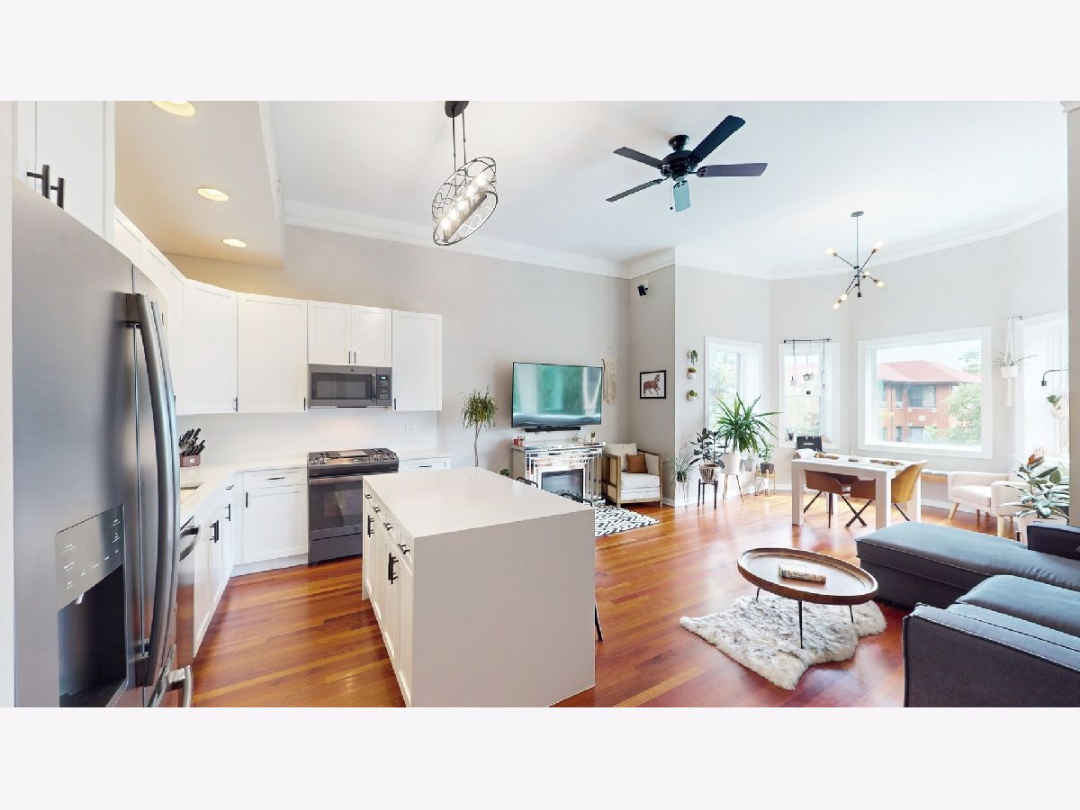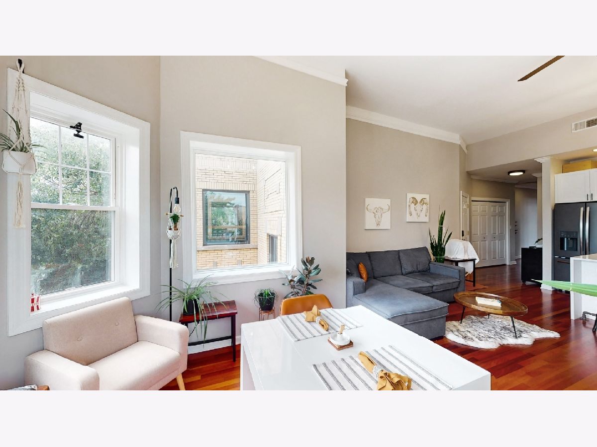 Enjoy luxury and space in this stunning top floor 2 BED + DEN / 2 BATH treetop condo! Sun-filled with 12.5' ceilings, open floor plan and great views East. Extra-wide unit is great for entertaining, gourmet kitchen w/island, over $50k in upgrades throughout the unit, master suite w/walk-in closet & granite bath, large 2nd bedroom, spacious den/office, huge 18' x 8' covered deck, in-unit washer/dryer, 2 car tandem parking! Also includes massive 10' x 8' secure storage room! Close walk to restaurants, shopping and Brown Line! Only 1 block east to the 12+ acre Ronan Park. The park includes a native river edge wildlife woodland habitat along the North Branch of the Chicago River -it's a perfect spot for bird watching or taking a nature hike. Check out the virtual floor plan!