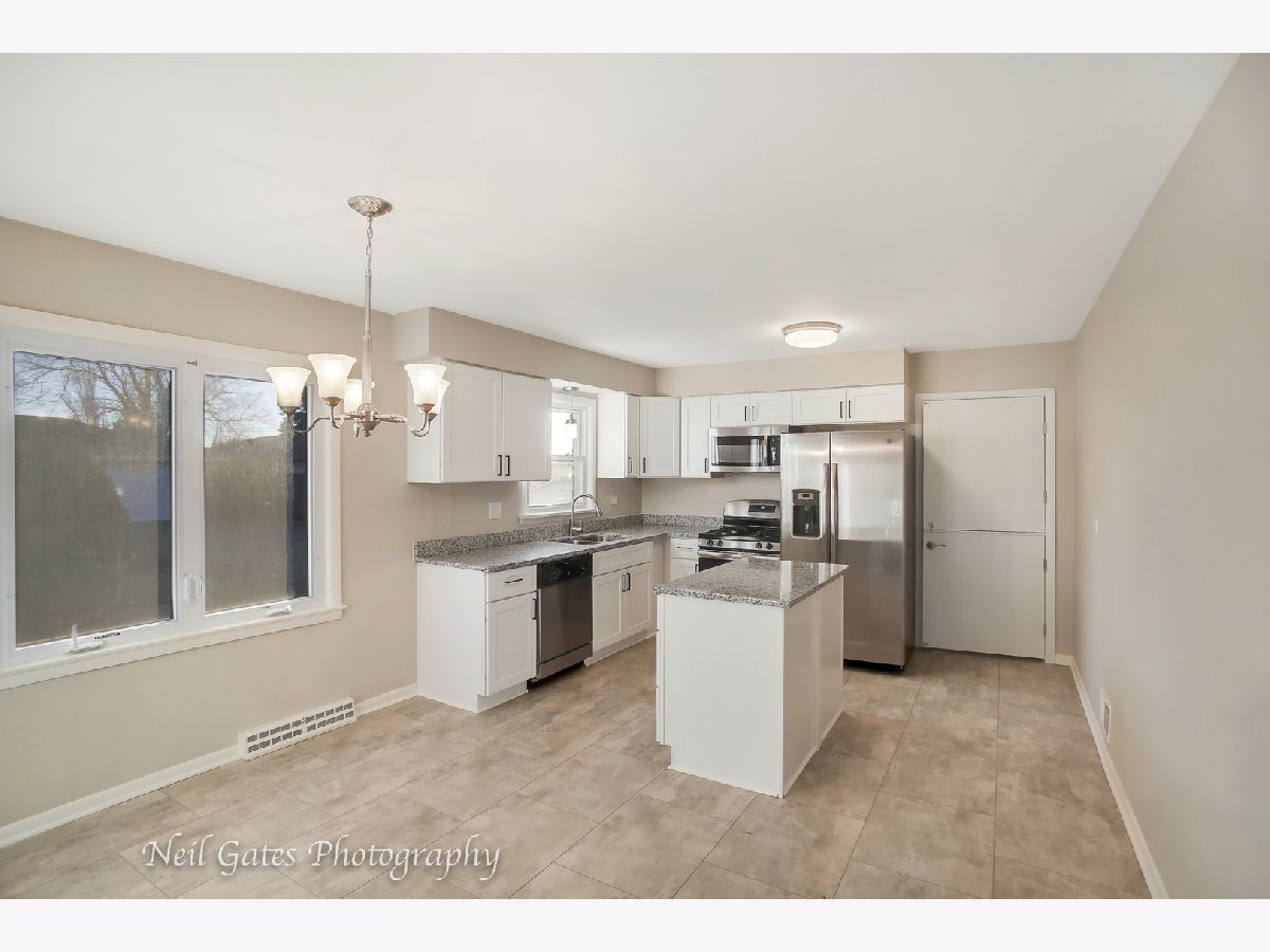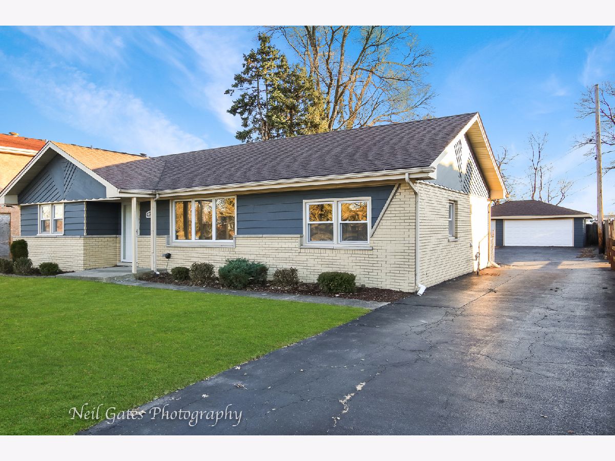 Check out this spacious brick home with 3 bedrooms, 1 bathroom and 3-car garage! Enter this updated throughout beautiful Ranch and be greeted by a living room with natural and hardwood flooring. Proceed to the kitchen featuring new white shaker style cabinets with granite counters, undermount sink, modern gooseneck faucet and new stainless steel appliances. Center island gives you an additional counter space where you can prepare your dinners and dine in a dining area with a window overlooking backyard with a cement patio great for relaxing after a busy day. Spacious bedrooms with ample closet space, updated bathroom, new lights and hardware throughout. Freshly painted inside and out. There is plenty of parking space in the driveway leading to the 3-car garage. Conveniently located minutes from I-294. See it today!