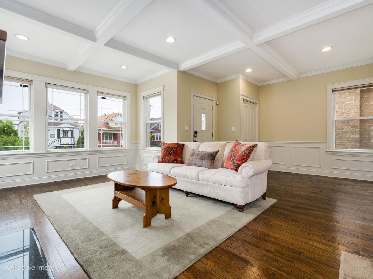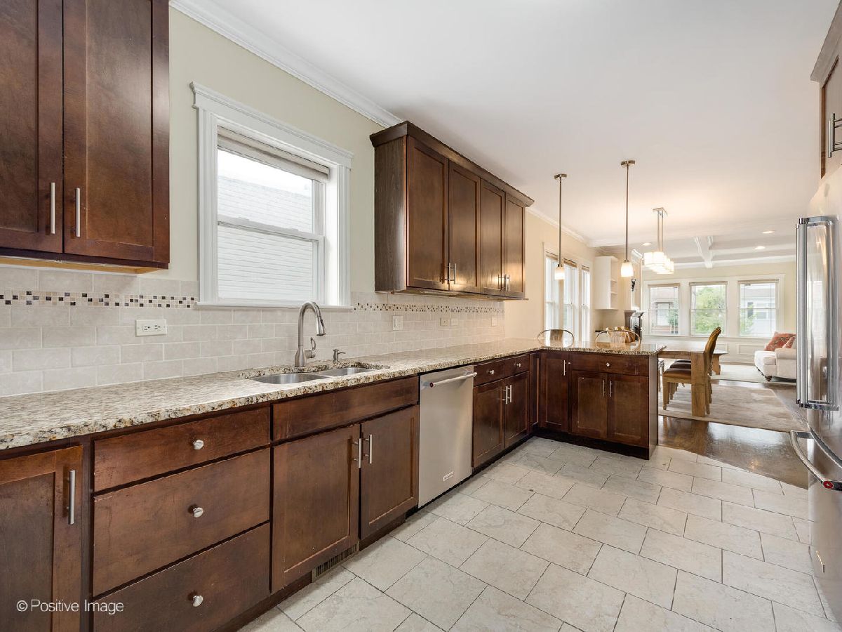 Discover the ideal blend of modern living in a fully remodeled bungalow nestled in Portage Park. You will be welcomed by a sunny and open layout as you enter. The living room has a beautiful gas fireplace with a custom wood mantel and built in storage as well as a sun room alcove that would be the perfect place to cozy up with a book. The updated kitchen includes granite counters and newer appliances. Head past the kitchen into the spacious mud room with custom storage that can also double as an additional workspace! The finished basement includes large entertaining area, bedroom, laundry room, and even more storage space. Outside, a deck overlooks the large backyard, and a private driveway ensures hassle-free parking for your guests. Extra large lot (37 x 188). HVAC (2023), Laundry machines (2021), wool carpet upstairs (2019), fridge / stove / microwave / dishwasher (2019). Still have time to move in before the holidays!