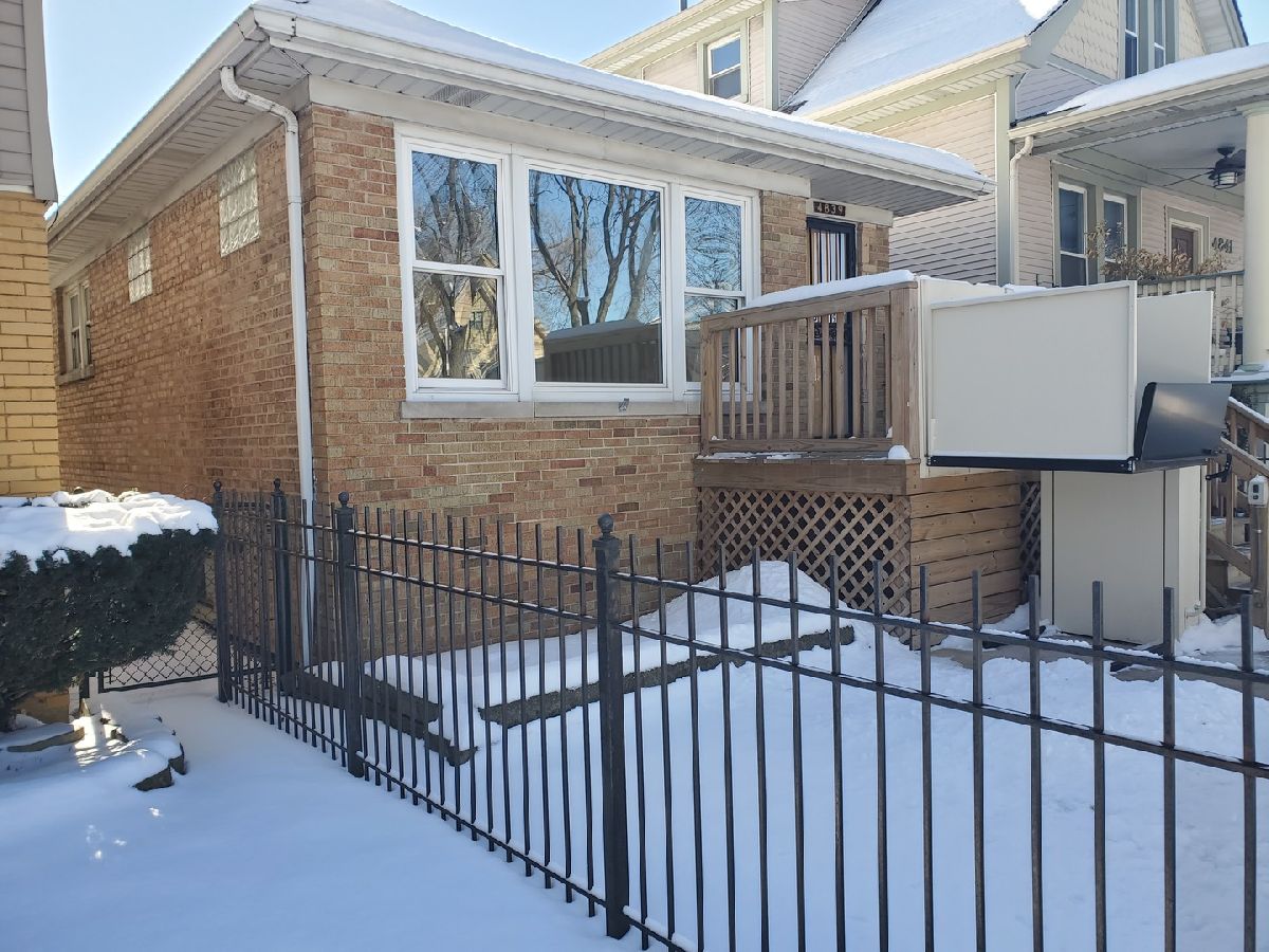 Brick bungalow in great location with easy access to I-90, I-94, downtown Chicago, O'Hare, shopping, and numerous amenities. With some cosmetic upgrades and TLC, this home is a great opportunity for the owner occupant or investor. 2 BRs, 1 full bath, spacious living room, eat-in kitchen. Hardwood floors in living room, hallway, and BRs; many newer windows; Master BR w/walk-in closet; newer hot water heater; Lenox furnace, central air, and Honeywell air cleaner appear to be newer; circuit breakers; wide open, full, unfinisihed English basement; brick paver walkway to vinyl sided 2 car detached garage; Fenced back yard; front exterior with wrought iron fence, gate, and exterior wheelchair lift to front entry porch. This home is part of an estate sale, being sold in "as is, where is" condition. Please use "as is" rider in MLS, and allow time for probate court approval.