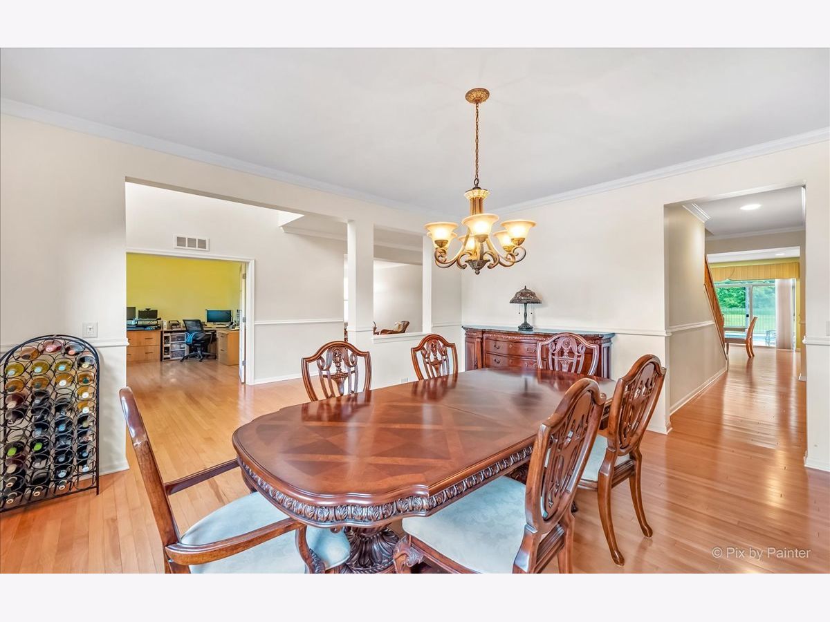 You will love this Foxford Hills home, peacefully situated on the largest lot in the subdivision! The expansive yard, which goes well beyond the fenced in pool area, backs up to a beautiful wooded area with trails and tons of wildlife. Enjoy the beautiful new 2020 brick paver patio and the fenced in in-ground pool added in 2013 that is hard to find anywhere else in this area! This 6 bedroom 4.1 bathroom home has a 3-car garage - giving you 4,100 sq. ft. of spacious elegance. Dramatic 2-story foyer flooded with bright sunshine and gorgeous hardwood floors throughout the main floor. Formal living room, dining room, 1st floor office and spacious family room on the main floor. The eat-in kitchen features granite countertops, a double-oven with matching stainless steel appliances, an island with additional seating which all looks out onto the peaceful backyard retreat. An open-concept design integrates the kitchen with a spacious family room, centered by a beautiful fireplace and a dry butler pantry. 1st floor laundry room for convenience! Upstairs is 4 spacious bedrooms plus a large master suite with drop-in tub, walk-in shower, separate sitting room, and 2 sizable walk-in closets. The lower level features an additional bedroom which can be used as another office along with a full bathroom. A fantastic sized Rec Room with games, a bar and home theatre is setup up for entertaining and hours of fun. New carpet and hot water heater in 2021! Everything in this home is tastefully done and offers a peaceful escape. Situated in a convenient, friendly neighborhood with outstanding schools, close to shopping, parks, and more.