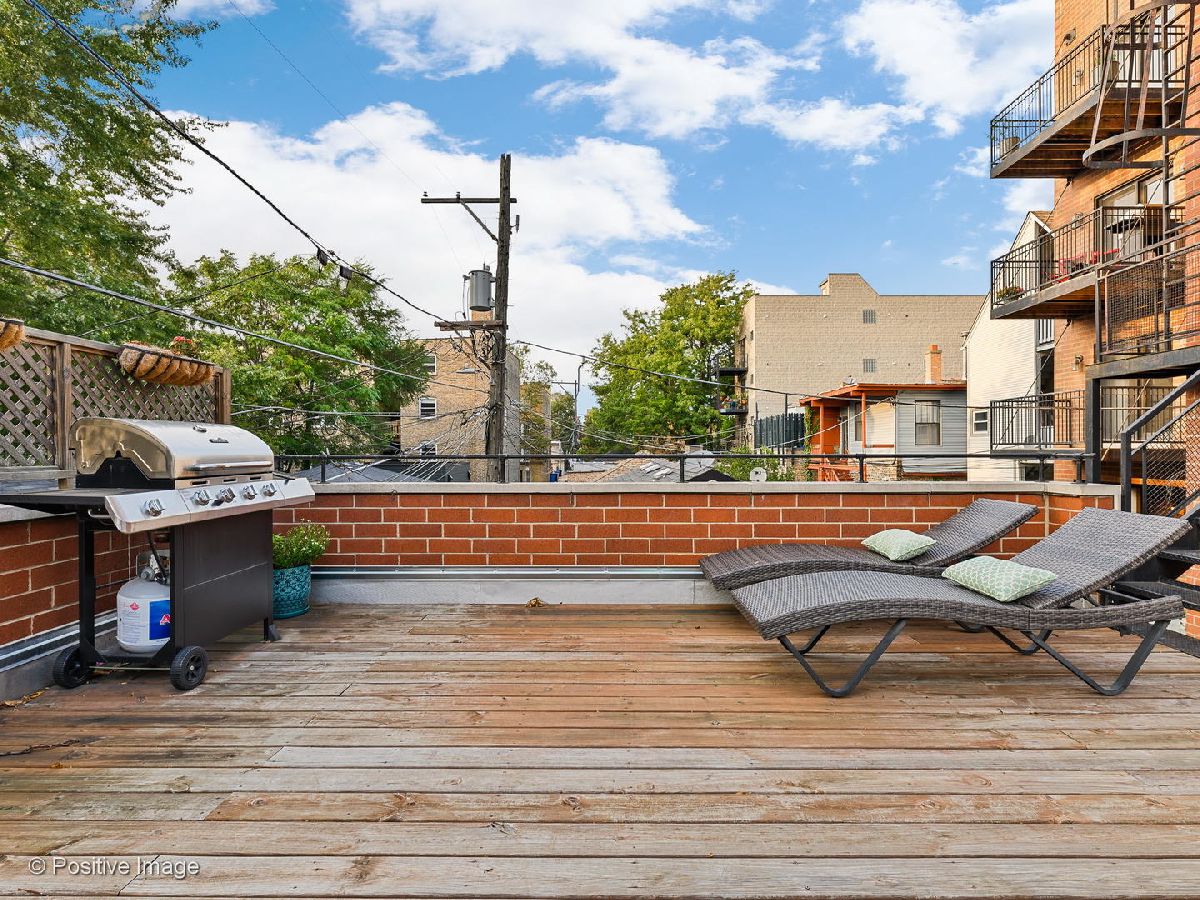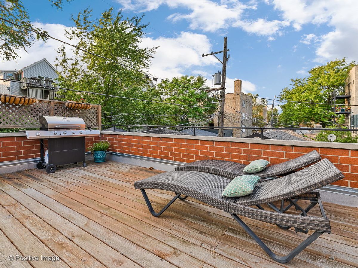 Extra wide 3 BR & 2 Bath duplex. Impressive and unique layout in a great Lincoln Square location. East facing wide unit in all brick building with modern design. Kitchen features European cabinetry, Bosch and Viking appliances, open layout with direct access to shared rooftop deck. Master bath with double vanity, Italian tiles, heated floors, Separate tub and multi-spray shower. Exclusive Deck off Main bedroom All brick building.Garage parking included. A must see! Close to restaurants, El, Metra and Winnemac Park.