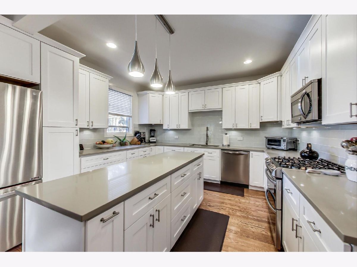 This completely renovated, open floor plan, Albany Park East, 3 bedroom, 3.5 bathroom home is nestled on an oversized lot with fenced back yard, expansive deck, and detached 2-car garage, all blissfully located within the Hibbard Elementary & Albany Park Middle School Districts, as well as blocks to the river & excellent community parks. Rehabbed top to bottom including roof, windows, appliances, & mechanicals - all new 2017. 30 ft wide lot, per Chicago City Zoning Map. This home marries modern luxuries and the quality craftsmanship of 1920's vintage. The east facing, morning natural light filled living room welcomes you to the spacious open concept main level living, dining and kitchen area with bay windows. The living room provides a beautiful mantle & fireplace (gas starter & gas logs) for effortless holiday ambiance. Rehabbed in late 2016/2017, the gourmet kitchen includes white custom cabinetry with a beautiful soap stone island and counter tops, high-end stainless steel appliances (2017), and custom back splash. The spacious den provides the perfect home office or space for relaxing & enjoying morning coffee with a half bath completing the main level. Beautiful hardwood floors flow throughout the main & upper levels. Upstairs the primary suite delivers a large walk-in closet and luxurious en suite bathroom with marble tile, walk-in shower and oversized vanity. Two additional bedrooms feature large windows and boast walk-in closets, and their adjacent bathroom delivers a soaking tub with handheld shower head. The west facing sunroom off bedroom 3 rounds out the second level. The lower level recreation room is perfect for lounging on the couch catching the game and delivers another bathroom with a walk-in shower. Ample storage including huge walk-in closets throughout. The backyard with expansive new deck (2017) are perfect for entertaining. Wifi thermostat. Great location. Proximity to the Ravenswood Brown Line EL train / Kimball CTA station, CTA buses, & Highway 90 / 94 Kennedy Expressway. Blocks to natural & green spaces: Ronan Park, Horner Park, and the Riverside Trail. Mariano's, Andy's Fruit Ranch, Tony's Fresh Market, Cermak Fresh Market, L & M Fine Foods, & the excellent Supermercado Lindo Michoacan. Great location. Enjoy neighborhood favorites Noon O Kabab, Brasa Roja, Kim's Home Cooking, First Slice, Pannenkoeken Cafe, & Bru Coffeeworks. Must see.
