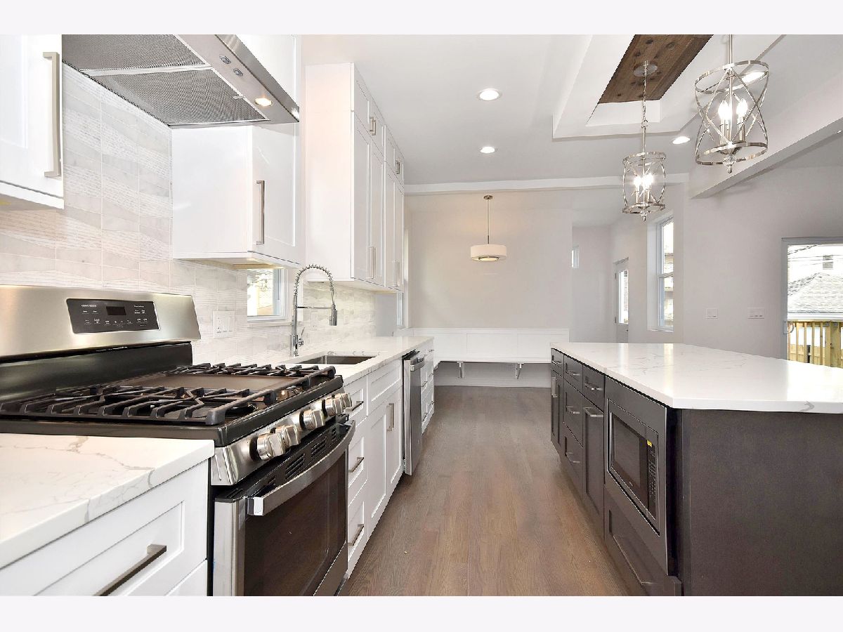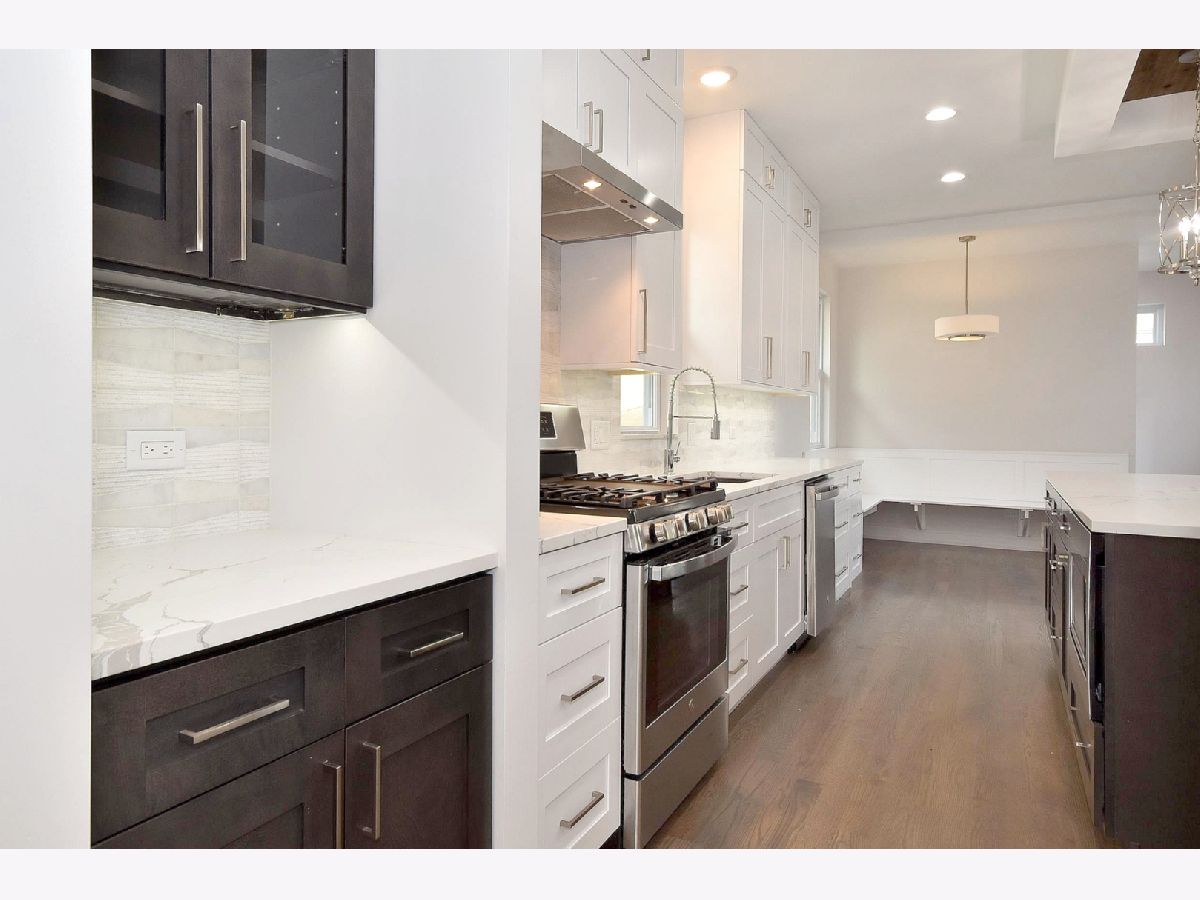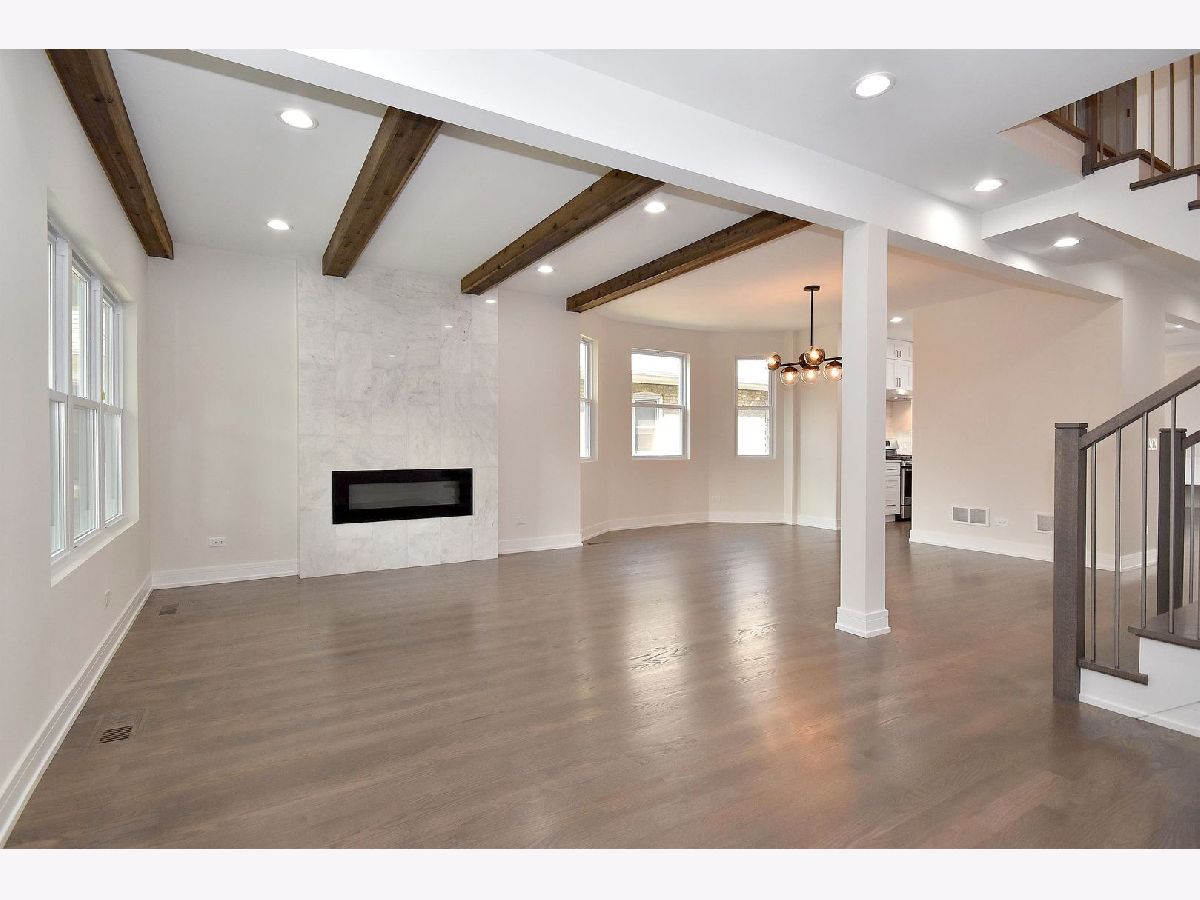 Completely rehabbed from top to bottom spacious 4 bedrm, 3.5 bathrm like a brand new construction house in great location on an oversized lot (125'x37'). Brand new hardy board siding, roof, windows, electric, plumbing, drywall... Foam insulation will keep it warm. High efficiency 2 furnaces. Drain tile system in bsmt to keep it dry. New concrete sidewalks. Two car new garage w/French door to the back yard plus potential private parking for 1 car next to it. Big , acquaintance free front roofed deck. Rear wood deck w/patio door from the family room. Convenient large mud room. Modern kitchen has 42" shaker cabinets, SS appliances, quartz counter top and island. Master suite upstairs. Two fire places in the living and family room. Bsmt offers an additional huge family room w/bar, 4th bedrm, full bathrm. All beautiful , high quality finishes. Hardwood flooring on first and second floor. Like new construction house that's ready to move in. Shows great.