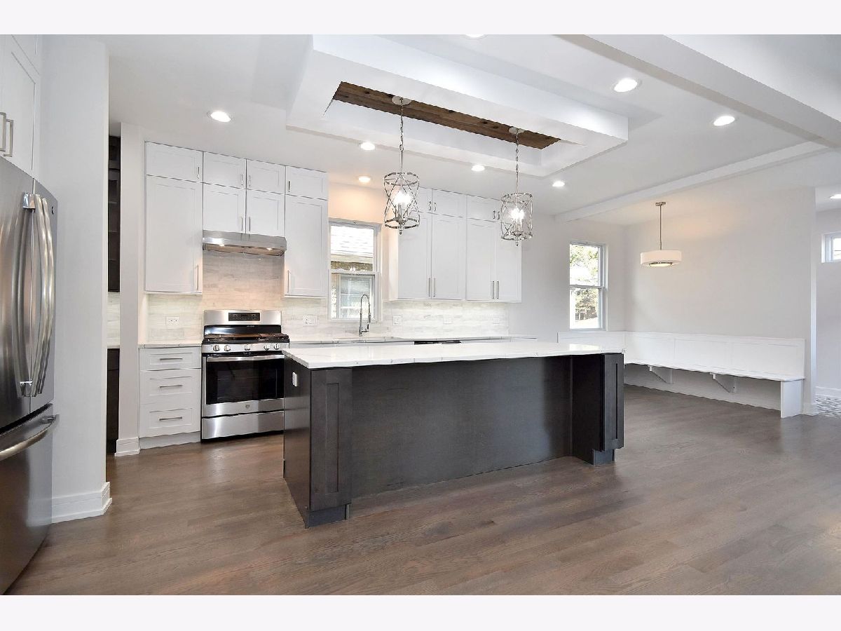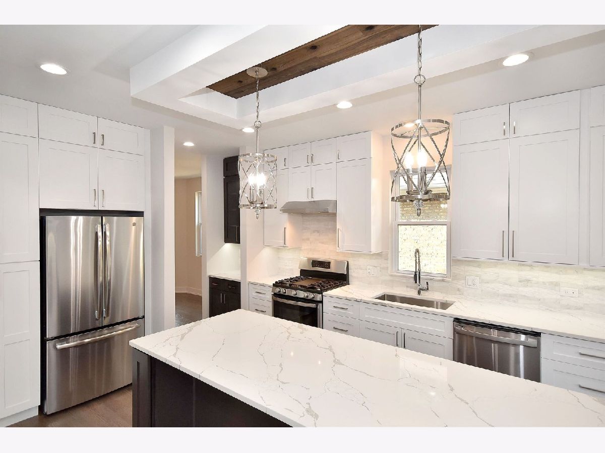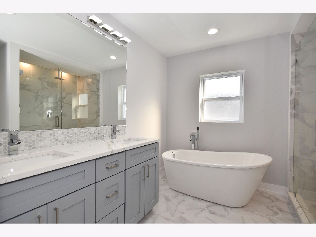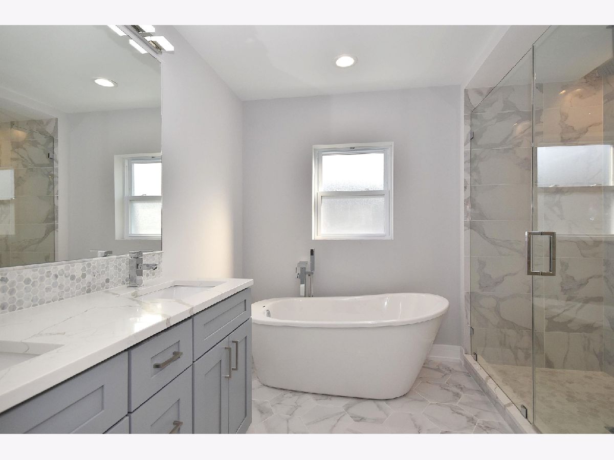 Completely rehabbed from top to bottom spacious 4 bedrm, 3.5 bathrm like a brand new construction house in great location on an oversized lot (125'x37'). Brand new hardy board siding, roof, windows, electric, plumbing, drywall... Foam insulation will keep it warm. High efficiency 2 furnaces. Drain tile system in bsmt to keep it dry. New concrete sidewalks. Two car new garage w/French door to the back yard plus potential private parking for 1 car next to it. Big , acquaintance free front roofed deck. Rear wood deck w/patio door from the family room. Convenient large mud room. Modern kitchen has 42" shaker cabinets, SS appliances, quartz counter top and island. Master suite upstairs. Two fire places in the living and family room. Bsmt offers an additional huge family room w/bar, 4th bedrm, full bathrm. All beautiful , high quality finishes. Hardwood flooring on first and second floor. Like new construction house that's ready to move in. Shows great.