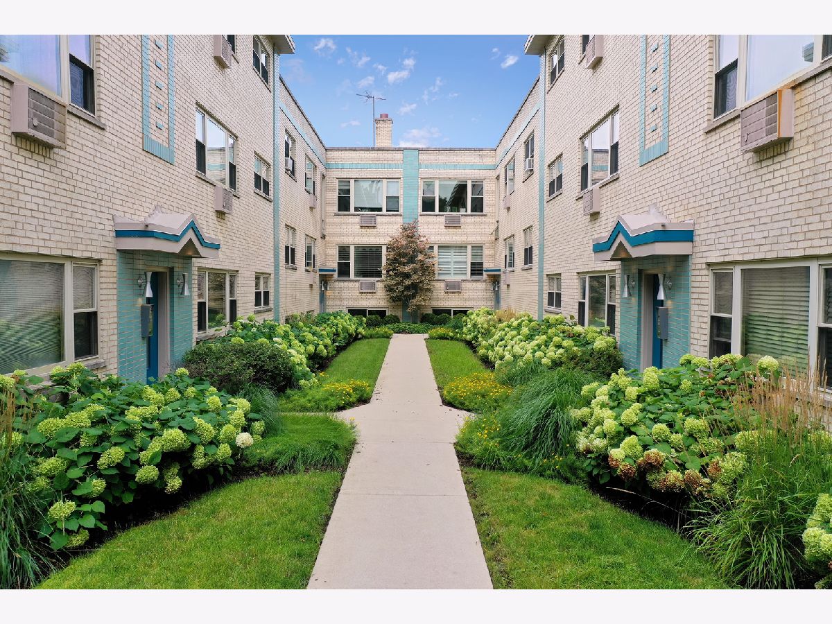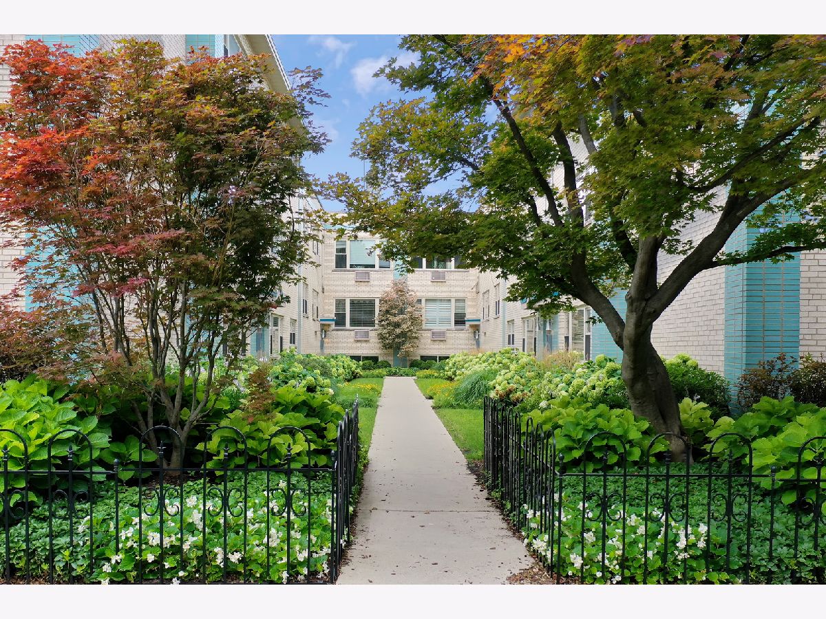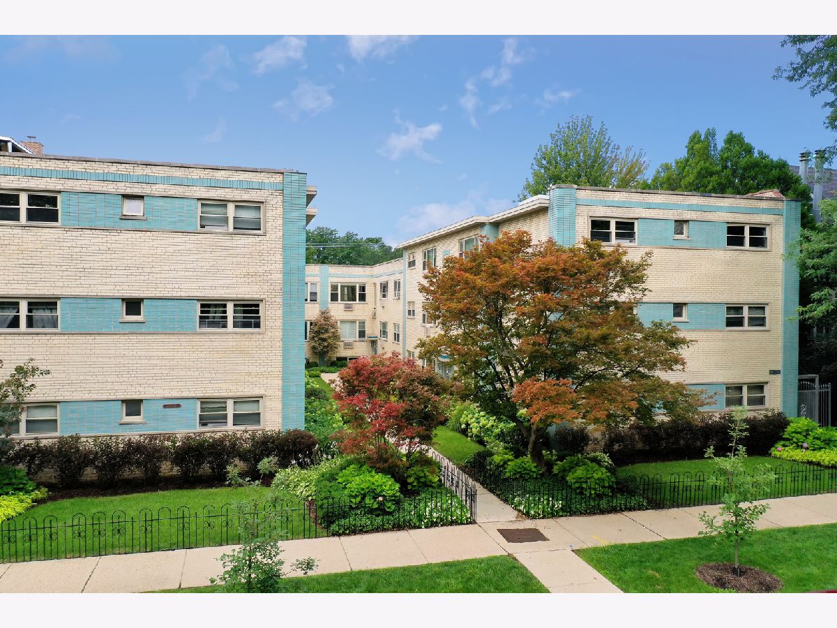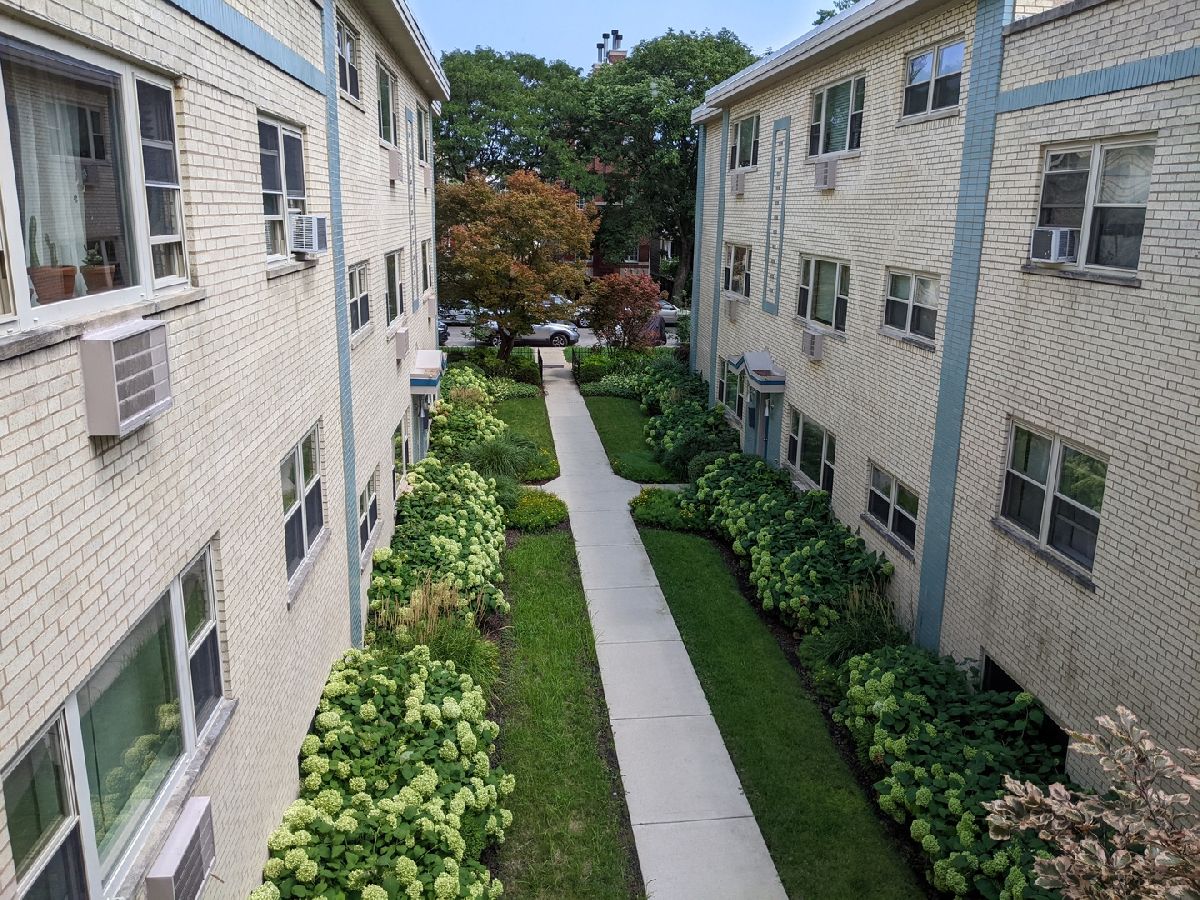 Spacious and sunny 2nd level top floor East Ravenswood two bedroom condo with unobstructed views of beautifully landscaped surroundings. Gleaming hardwood floors throughout Living Room, Dining Room and Bedrooms. Accent brick wall in the Living Room. Large eat-in Kitchen with new quartz counter tops/ back splash tiles and Bathroom with stylish interior finishes. Both Bedrooms possess a full wall of closets with closet organizing systems. Meticulously maintained Mid-Century building. Fantastic location, two blocks to Mariano's, the Ravenswood Metra and LA Fitness. Short walk to all the restaurants and shops that Lincoln Square and Andersonville have to offer. Monthly assessment includes, heat, cooking gas, water. Coin laundry, storage locker and bike space in basement. Easy street parking or on-site space for $50/month. Up to two pets total allowed with no weight limitation.