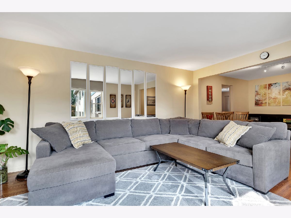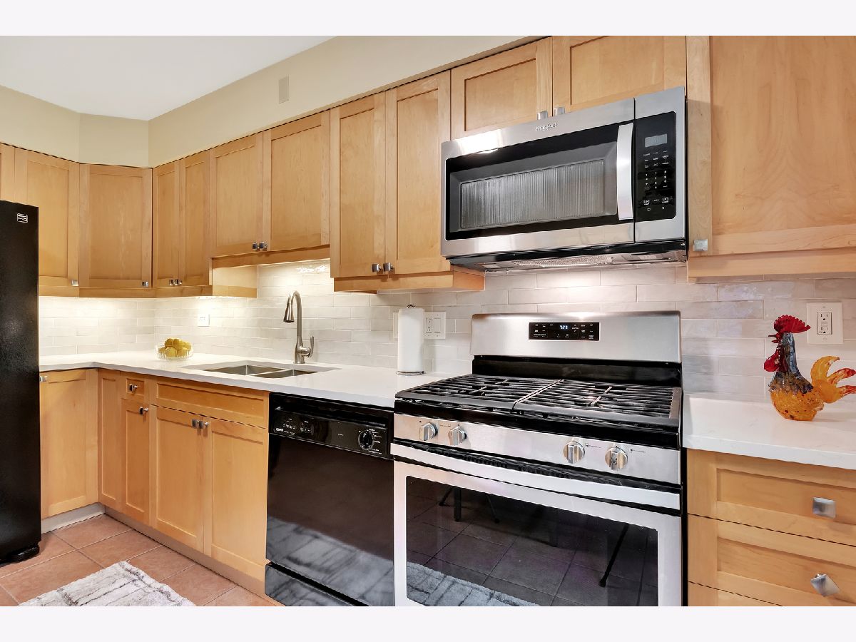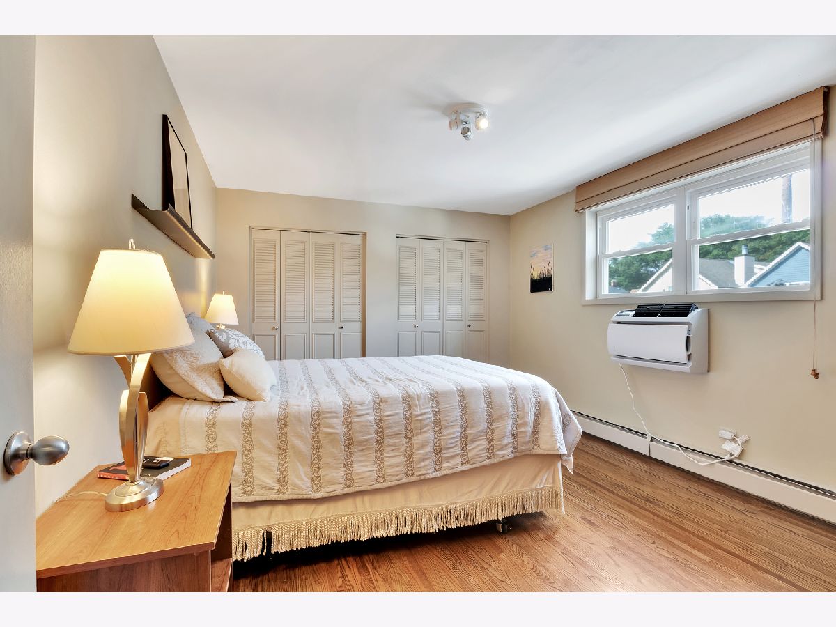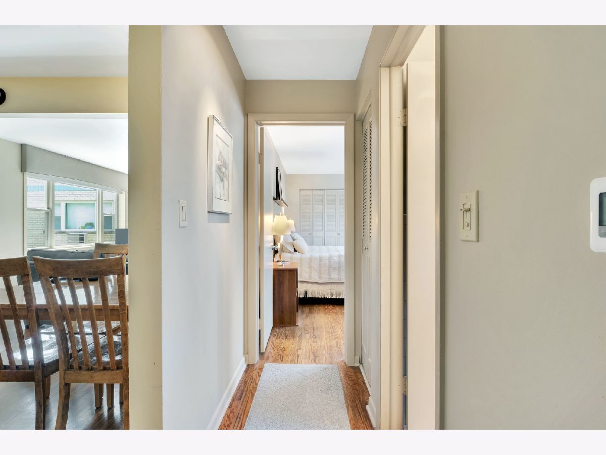 Spacious and sunny 2nd level top floor East Ravenswood two bedroom condo with unobstructed views of beautifully landscaped surroundings. Gleaming hardwood floors throughout Living Room, Dining Room and Bedrooms. Accent brick wall in the Living Room. Large eat-in Kitchen with new quartz counter tops/ back splash tiles and Bathroom with stylish interior finishes. Both Bedrooms possess a full wall of closets with closet organizing systems. Meticulously maintained Mid-Century building. Fantastic location, two blocks to Mariano's, the Ravenswood Metra and LA Fitness. Short walk to all the restaurants and shops that Lincoln Square and Andersonville have to offer. Monthly assessment includes, heat, cooking gas, water. Coin laundry, storage locker and bike space in basement. Easy street parking or on-site space for $50/month. Up to two pets total allowed with no weight limitation.