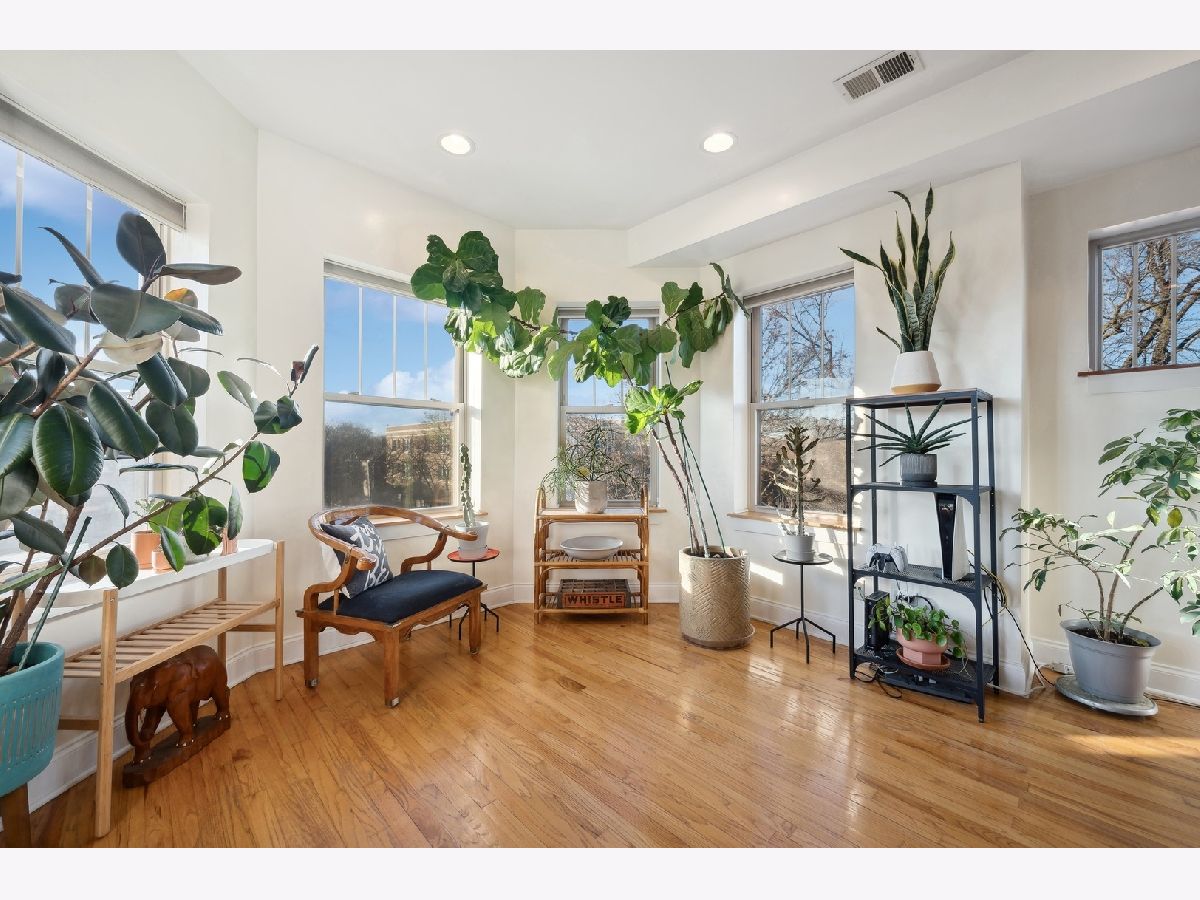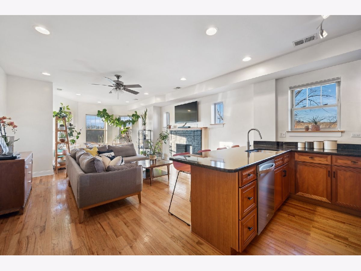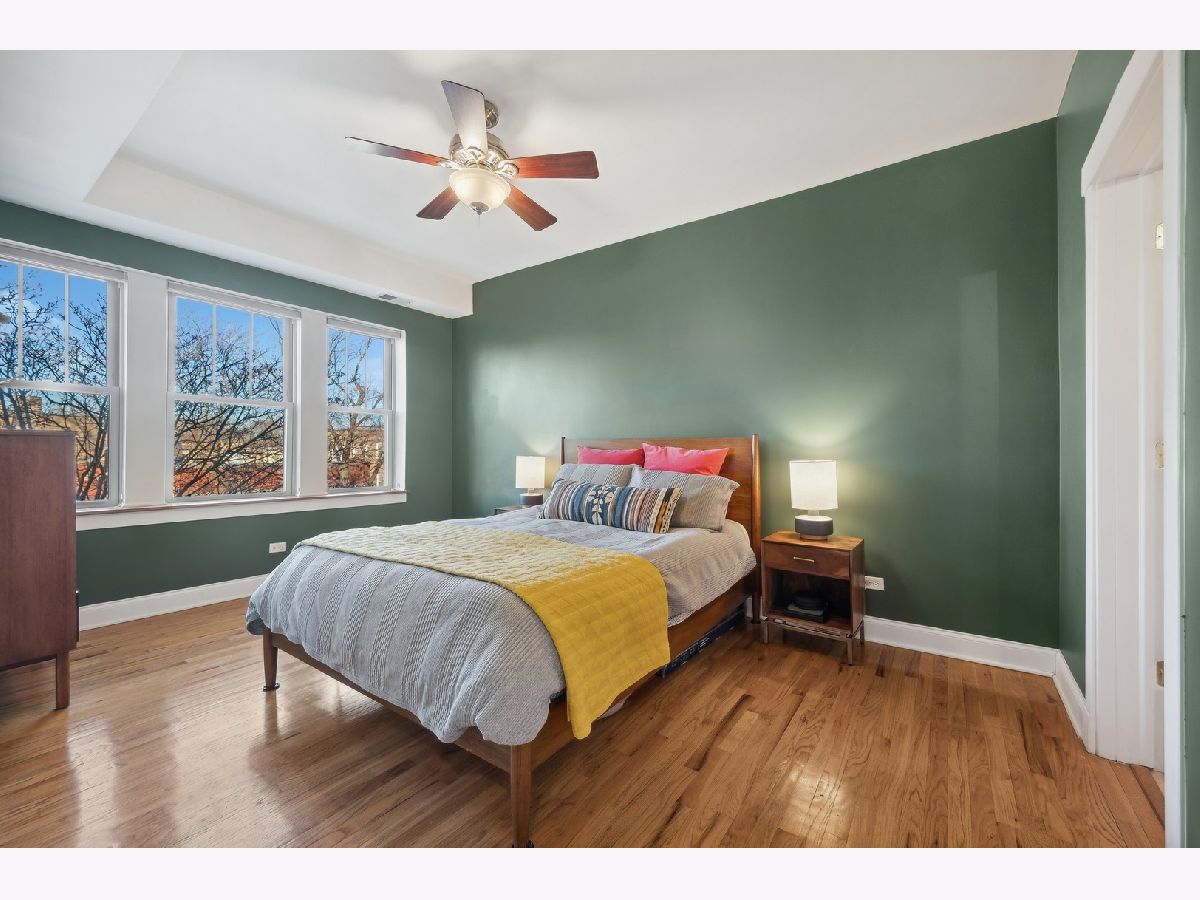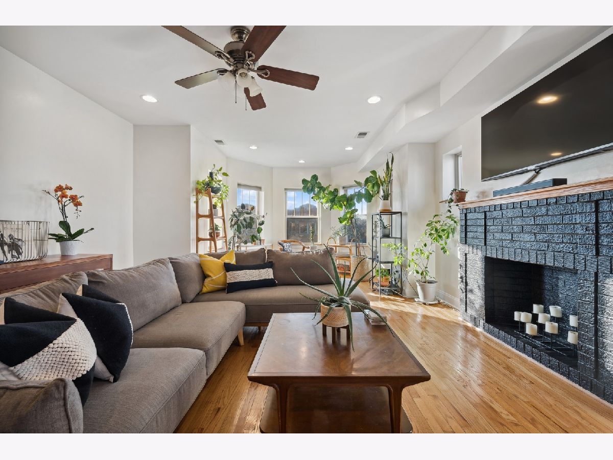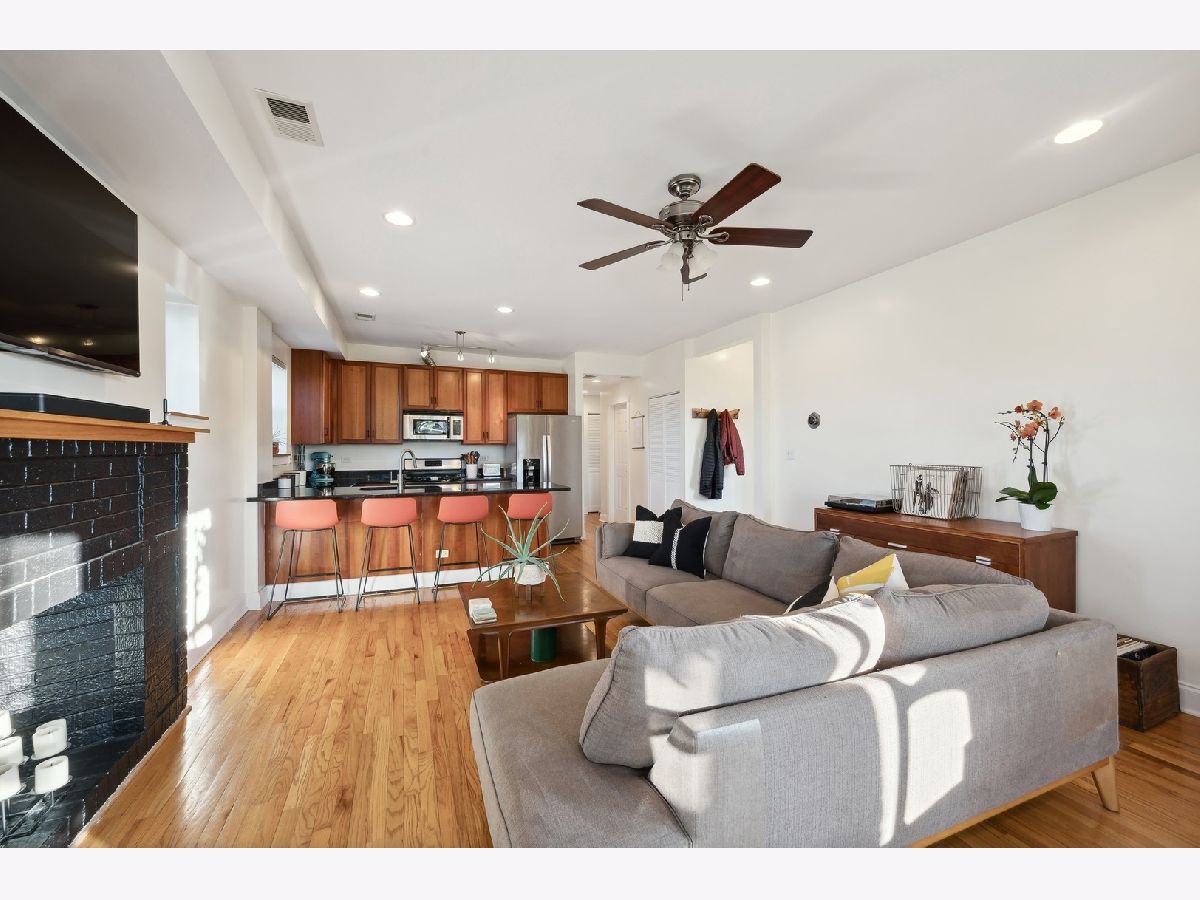 Natural sunlight bathes this top floor, corner 2 bedroom and 2 full bath in prime Albany Park. Only 1 block from the the Lawrence shopping district and 3 blocks to the Kimball Brown line station. The property was re-invented to condominiums in 2007. This sprawling and welcoming floorplan features an open concept kitchen- kitchen flows beautifully into the living room with decorative fireplace mantle and sunroom with West facing, bay windows. Primary bedroom features an expansive walk-in closet, tree top North facing views, and en-suite bath with soaking tub and separate stand in shower. Additional in-home features include central heat and ac, laundry in unit, oak hardwood flooring, kitchen with stainless appliance suite, breakfast bar with generous seating options, vented hood, 2nd full bath with walk-in shower. To complete this beautiful space is your own corner of the back deck (see photos). Owners have lovingly cared for the condo with new AC condenser and water heater (2019), replaced storm door (2019), new refrigerator (2022), new washer/dryer (2023), furnace serviced on-schedule. Street parking is very realistic with options for both zoned parking (733) and free street parking; sellers have two vehicles- each being moved daily and no issues with street parking. Pets are allowed - 2 dogs up to 100lbs combined. Very active and pro-active association. This is the perfect space for your next chapter.