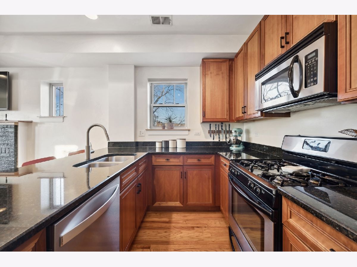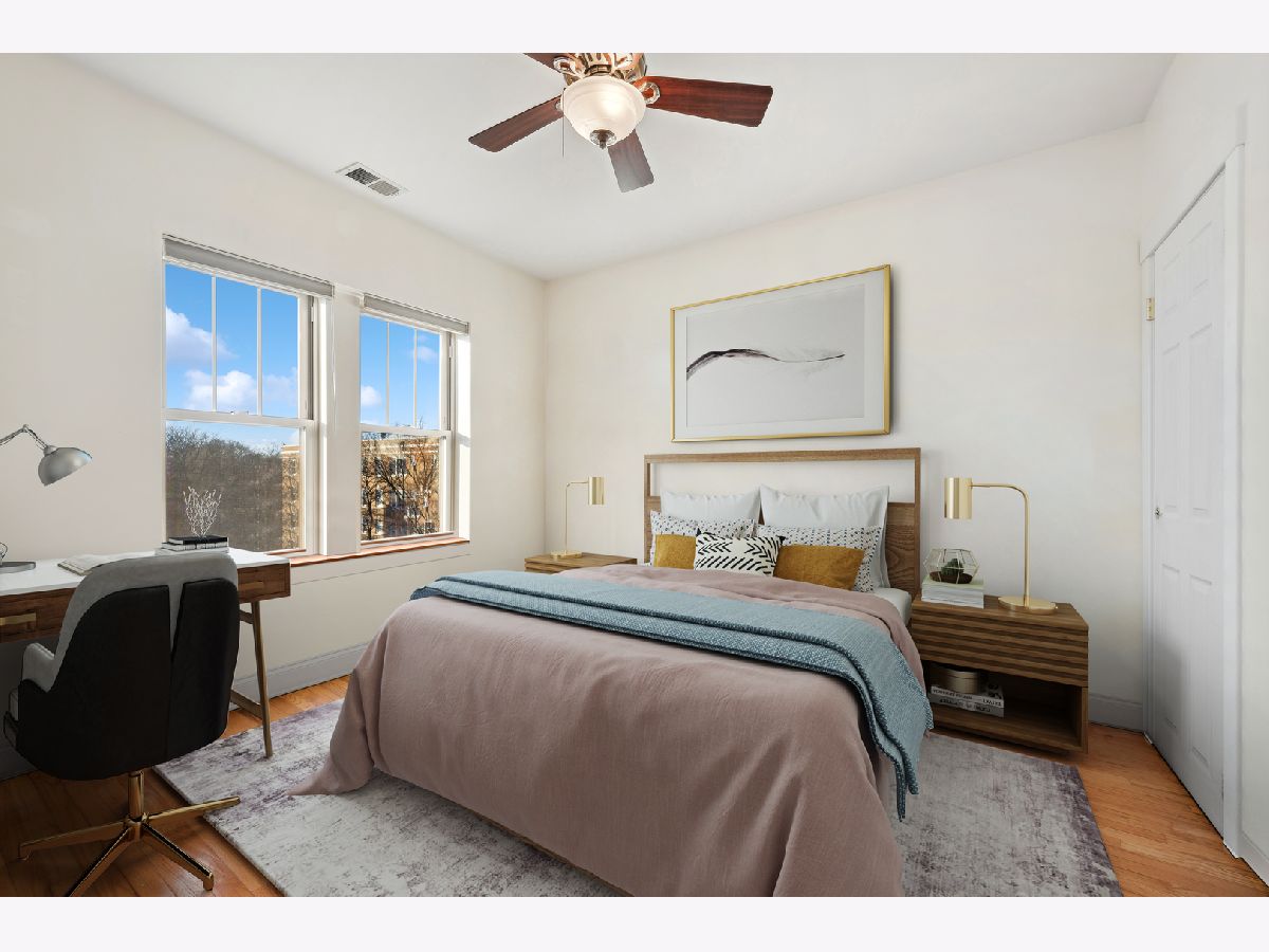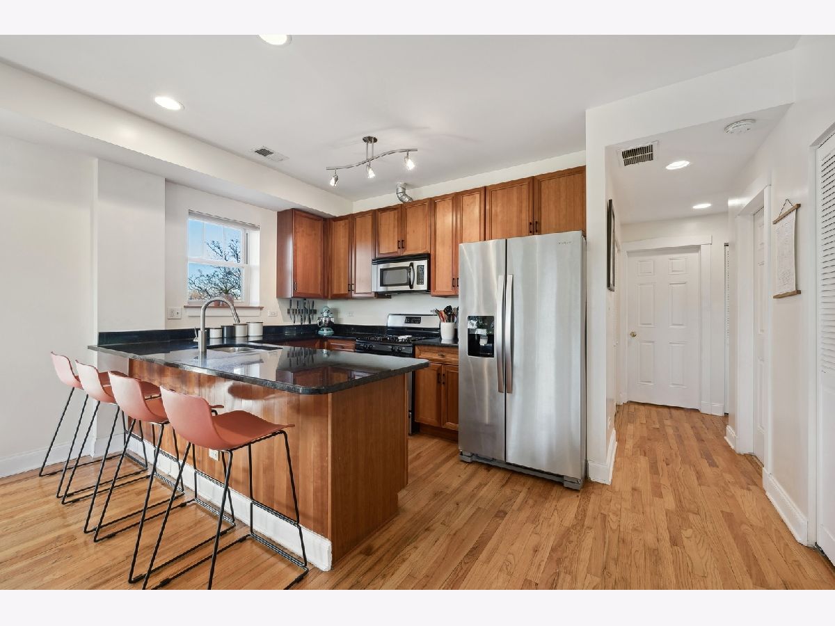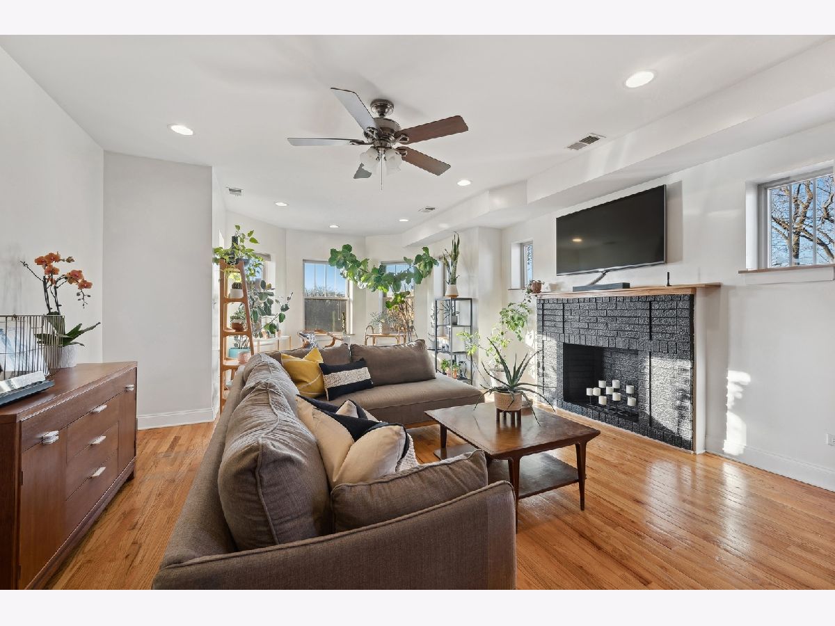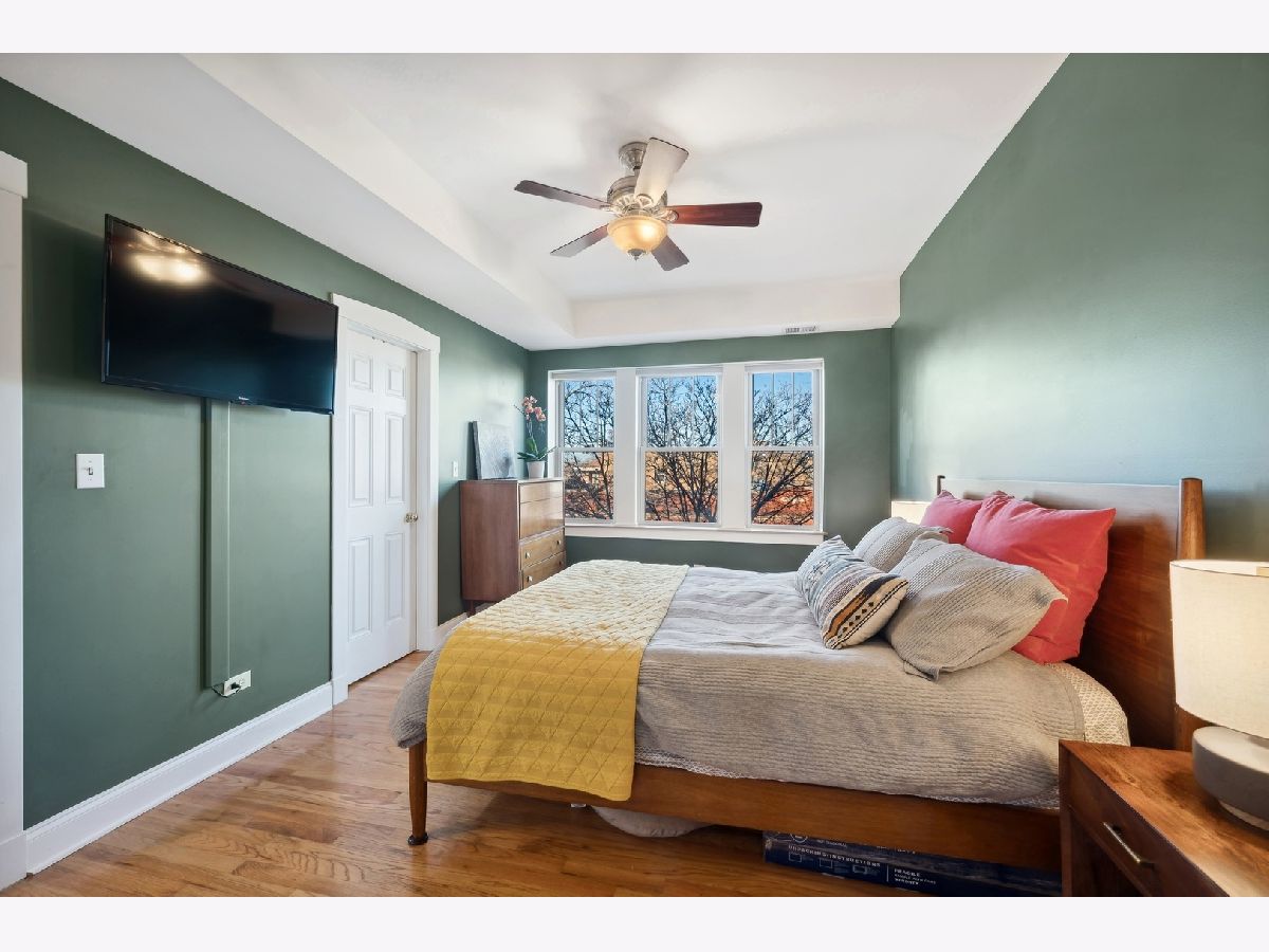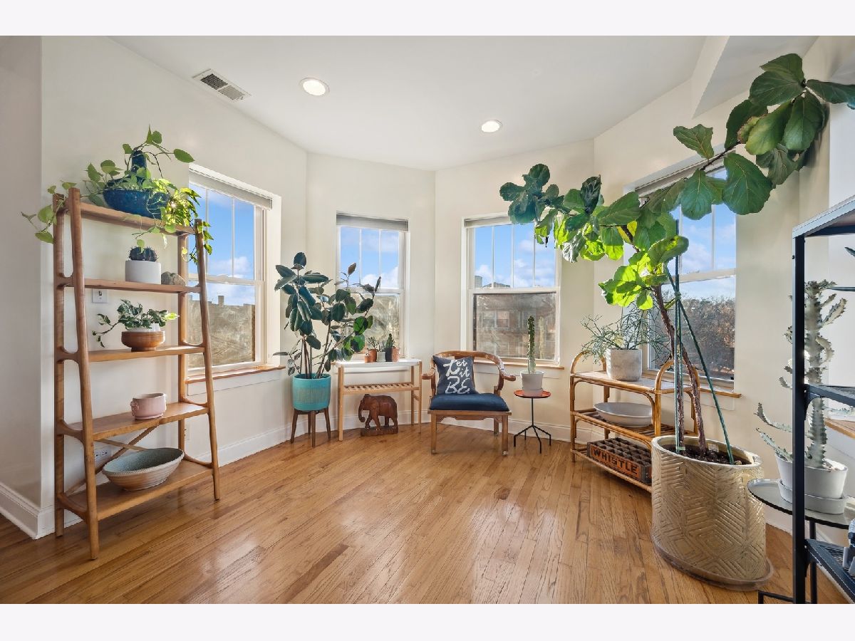 Natural sunlight bathes this top floor, corner 2 bedroom and 2 full bath in prime Albany Park. Only 1 block from the the Lawrence shopping district and 3 blocks to the Kimball Brown line station. The property was re-invented to condominiums in 2007. This sprawling and welcoming floorplan features an open concept kitchen- kitchen flows beautifully into the living room with decorative fireplace mantle and sunroom with West facing, bay windows. Primary bedroom features an expansive walk-in closet, tree top North facing views, and en-suite bath with soaking tub and separate stand in shower. Additional in-home features include central heat and ac, laundry in unit, oak hardwood flooring, kitchen with stainless appliance suite, breakfast bar with generous seating options, vented hood, 2nd full bath with walk-in shower. To complete this beautiful space is your own corner of the back deck (see photos). Owners have lovingly cared for the condo with new AC condenser and water heater (2019), replaced storm door (2019), new refrigerator (2022), new washer/dryer (2023), furnace serviced on-schedule. Street parking is very realistic with options for both zoned parking (733) and free street parking; sellers have two vehicles- each being moved daily and no issues with street parking. Pets are allowed - 2 dogs up to 100lbs combined. Very active and pro-active association. This is the perfect space for your next chapter.