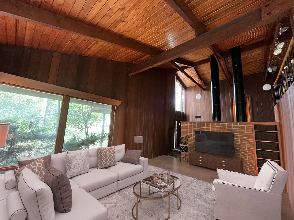 True potential in this Biltmore mid-century modern! Located on just over an acre of wooded land, this retro home is looking for the right person to restore her to former glory. When you walk in, prepare to be impressed by the soaring ceilings and sleek lines with floor to ceiling windows in the great room. The beautiful redwood woodwork throughout and brick wood burning fireplace creates a warm and cozy ambiance. Bring your modern touch to the kitchen, 2.1 bathrooms, and 3 bedrooms, each bedroom with a spacious closet and great natural light. Enjoy privacy and nature with all of the amenities that Biltmore has to offer including pool, tennis courts and lake with membership, plus great proximity to downtown Barrington! Please note that this is an AS-IS sale.