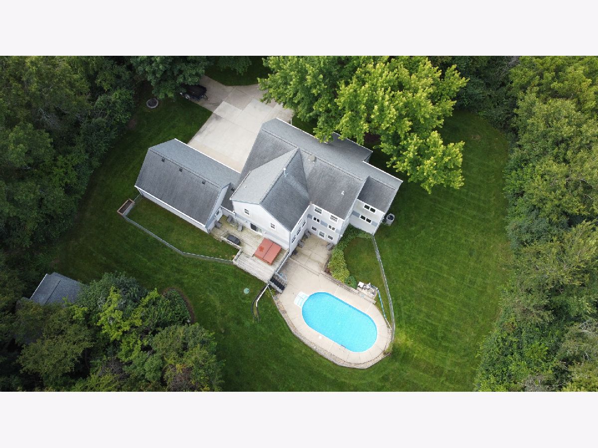 This stunning three-story home offers over 4,000 square feet of beautifully designed living space, nestled on a 1.43-acre private, wooded lot. The main floor features both a formal living room and formal dining room, perfect for entertaining. The updated eat-in kitchen (2016) boasts white soft-close cabinetry with rollouts, a double pantry, granite countertops, tile backsplash, under-cabinet lighting, and black stainless steel appliances. Enjoy the warmth of the family room with a gas fireplace, built-in bookcases, and sliders leading out to a deck with hot tub. A main-floor bedroom with a full bath, plus an additional half bath, add convenience and flexibility. Upstairs, you'll find four spacious bedrooms and two full baths, including a luxurious primary suite with a vaulted ceiling, large walk-in closet, and private bath featuring a double-bowl vanity, Jacuzzi tub, and separate shower. The walk-out lower level expands your living space with a second family room, bonus room, and another full bath-ideal for guests, recreation, or home office space. Step outside to your private oasis featuring a 15' x 30' heated in-ground pool, fenced yard, and plenty of room to relax or entertain. 3.5 car attached garage + 1 car detached with separate entrance to an enclosed loft, which would a great space for a studio. Peace of mind comes with newer roof, siding, gutters, and windows. This home combines space, updates, and outdoor enjoyment-all in a serene setting.