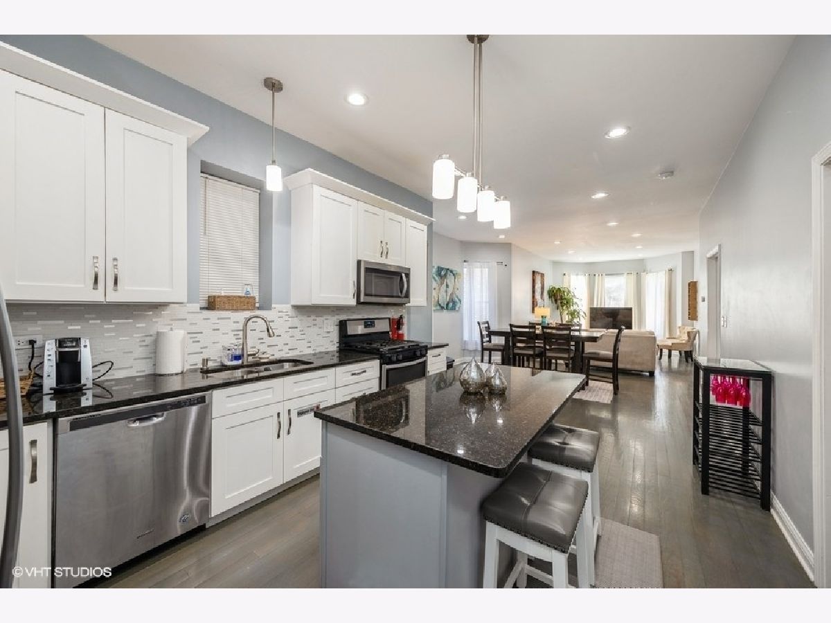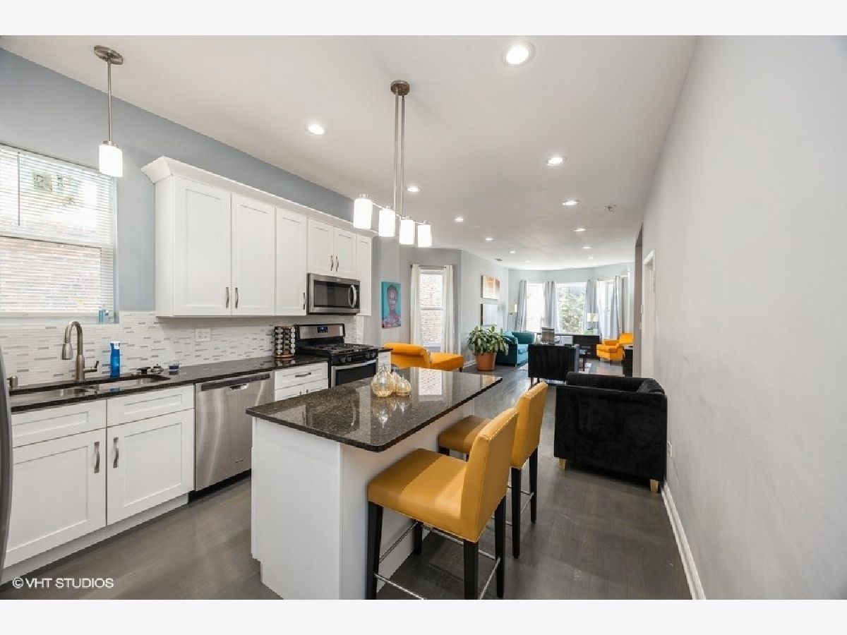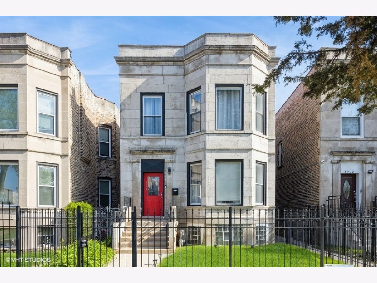 Welcome to 4904 W Fulton Street-an exceptional, fully renovated greystone 2-flat with a duplexed first-floor unit, finished basement, two laundry areas, four full bathrooms, and a private 2-car garage. Renovated in 2018, this turnkey property blends timeless architecture with modern functionality, offering outstanding flexibility and income potential in one of Chicago's fastest-growing neighborhoods. The first-floor unit is duplexed down to the basement, creating a spacious owner's or guest suite setup with additional living space, a full bath, and private laundry. Each unit features an open-concept layout with sun-filled living and dining areas, sleek white cabinetry, granite countertops, stainless steel appliances, and stylish center islands. You'll find five total bedrooms, plus two extra bonus rooms in the lower level-perfect for a dedicated office, walk-in closet, or additional storage. Contemporary flooring, recessed lighting, and updated mechanicals provide comfort and peace of mind. The fully fenced backyard is paved for low maintenance and entertaining, and the 2-car garage adds security and convenience. Whether you're an investor, owner-occupant, or multi-generational household, this property offers unmatched versatility and cash flow potential. Located near the Green Line, expressways, downtown access, parks, and local amenities, this move-in ready gem is a rare opportunity in a rapidly appreciating neighborhood.