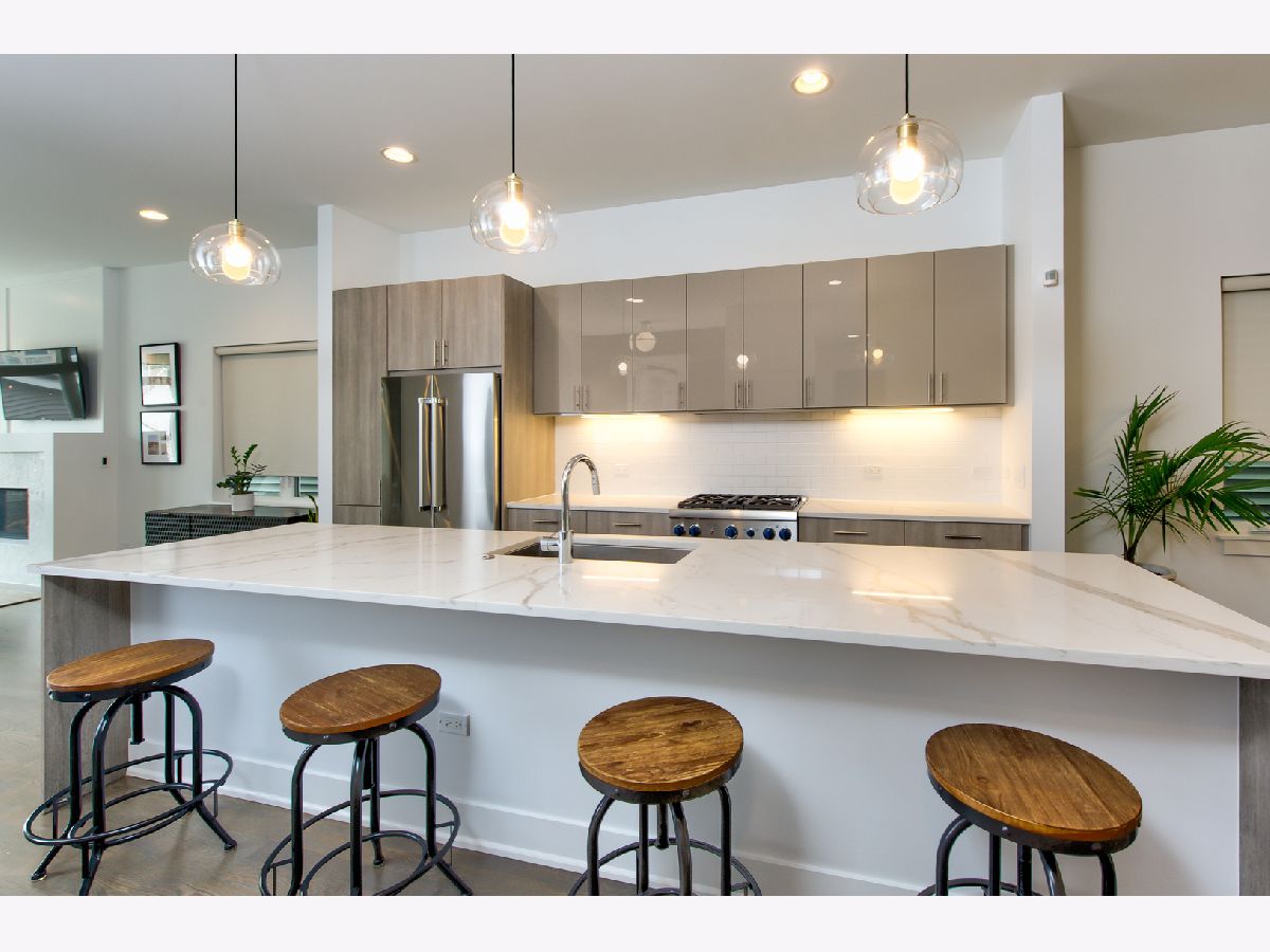 Don't miss this "six years NEW" construction 5-bedroom residence with every luxury upgrade nestled between Portage Park and Old Irving. Gorgeous curb appeal leads you to a wide-open concept first floor - 10-foot ceilings, 12-foot island, Thermador appliance package, custom mudroom, two fireplaces - all highlighted by an abundance of natural light. Upstairs, four generous bedrooms, laundry, WIC closets every room (3 in the primary), and a primary sanctuary/master bath respite you deserve. The lower level (only 50% below grade = bright windows throughout) features a playroom with built-ins, fifth bedroom, and a recreation room that will knock you over - wet bar with bev fridge, theatre/projector, and ceiling height to practice that golf swing. Upgraded composite, two-level, back deck overlooks the patio for entertaining (TV mount for those outdoor movie nights). Privacy fence encapsulates the residence and leads out to the two-car garage with alley entrance. No capital expenditures for the next owners, 3,570 sq ft, freshly painted, lightly lived in, upgraded/maintained, ready for you to enjoy the exciting energy surrounding this quiet block (new Northwestern Medicine, Target developments and much more in progress!).