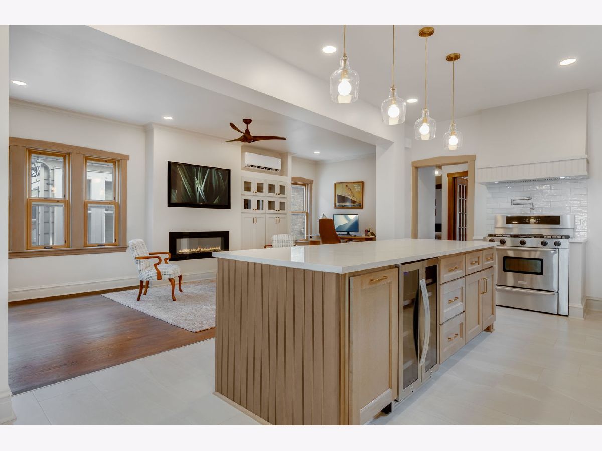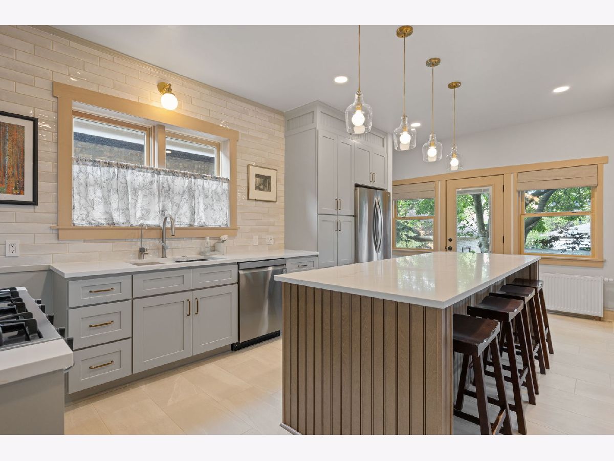 Vintage charm meets modern comfort in this oversized Mayfair brick bungalow! Featuring 3 bedrooms, 2 full baths, and a serene backyard oasis with a one-car garage, this home offers timeless appeal with today's most desirable updates. The 2025 renovated chef's kitchen shines with quartz counters, a 5-burner range, pot filler, undercounter RO water filter, double-door wine and beverage fridge, plus new Jeld-Wen windows and a Mastercraft door. Additional upgrades include a high-efficiency hybrid electric water heater, fully paid solar panels, a new electrical panel with extensive re-wiring, and 3 mini-split heat pump units providing efficient A/C and heat in multiple rooms. A freshly renovated laundry room adds even more convenience and style. Enjoy peace of mind with a hardwired camera system and hardwired video doorbell. The partially finished basement is ready for your ideas-whether that's a home office, gym, or family lounge. And with a location just blocks from Palmer Elementary, the Mayfair Branch Library, Gompers Park, the Montrose Blue Line, and easy expressway access, you'll love both the home and the neighborhood.