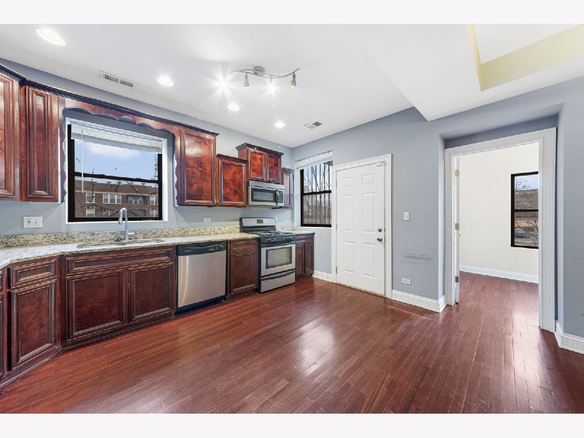 Looking for a sleek, well maintained condo located in the Heart of one of Chicago's brightest neighborhoods, Bronzeville? Well look no further you've found the one! This condo which features an amazing 3 bed 2 bath floor plan has been affectionately maintained and is move in ready. The living room gathers a lovely sun-filled bump out making it the perfect space for a breakfast/coffee nook. With intricate ceiling and recessed lighting along with a built in fireplace this living room is perfect for both entertaining and getting cozy on the couch! The first bedroom is spacious with great closet space with a view of the city street down below from this amazing second floor view. Steps away you'll find your primary bedroom with primary en-suite bath equipped with double vanity sink, deep soaked jacuzzi tub and linen storage. The gorgeous kitchen features cherry oak cabinetry and stainless steel appliances and its open concept right into the dining space. The third bedroom is located off the kitchen along with the secondary bathroom in the hallway! Already equipped with in unit washer and dryer, this condo is sure to check everything off your list! There's off street rear parking available. The location makes it ideal for public transportation and providing access to plenty of restaurants, shops and stores! Competitively priced and ready for immediate move-in this place is projected to not last long! Schedule your exclusive showing TODAY!