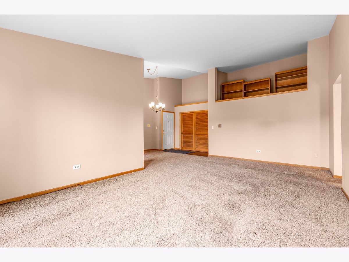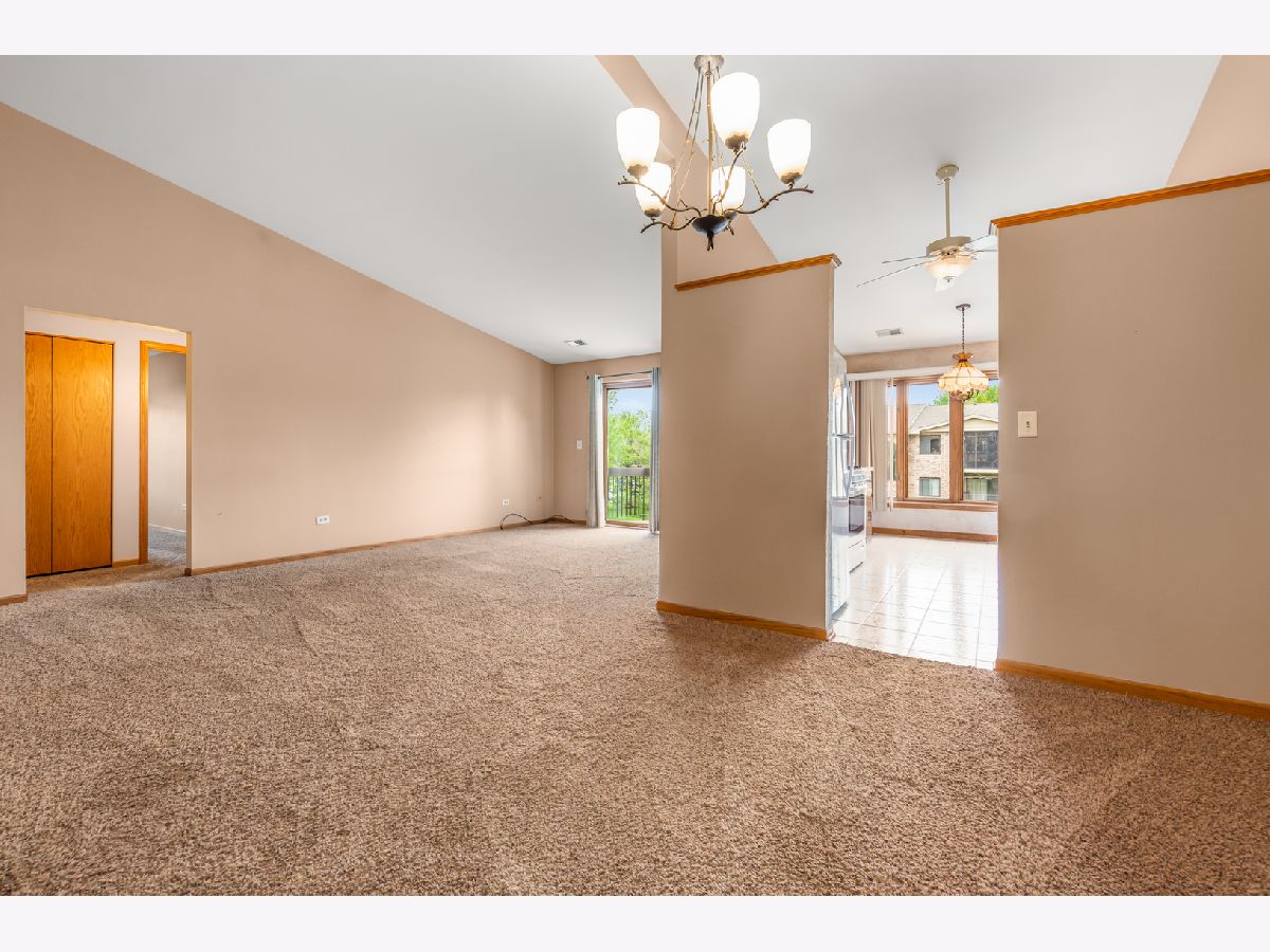 Great 3rd Floor Condo with vaulted ceilings AND 1-car garage in desirable Fieldcrest Subdivision! As you step thru the front door, the wide open floor plan compliments the space that includes a huge living room. formal dining room & powder room. The galley style kitchen with ceramic backsplash has a large table area, pantry closet and exterior door leading the concrete balcony to enjoy the sun or relax in the evening. You will also notice the open storage loft balcony overlooking the living room with 8' patio doors also leading to the balcony. Hallway leads to the shared full bath (with separate toilet/shower tub area) and very spacious Master Bedroom with walk-in closet, laundry closet with full size washer/dryer and another large 2nd bedroom also with walk-in-closet. Full wall closet along the foyer for additional storage needs. Roof 2017, New HVAC 2016, All appliances 2015, New sinks and plumbing fixtures in both bathrooms 2020. New carpet/pad in 2nd bedroom 2021. Newer window in Master Bedroom. All carpeting just professionally cleaned. Solid Flexicore Construction. HOA just painted interior building hallways. Furnace located in closet outside unit front door. HWH located in private closet in full shared bathroom. Reserved parking space also included! Such a convenient location....just minutes to shopping, restaurants, public transportation, train lines and interstates!!! Conventional Loan or Cash Only, HOA not FHA approved. Being sold 'AS IS".