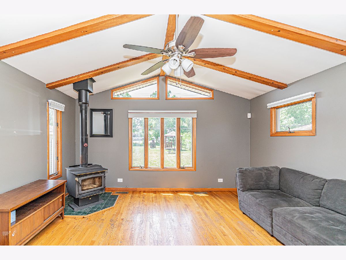 Stop the car!!! Build new memories in this 5bed/2 bath home. Great Entertaining area in a huge family rm w/vaulted ceilings & wood burning stove in addition to living room. Home features Hardwood floors & tastefully decorated kitchen. Basement has 2 rooms - Could be possible in-law. Endless possibilities on this Huge double lot. Fenced yard that backs to prairie path. Newer 2 car garage with newer driveway. Super large pool with a deck to chill on those hot summer days. Make an appointment today you wont be disappointed.