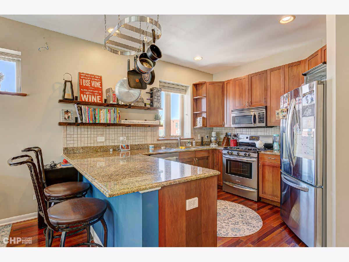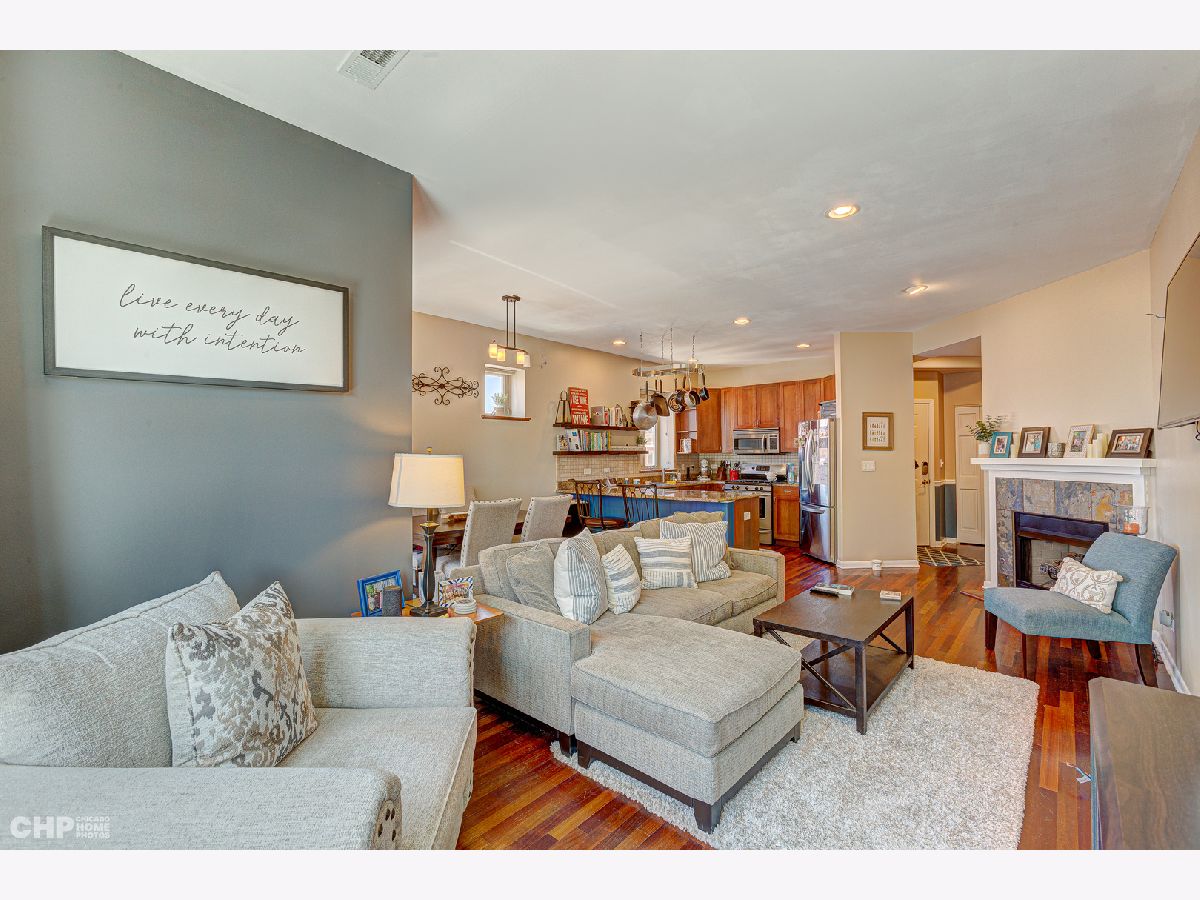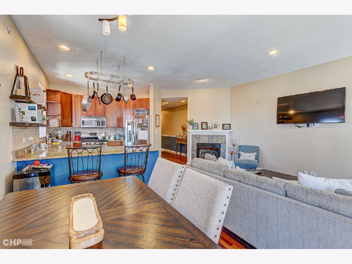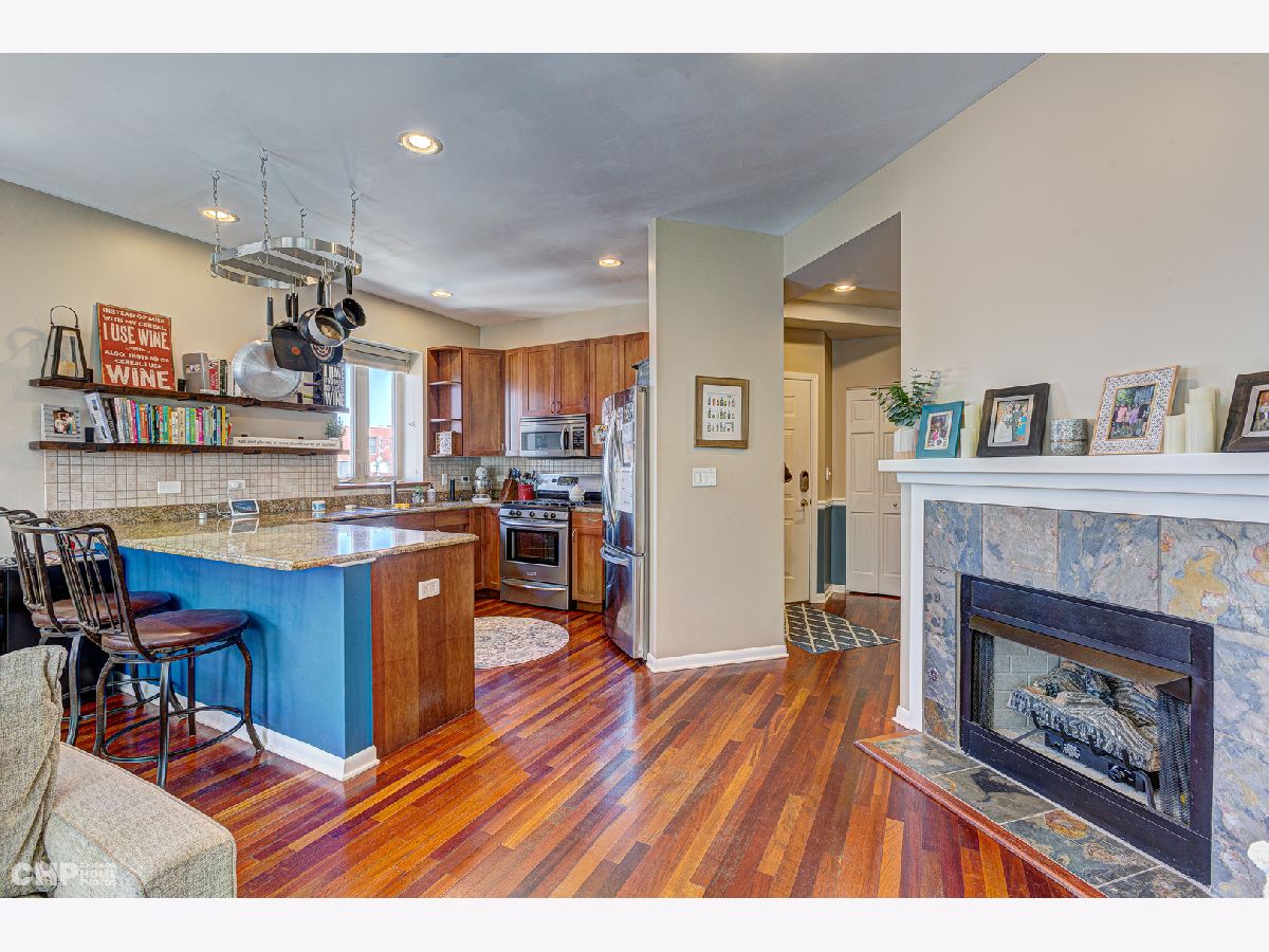 Bright and beautiful 2 bed/2 bath gem in hot Lincoln Square! This unit actually sits on the third floor, and features a unique split-bedroom layout and two separate outdoor spaces. Lovely hardwood floors throughout the living areas, plenty of flexible living/dining space, balcony off the dining area for grilling and entertaining, and a corner gas fireplace. Sunny, open kitchen with tons of granite counter space, wide breakfast bar, tall 42' cherry cabinets + all stainless-steel appliances. Primary bedroom features a large walk-in closet, private balcony and en-suite bath w/ dual vanity + separate jetted tub/shower. In-unit laundry, central heat/air, surround sound-ready; newer windows installed in the living room and primary bedroom. Tandem parking for two cars included in the price! Quick access to the common recently re-finished roof deck. Terrific location: just a short walk to the heart of Lincoln Square and so many great restaurants, bars and shops along Lincoln and Lawrence. Quick to the brown line. Walk just a bit east to the amazing Winnemac Park.