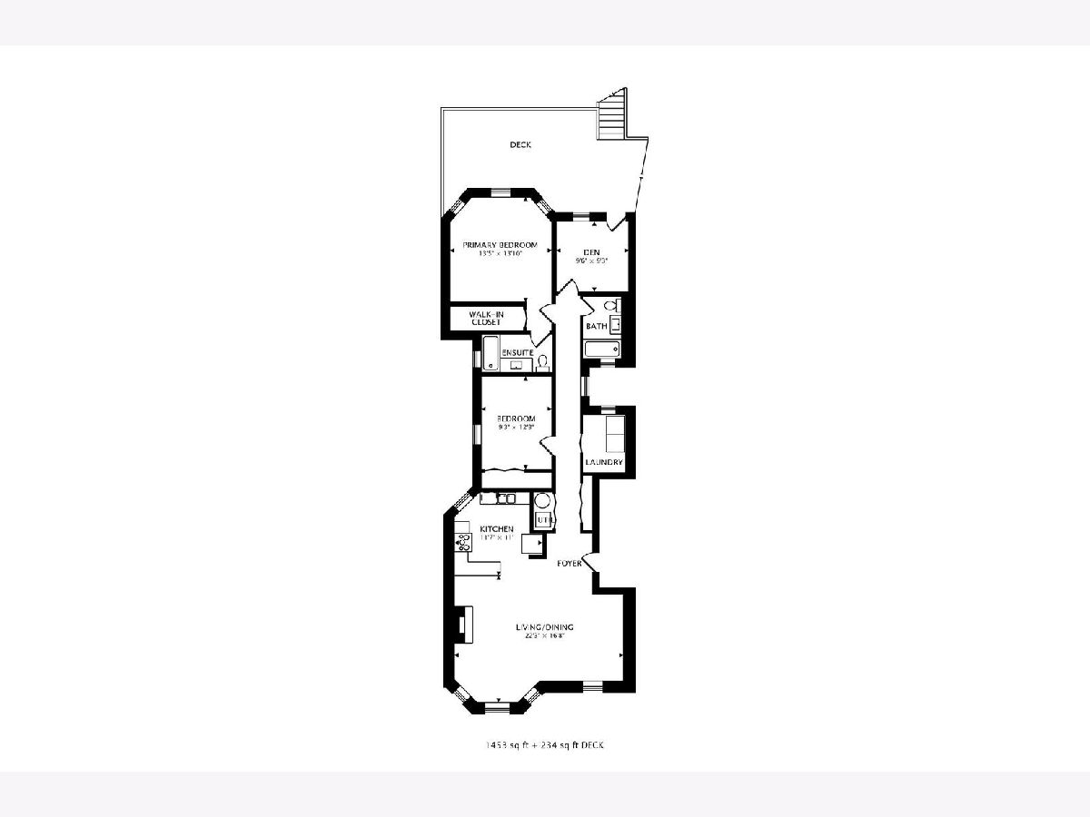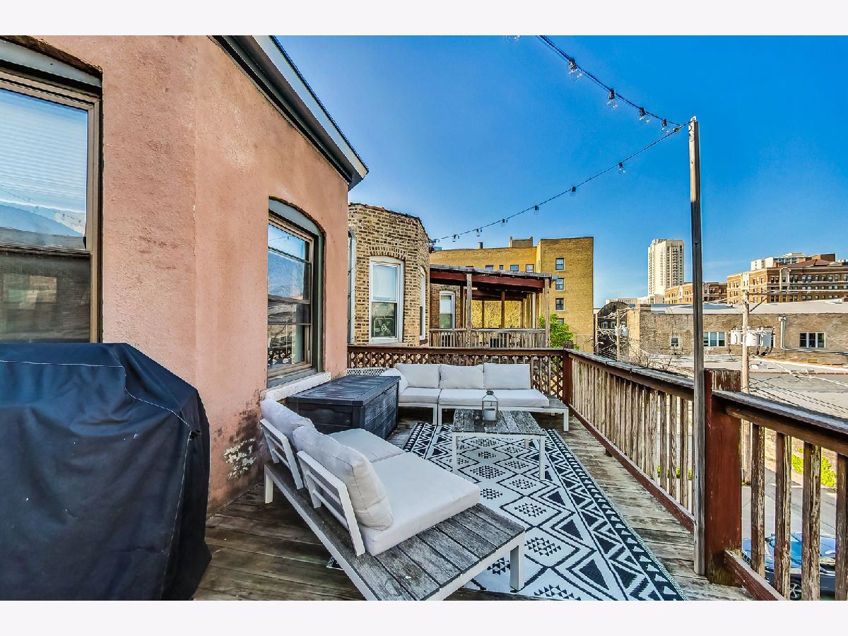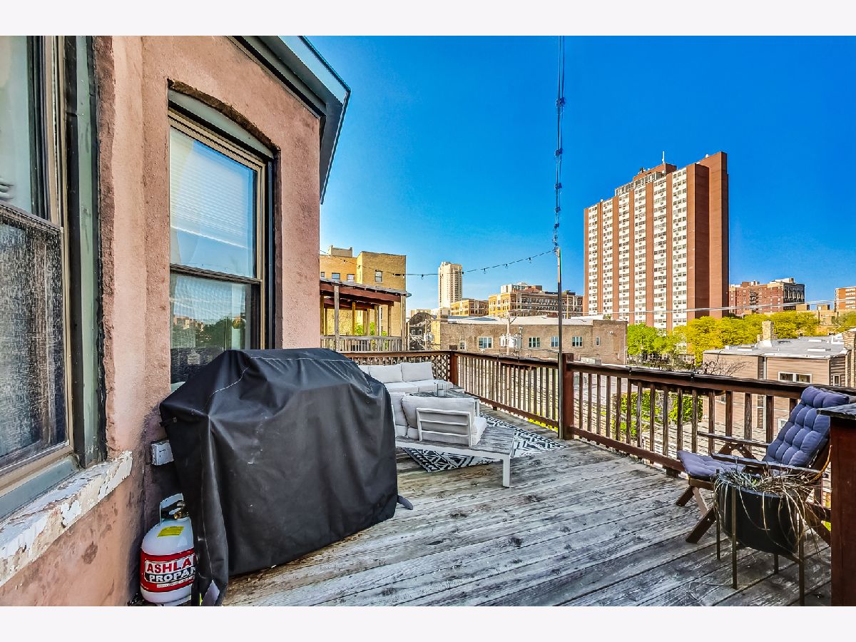 Unlock the door to your new home on Kenmore Avenue, where vintage charm meets modern comfort in this oversized 2-bedroom + plus a den, 2-bathroom walk-up unit. This updated gem offers the perfect blend of classic features and contemporary conveniences, including central AC and heat, along with secured parking. Hardwood floors and on-trend paint colors throughout. Step inside to discover a spacious open-concept layout flooded with natural light from oversized windows, creating a welcoming ambiance throughout. The living space exudes warmth with a cozy fireplace, hardwood floors, and ample room for entertaining. The open kitchen with eat-in peninsula also features all stainless steel appliances. The primary ensuite bedroom ensures privacy and comfort with its own full bathroom and a walk-in closet. An additional full bathroom, conveniently located off the hallway, ensures ample accommodation for residents and visitors alike. Experience the best of outdoor living with two distinct outdoor spaces to enjoy. Relax and unwind on the secluded balcony off the living room or host summer barbecues on the expansive rear deck, providing plenty of room for grilling and entertaining. Nestled steps from Argyle Street, close to Andersonville and Edgewater, this prime location puts you within easy reach of local shops, restaurants, and all the vibrant amenities this sought-after neighborhood has to offer. Enjoy the convenience of walking to nearby parks, accessing public transportation with the Red line and bus routes, and taking leisurely strolls down to the beach and waterfront bike paths.