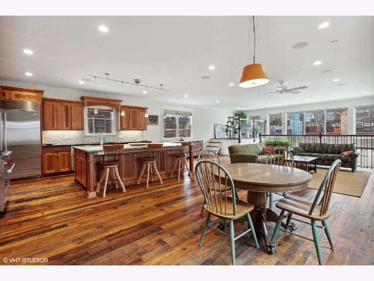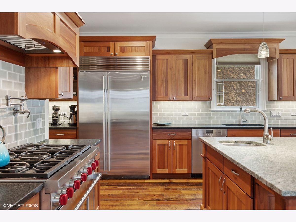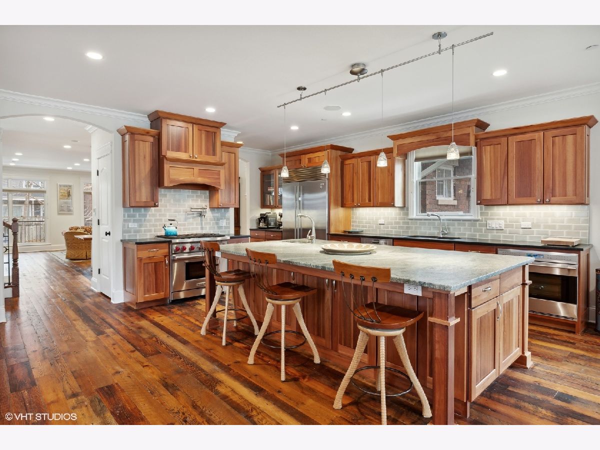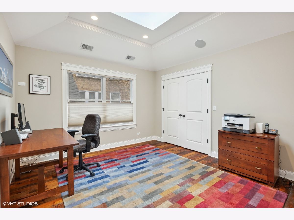 Located near the sought-after community of Lincoln Square with its colorful boutiques, buzzing restaurants, steps from Winnemac Park, and close to highly rated public and private schools, and set on an oversized lot (37.5'x140'), this Impeccable custom-built (2013) Sustainable Luxury home, was designed and built to ensure its environmental impact on the surrounding area is kept to a minimum. These warm, sustainable elements, 9' ceilings, and bright, extra-wide interior create a winning combination that's sure to impress. The welcoming front porch leads into a gracious foyer entry and elegant Living Space with custom millwork, a Gas Fireplace featuring an antique marble mantle, that flows into a true Dining Room ideal for entertaining with a nearby Butler's Pantry and spacious Powder Room. Commercial grade chef's kitchen features a 42" Sub-Zero refrigerator, 36" 6-burner Wolf Oven/Range plus built-in Oven, Miele Dishwasher, statement island which seats 4, and separate Built-In Buffet with beverage station next to the Eating area, plus large, organized Storage Pantry. Everyday living is a joy in the sun-drenched Great Room with built-in bookcases, a Gas Fireplace, an elevated Meditation Space, and a wall of West-facing windows overlooking the rear yard. Chic, oversized mudroom space directly off the rear entrance from the garage solves all your storage needs! The lower level offers tremendous additional living space with 9 ft ceilings, large windows, radiant heated flooring, and a huge family/recreation room, with a wet bar with sink and beverage fridge, a Powder Room (1) ensuite Guest Bedroom with Full Bath, and a 6th Bedroom, currently used as Exercise Room, mechanical room with Doggie Bath and naturally temperate, all-below ground, Wine cellar Insulated to maintain an ideal environment. Whole house sound system, with Bowers and Wilkins home theater in Lower Level + a Control 4-system for sound, television lighting, and electric blinds Ascend the wide, bright staircase adorned with skylight, to the 2nd level featuring (2) en-suite bedrooms, both with vaulted ceilings, and (2) secondary bedrooms with (1) full shared bath. Sumptuous Primary Suite hosts two oversized organized closets, automated blinds, a Spa Bath with a large whirlpool, steam shower, bamboo framed mirrors and double vanity with "rainforest" granite counters, a separate water closet with Toto Neorest Toilet and heated floors. Full-size laundry room and large linen closet are also found on the second level. Outdoor entertaining paradise with an abundance of professional landscaping, a paved patio, a Wood-burning Fireplace with a Gas line for a grill, Outdoor Klipsch speakers on the Patio, and a fabulous rooftop deck with dedicated Klipsch outdoor speakers, beneath a pergola sitting above the oversized 3-car garage. Maintaining a lush yard is easy with the underground garden sprinkler system and Irrigation to planters on the rooftop deck. Topping it all off is an Ice-melting sidewalk system for the patio, garage & the grill area, along with breezeway and pathways leading to sidewalk and alley. Ask for full list of specifications.