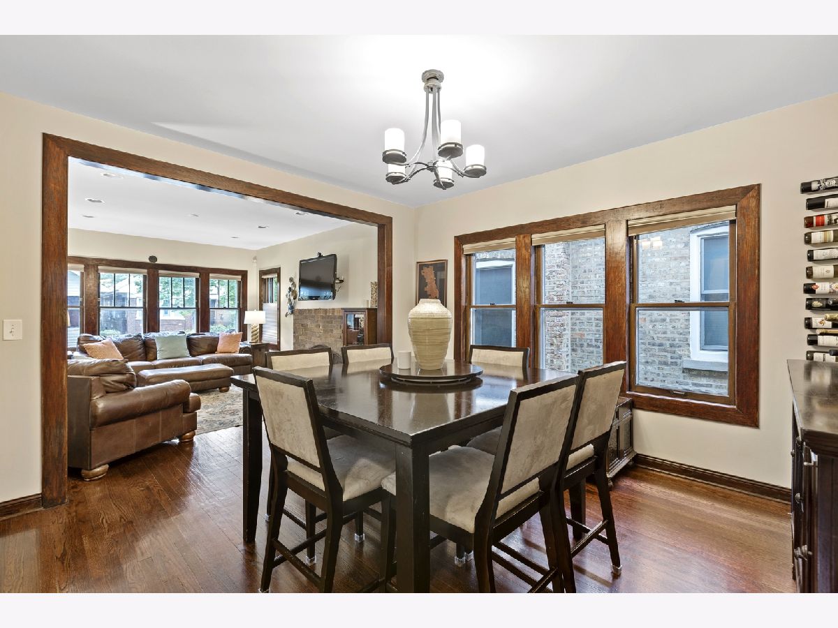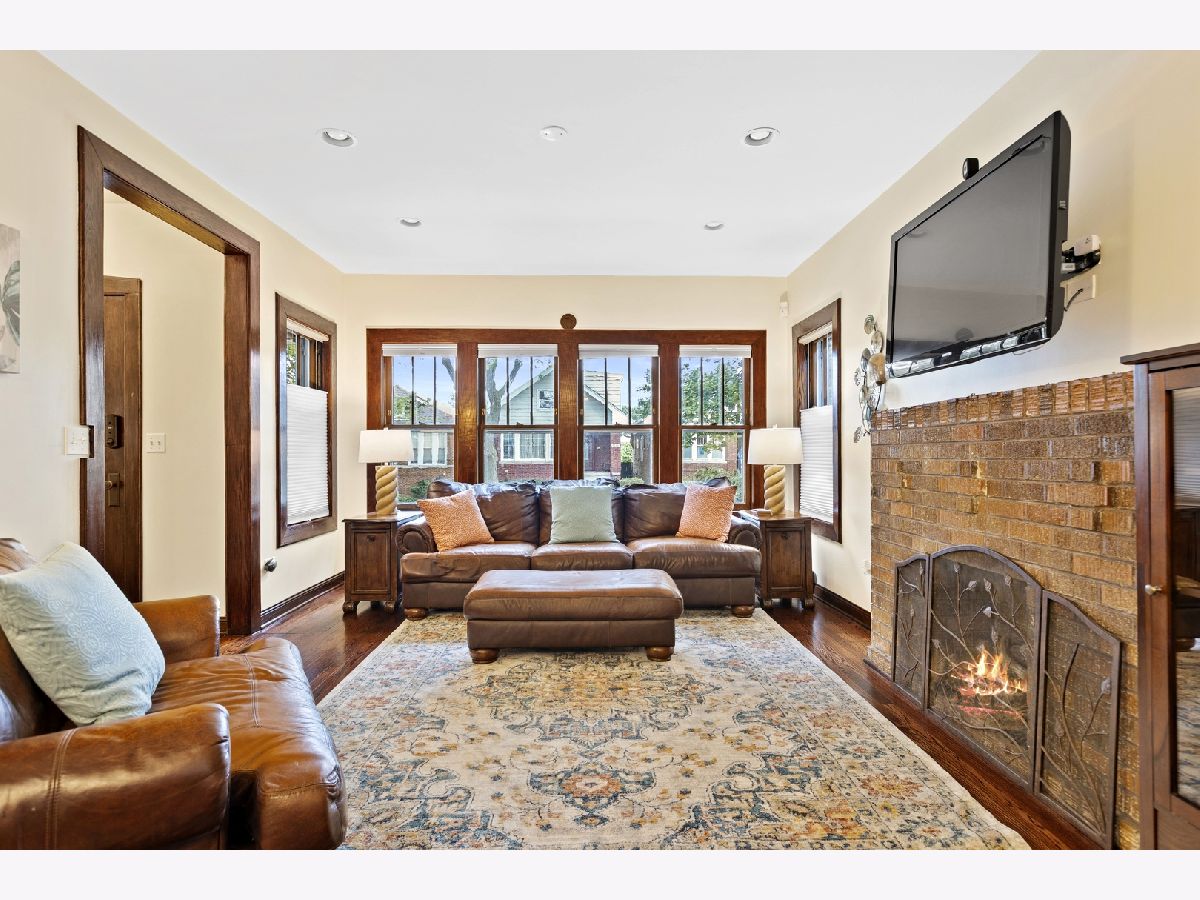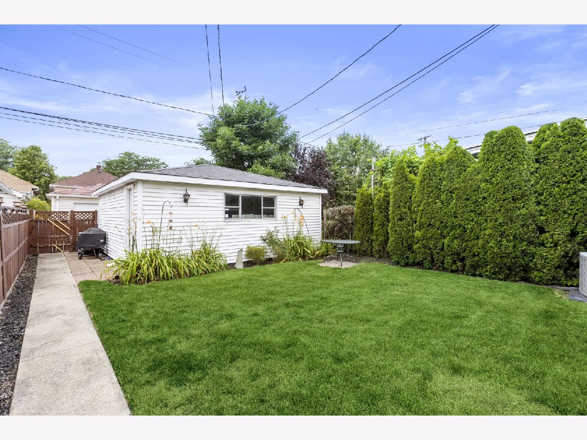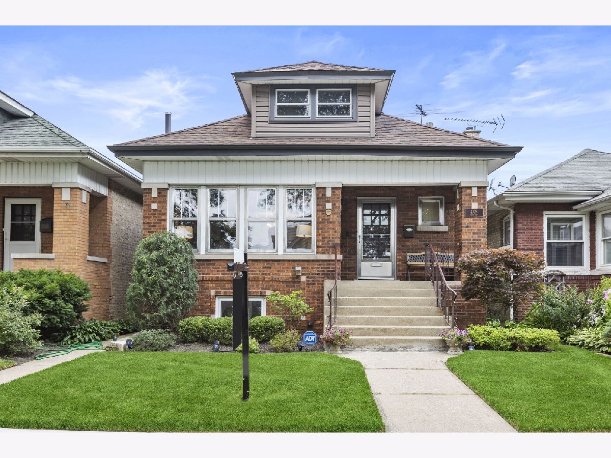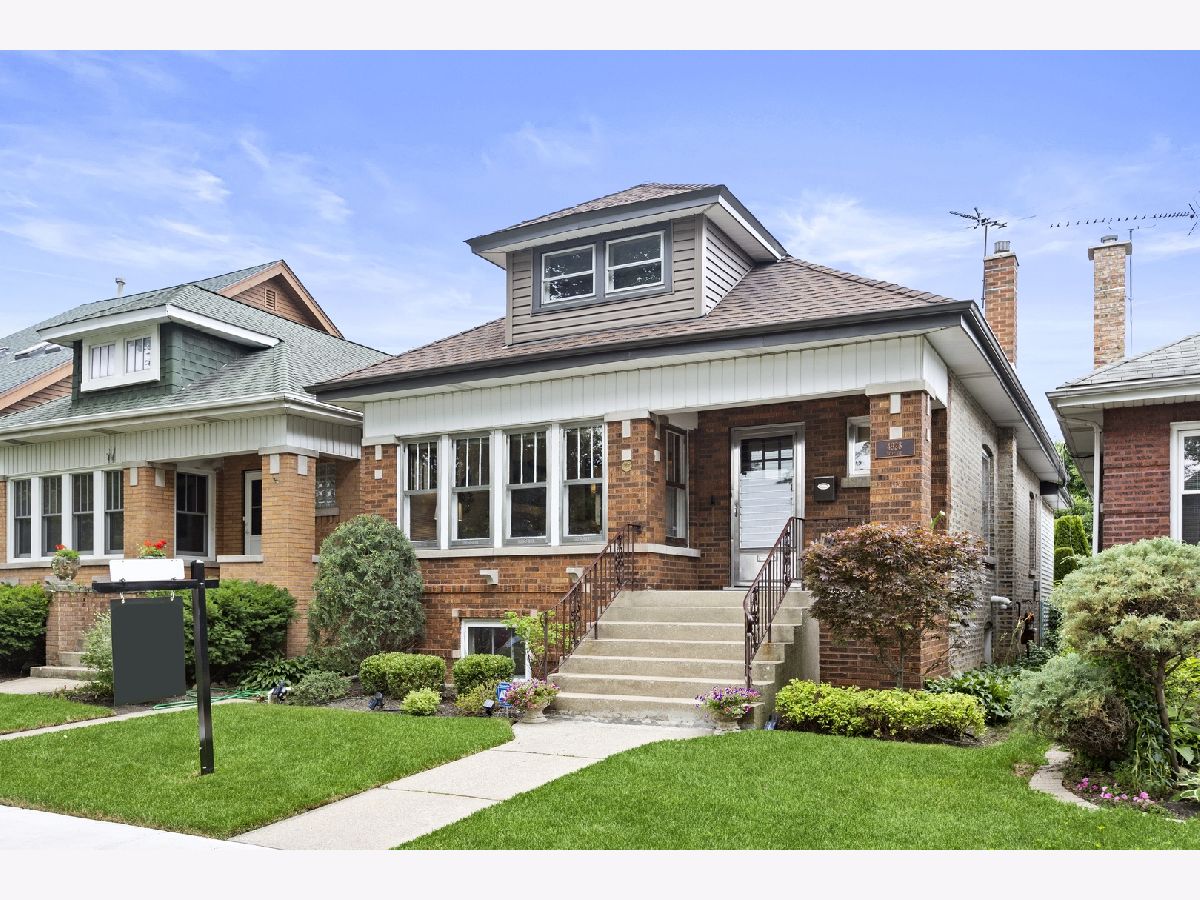 Fabulous North Mayfair location!! Historic Chicago bungalow located on a quiet, tree lined street, is perfect starter home and condo alternative. Lovingly cared for 2 bedroom plus enclosed den/porch, 1 bath home boasts refinished wood moldings throughout and gleaming hardwood floors. Large living room with gas fireplace leads to spacious formal dining room; perfect flow for gracious entertaining. First floor features two spacious bedrooms and updated full bath. Main bedroom has luxurious walk in closet/dressing room. Large, functional kitchen features stainless appliances, including brand new-xtra wide oven/range. Bonus room off kitchen currently used as office. Full open basement with high ceilings offers room for recreation and exercise plus laundry room; and insulated attic with great expansion possibilities. Lovely, lush back yard with patio area and two car garage. Near Gompers Park, expressways, Jewel, Blue line train station and buses.