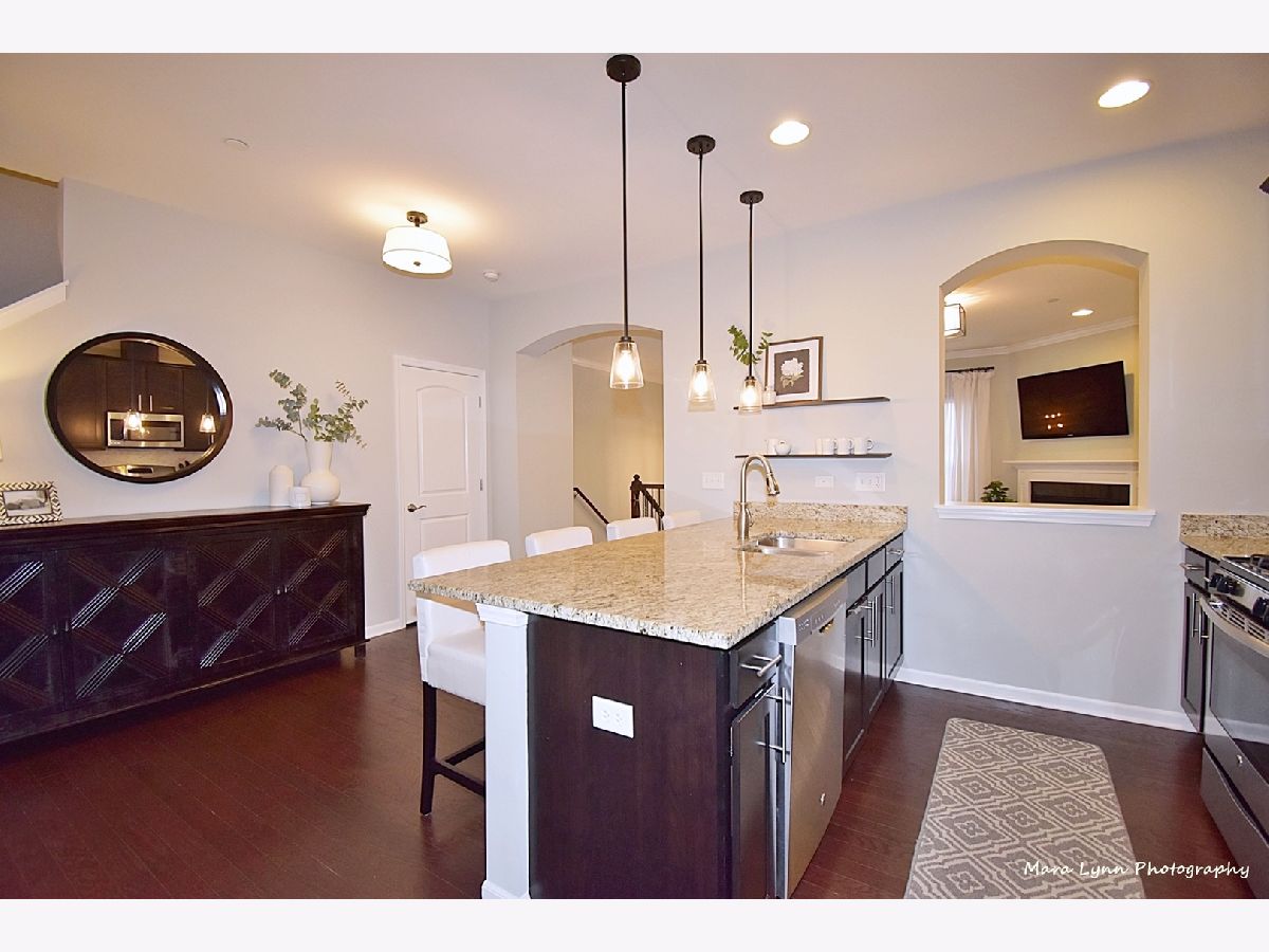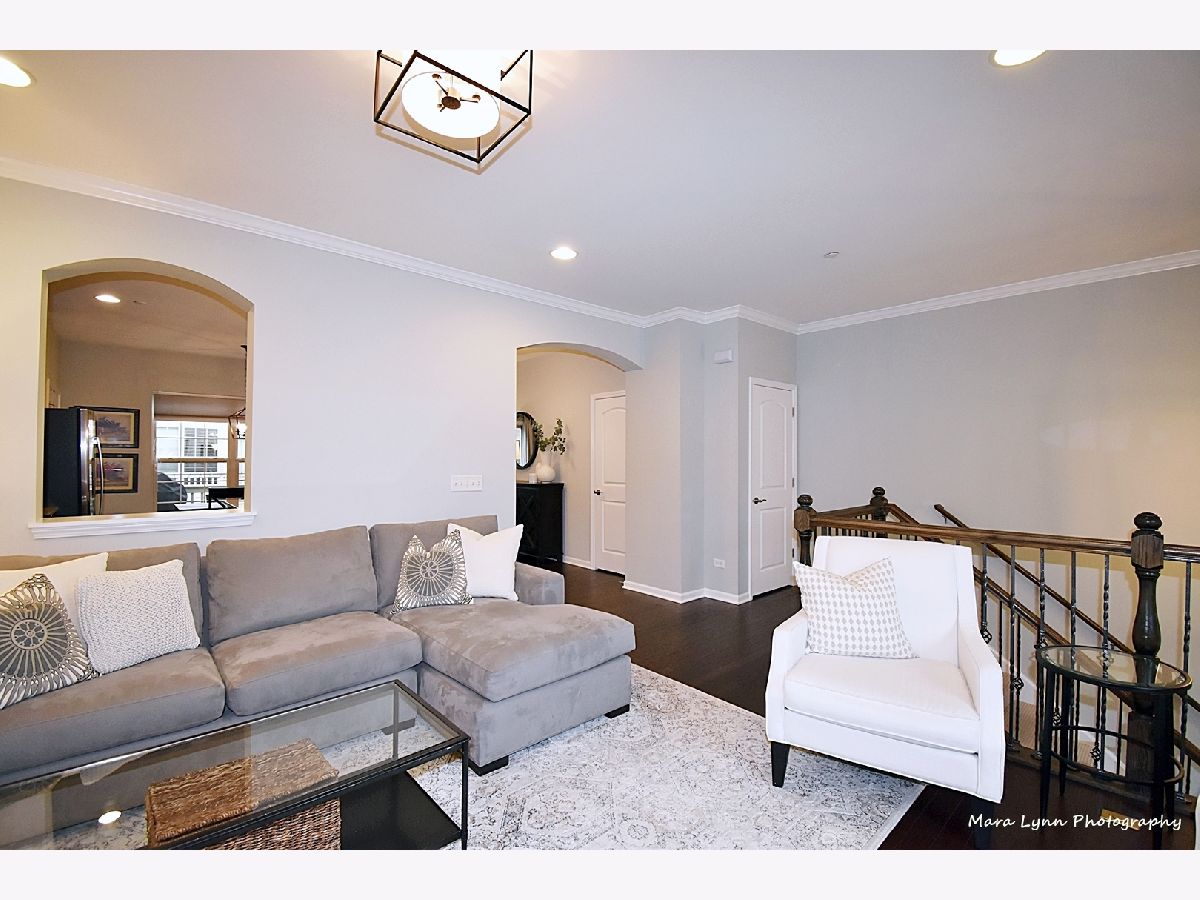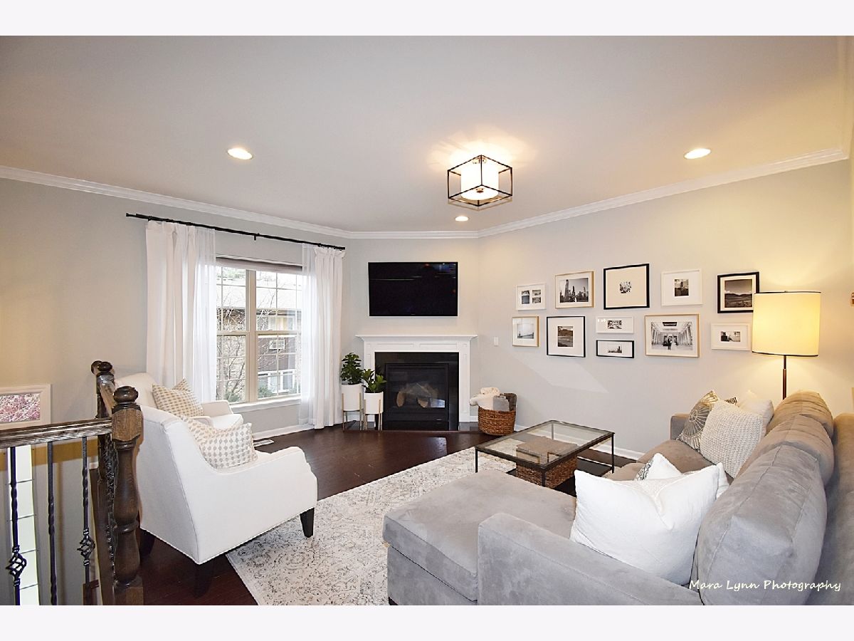 Commuter's Dream - this is a "must see" rare open concept townhouse blending contemporary styling and relaxed elegance. This central location is a short walk to downtown Glen Ellyn, Metra train, festivals, Lake Ellyn, library, schools and much more! Steps to the playground! Inside you'll find 9-foot ceilings on each floor, bright and open-concept rooms and beautiful finishes throughout. The main level offers generous living and entertaining space beginning in the large living room with gas fireplace. An arched doorway and pass-through opens to the spacious kitchen and dining room, outfitted with 42-inch cabinets, granite counters, 8-foot island, marble backsplash and stainless-steel appliances. The dining area comfortably seats eight with ample room for a buffet or extra seating. Large glass doors open to the oversized balcony. The private rooms upstairs are anchored by the primary suite, with walk-in closet and luxurious spa bath. Two secondary bedrooms offer generous closet storage and are served by the hall bath with vanity and bathtub/shower. The lower level features a bonus room ideal for office, exercise space or playroom, as well as a laundry closet and large 'mudroom' space with tile floor at the entrance from the garage. Great deep under staircase storage. New beautifully maintained, and no-maintenance professionally landscaped exteriors. Homeowner updates include new plush carpet, light fixtures throughout, fridge, dishwasher and toilets. Can use the shared courtyard for celebrations and parties. Runner or bike rider? This property is across from Illinois Prairie Path. Enjoy this maintenance-free home in the Courtyards of Glen Ellyn. Easy access to I-355/I-88.