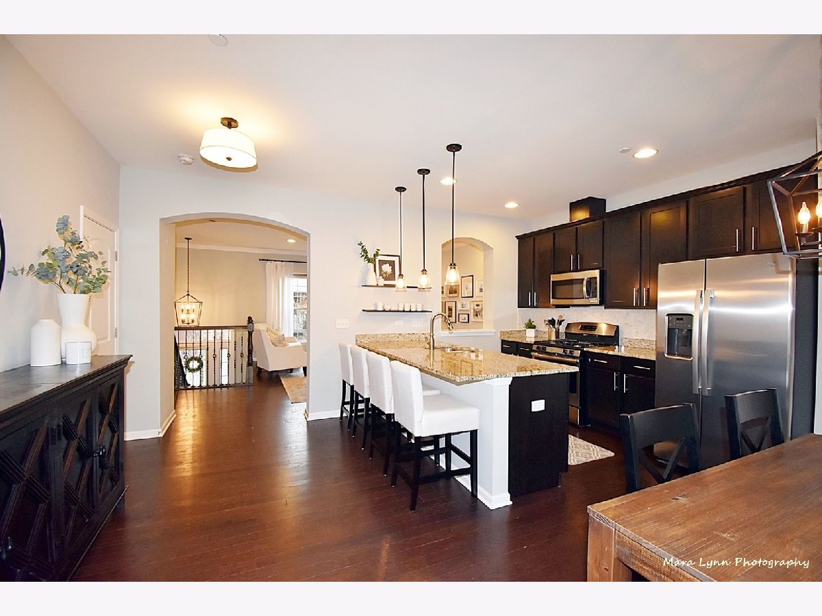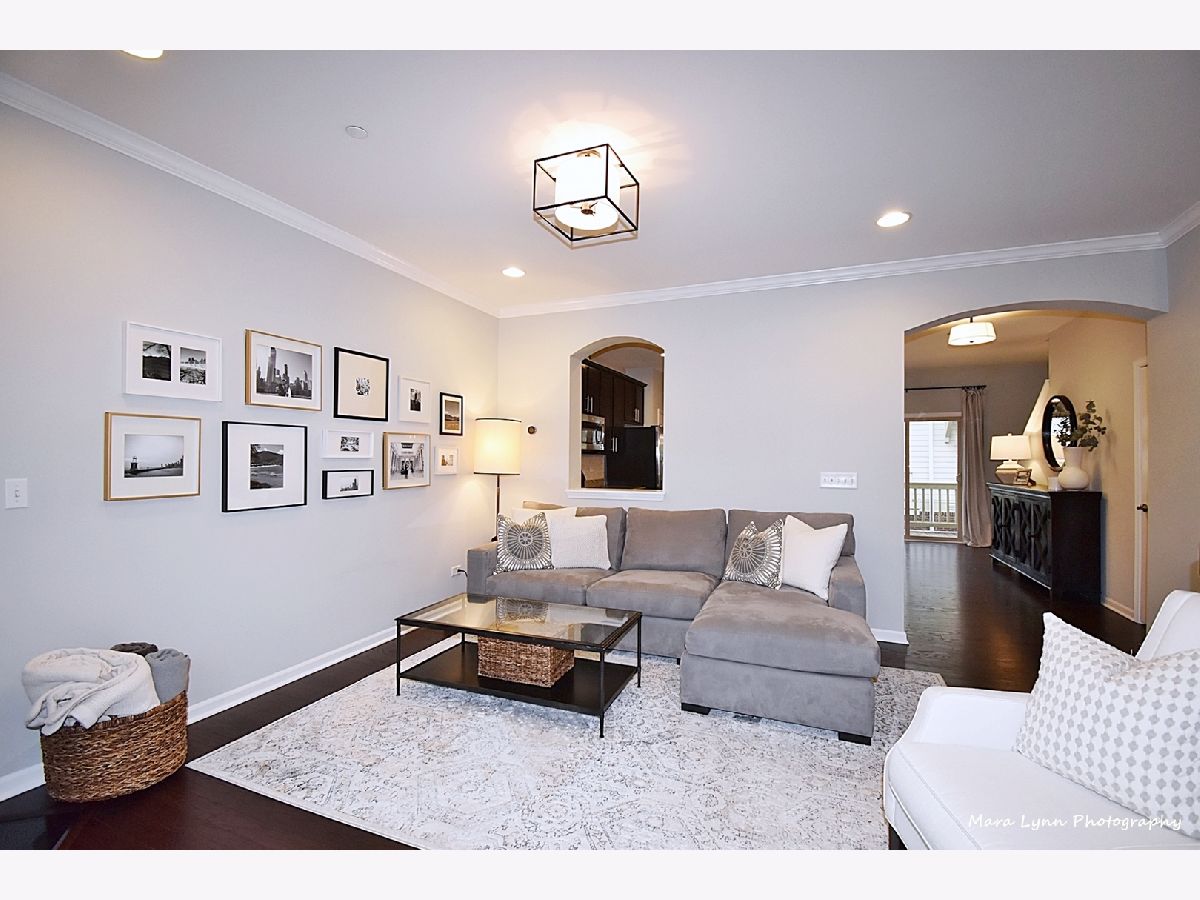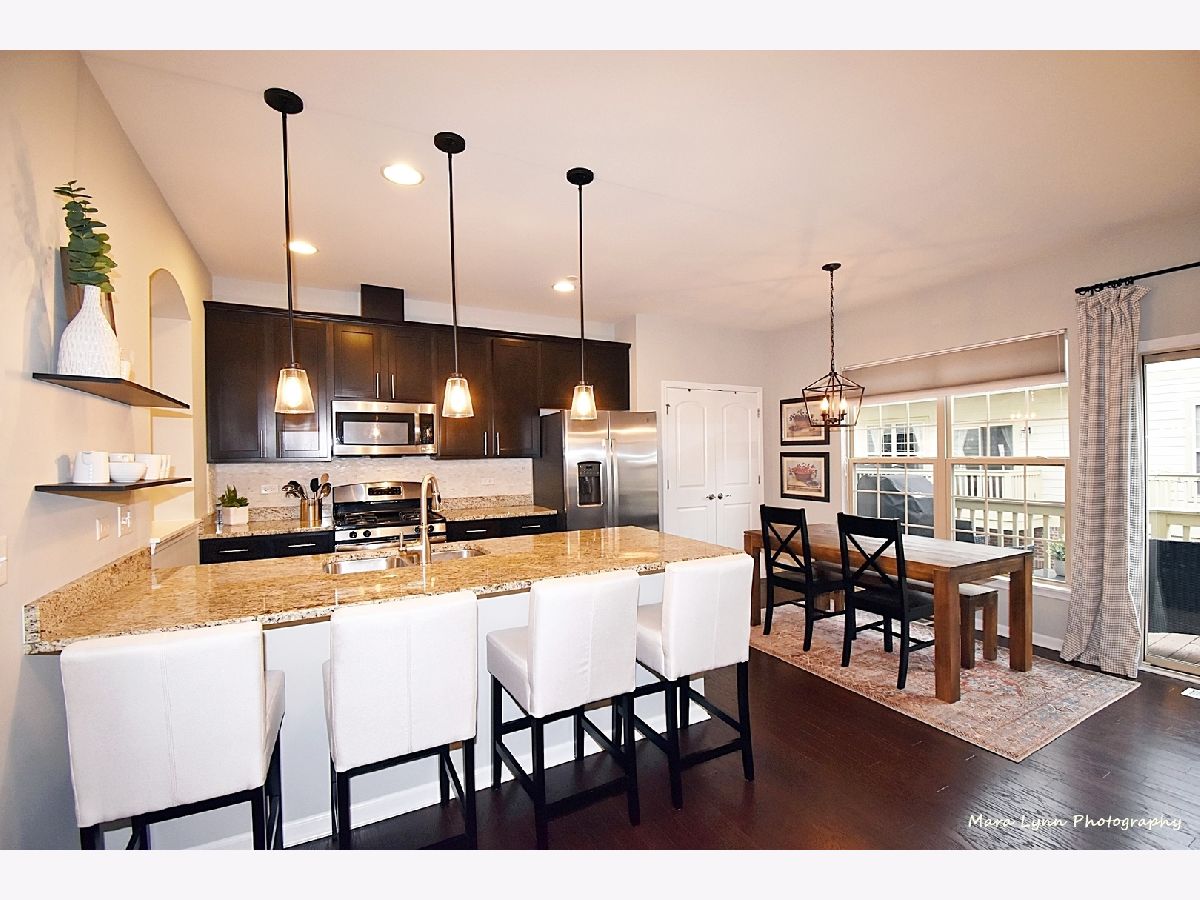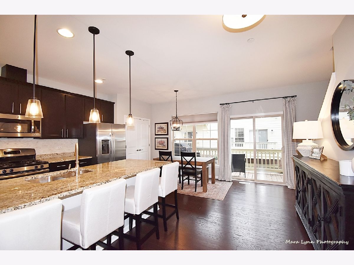 Commuter's Dream - this is a "must see" rare open concept townhouse blending contemporary styling and relaxed elegance. This central location is a short walk to downtown Glen Ellyn, Metra train, festivals, Lake Ellyn, library, schools and much more! Steps to the playground! Inside you'll find 9-foot ceilings on each floor, bright and open-concept rooms and beautiful finishes throughout. The main level offers generous living and entertaining space beginning in the large living room with gas fireplace. An arched doorway and pass-through opens to the spacious kitchen and dining room, outfitted with 42-inch cabinets, granite counters, 8-foot island, marble backsplash and stainless-steel appliances. The dining area comfortably seats eight with ample room for a buffet or extra seating. Large glass doors open to the oversized balcony. The private rooms upstairs are anchored by the primary suite, with walk-in closet and luxurious spa bath. Two secondary bedrooms offer generous closet storage and are served by the hall bath with vanity and bathtub/shower. The lower level features a bonus room ideal for office, exercise space or playroom, as well as a laundry closet and large 'mudroom' space with tile floor at the entrance from the garage. Great deep under staircase storage. New beautifully maintained, and no-maintenance professionally landscaped exteriors. Homeowner updates include new plush carpet, light fixtures throughout, fridge, dishwasher and toilets. Can use the shared courtyard for celebrations and parties. Runner or bike rider? This property is across from Illinois Prairie Path. Enjoy this maintenance-free home in the Courtyards of Glen Ellyn. Easy access to I-355/I-88.
