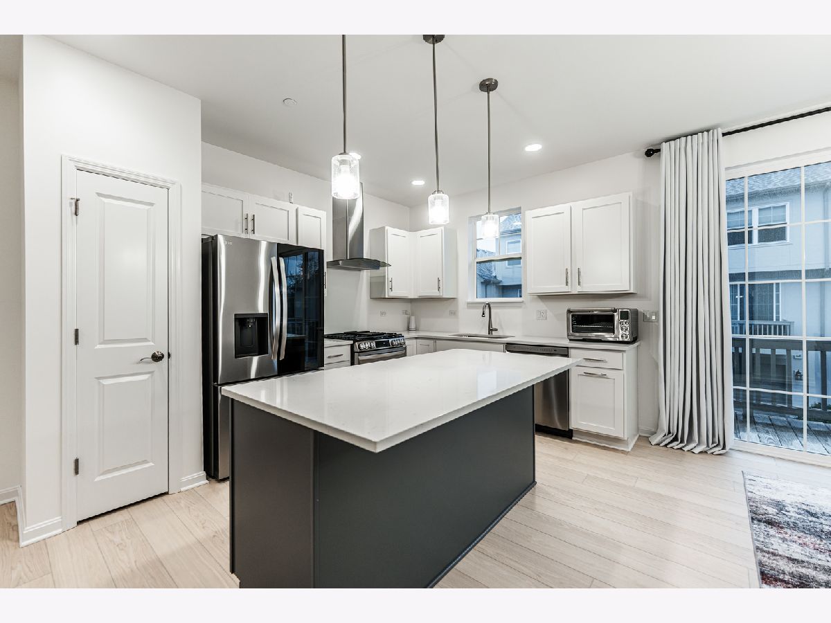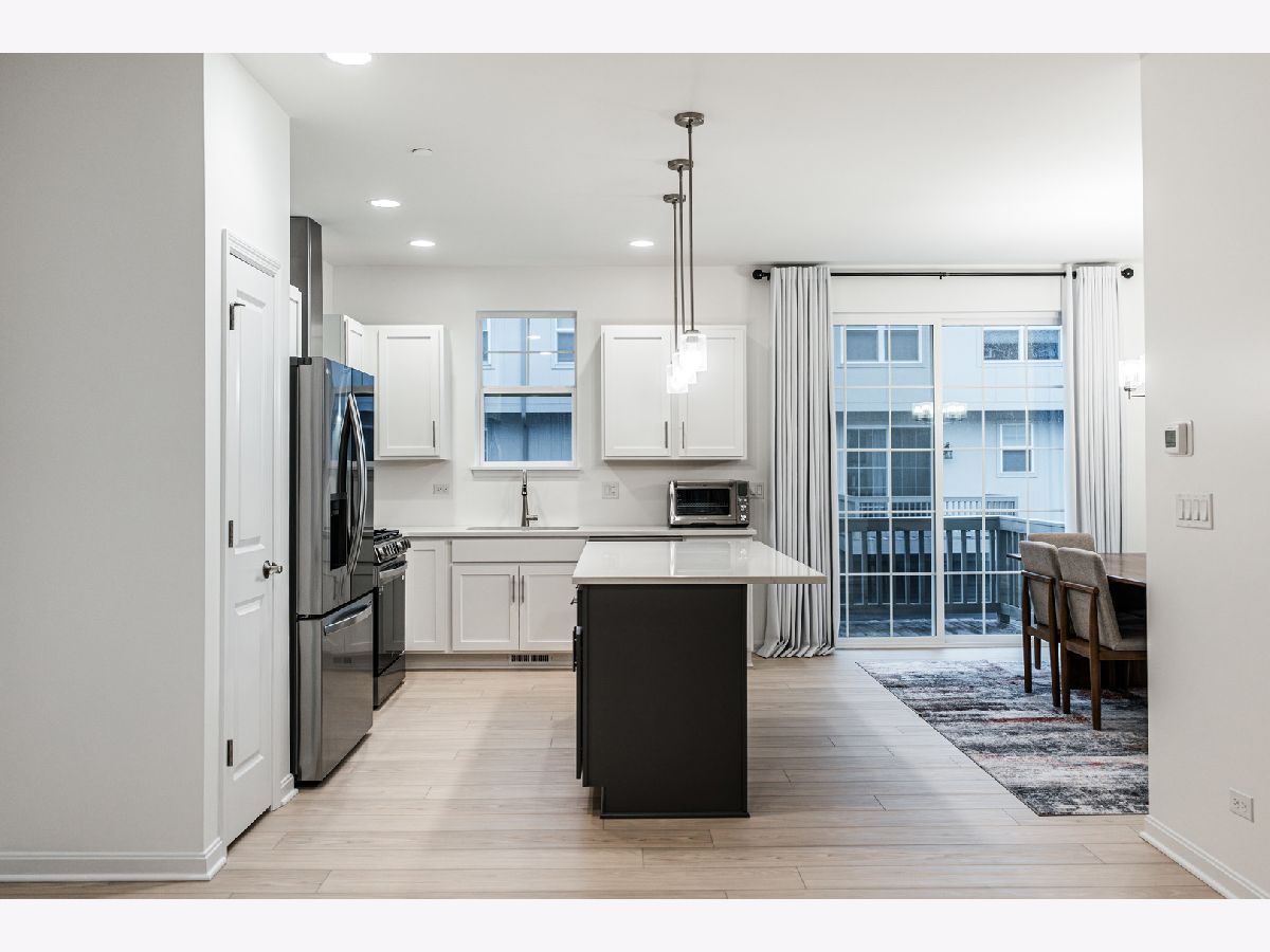 Experience the perfect harmony of elegance, comfort, and modern design in this meticulously maintained 3-bedroom, 2.5-bathroom townhome, nestled in one of the most desirable neighborhoods. From the moment you step inside, you'll be captivated by the gorgeous Beachwood floors and expansive open floor plan, thoughtfully designed to maximize natural light and create a seamless flow throughout the home. The heart of the home is the spacious, gourmet kitchen an entertainer's dream featuring sleek white quartz countertops, crisp white cabinetry, all stainless-steel appliances, and not one, but two inviting eat-in areas. A generous center island with breakfast bar seating serves as the perfect gathering spot for casual dining, meal prep, or entertaining friends and family. The living room radiates warmth and style, highlighted by recessed lighting, a contemporary ceiling fan, and rich luxury vinyl plank flooring. Step outside and unwind on one of two private balconies one located off the kitchen with a built-in gas line, ideal for grilling, and the other just off the living room, perfect for morning coffee or evening wind-downs. A conveniently located powder room completes the main living level. Upstairs, retreat to the serene primary suite featuring a walk-in closet and a spa-inspired en suite bath with a glass-enclosed walk-in shower and a dual-sink vanity. Two additional generously sized bedrooms offer neutral decor, spacious closets, and share a beautifully appointed full bath. The laundry area is complete with washer and dryer is also located on this floor for added ease. The lower level offers a versatile bonus room that can be tailored to your lifestyle use it as a home office, fitness studio, or even a fourth bedroom. The attached two-car garage has exposed floors and an EV charger and provides abundant storage and secure parking. Perfectly located near top-tier shopping centers, dining, entertainment, and major expressways, this townhome seamlessly combines luxury, convenience, and functionality. Opportunities like this are few and far between come make this exceptional residence as your own.