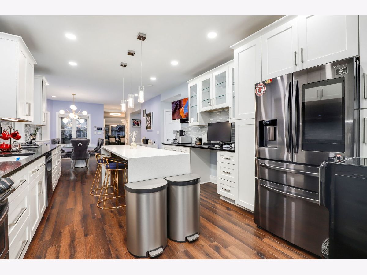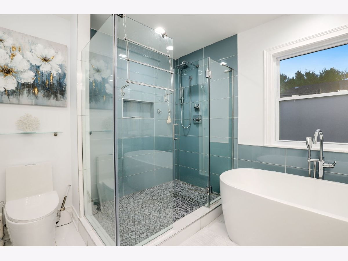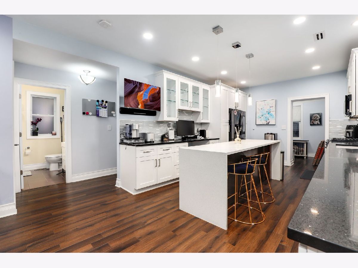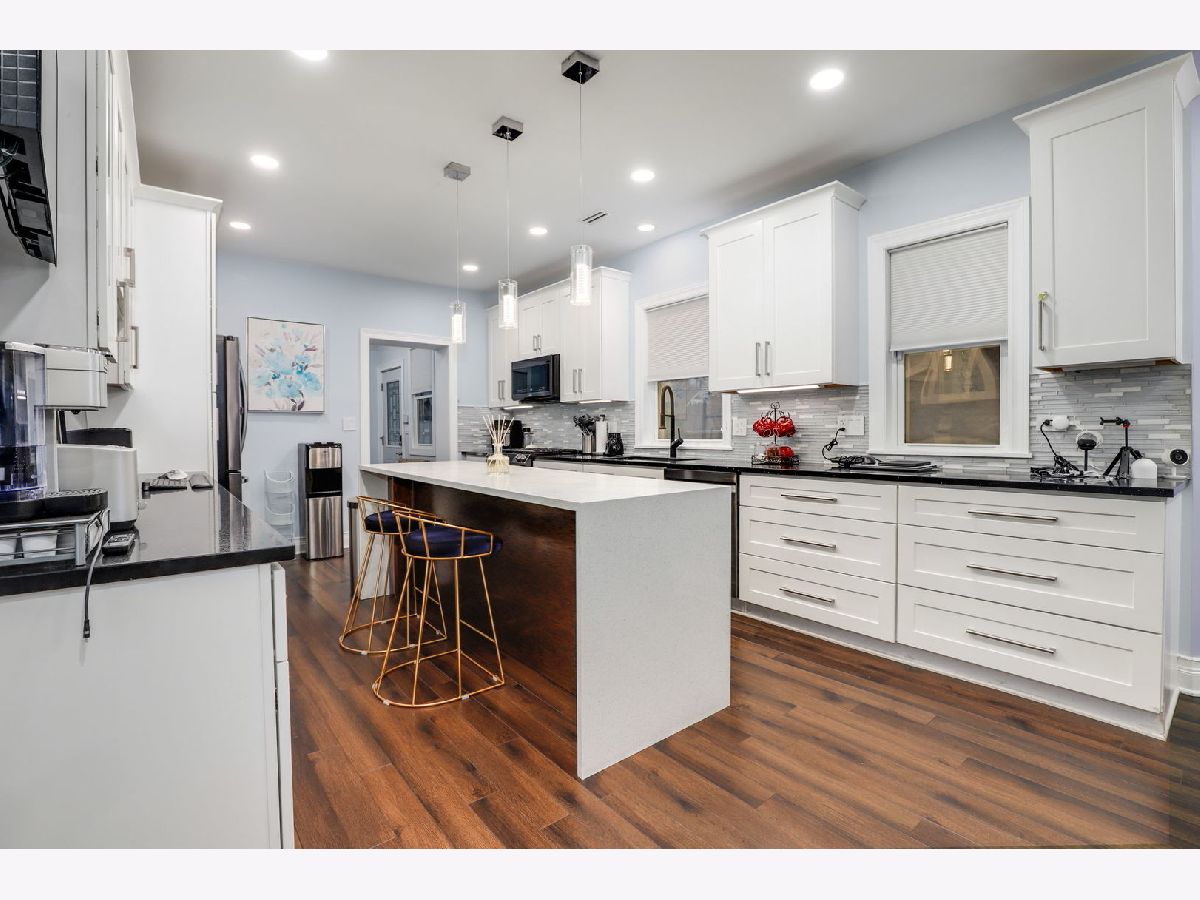 Welcome home to this expansive classic bungalow- completely updated- spanning 3 levels of gorgeous finishes. This extra wide 5BR/3BA home offers a seamless floor plan- perfect for entertaining, comfortable living and storage. The main level features hardwood floors, a sun filled living room opening to the separate dining space. The recently updated kitchen features beautiful white cabinetry, new upscale appliances, huge pantry space and stunning quartz countertops with a waterfall island. The main floor also hosts a large bedroom w/additional office or study space, an updated full bath, laundry and a mud room with additional storage. The fully dormered second level continues with hardwood floors and has 4 spacious bedrooms, including an enormous primary suite w/en-suite bath with soaking tub, walk in shower and built out walk in closet. Another double vanity full bath completes the second floor. The fully finished basement has tile flooring and so much recreational space to accommodate any office, workout, guest or additional living space. The back yard has brick pavers leading to a 2 car garage. This home is move in ready with newer roof, plumbing, HVAC, electrical systems and offers smart home technology throughout. Located on a lovely tree lined street close to CTA, expressways, shopping and restaurants.