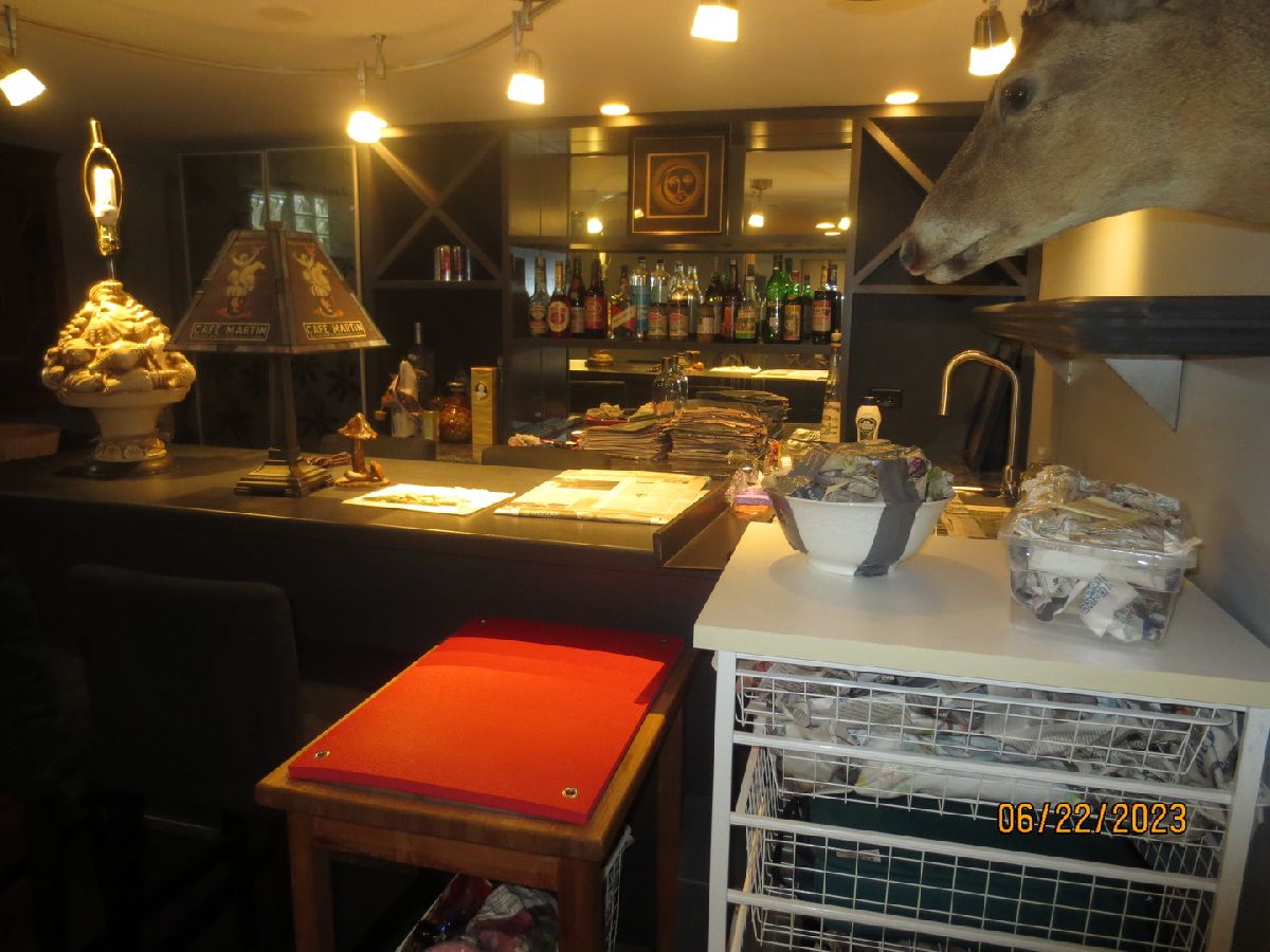 Brick ranch located in a private, semi-cul-de-sac location. Long time family owned and nicely updated. Kitchen with garden window, newer white cabinets with white appliances. Combination granite counter top and butcher block corner. Third bedroom has been modified into a library which is open to the living room and can easily double as the third bedroom. Hardwood and laminate floors on the main level. There's an exit from one of the bedrooms into an enclosed rear porch. Updated bathrooms, finished basement with a rec room, wet bar, summer kitchen, and bathroom with shower. Gas forced air furnace is set up for central air, however the outside condenser unit was removed and a new one needs to be installed . Windows have been replaced, house tuckpointed. Rear yard has a Gazebo that is currently used to store patio furniture. Other than de-cluttering, the home is in great condition but being Sold "as-is".