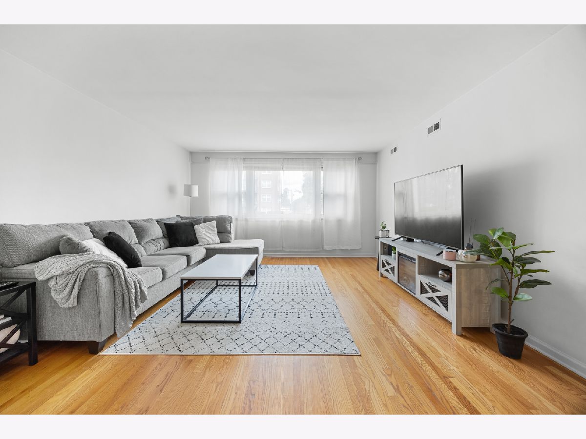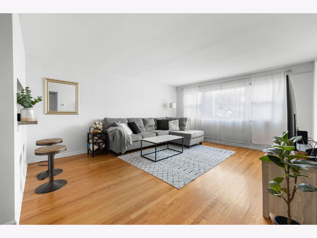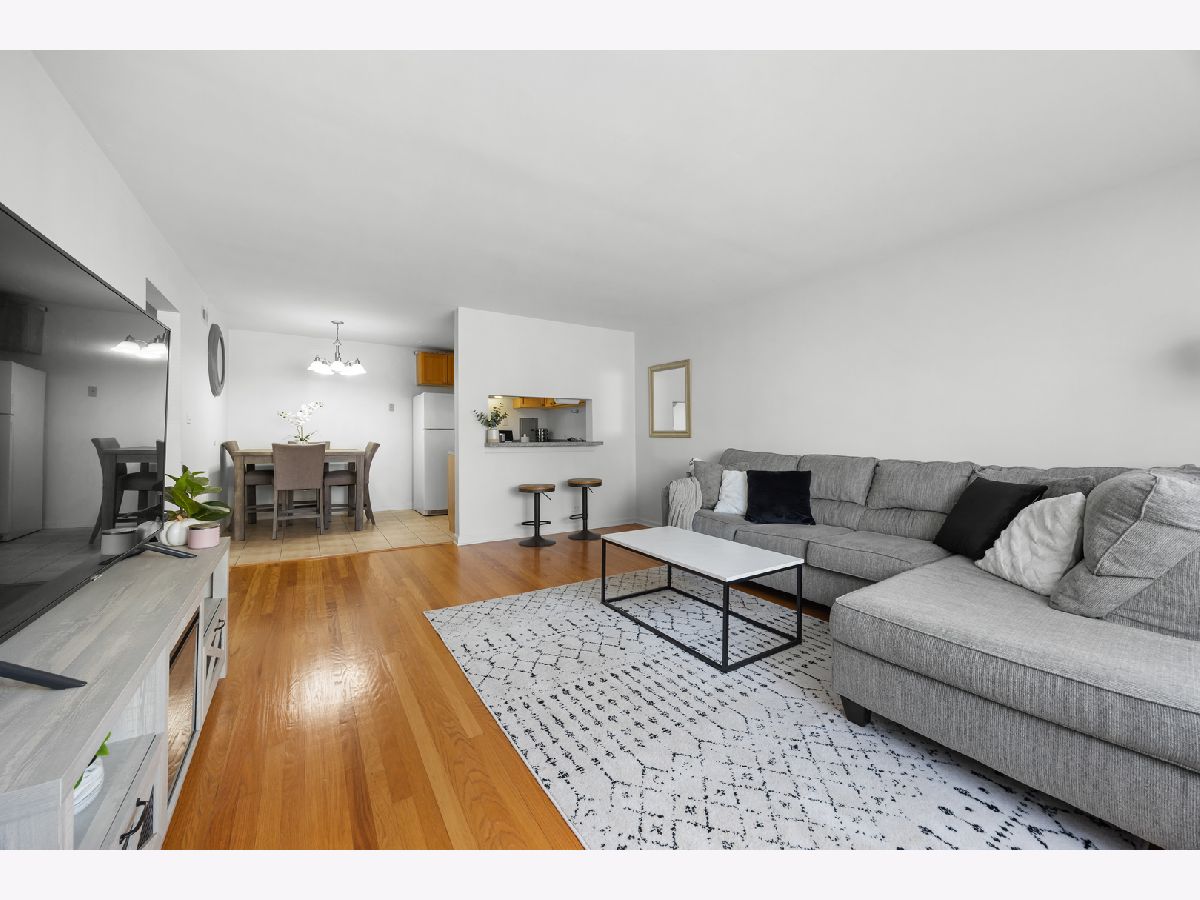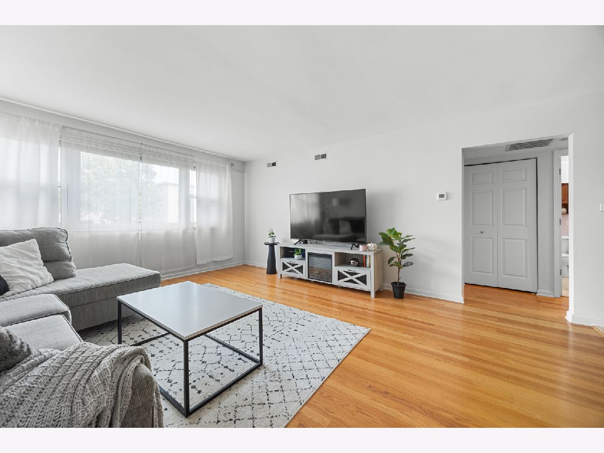 Spacious and bright first-floor 1-bedroom, 1-bath condo in a convenient Skokie location. The unit features a large living room with hardwood floors, a comfortable dining area, and a functional kitchen. Common laundry and a private storage area are located in the basement. An assigned parking space (#7). The building has no elevator. Rentals are permitted after three years of owner occupancy. Across from the Weber Center with fitness, skating, and a community golf course. Close to Old Orchard Shopping Center, restaurants, and expressways. Property to be sold in as-is condition.