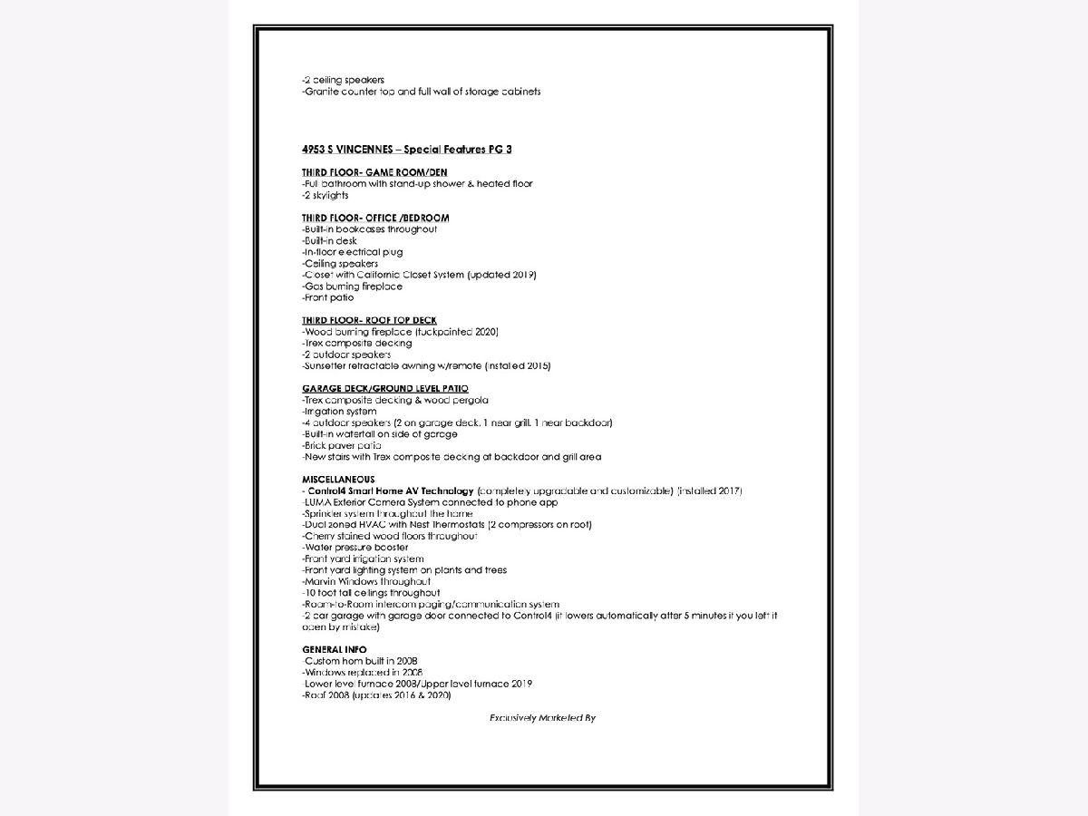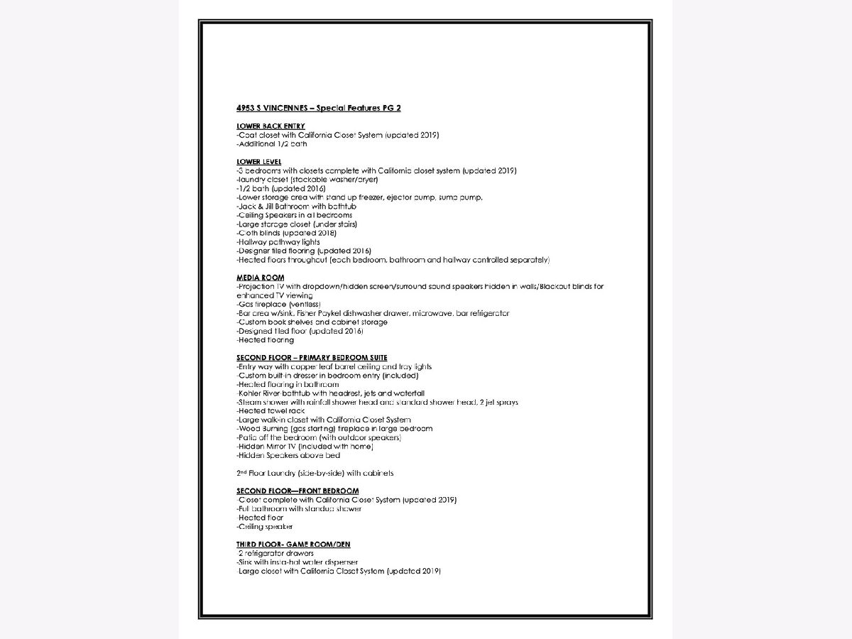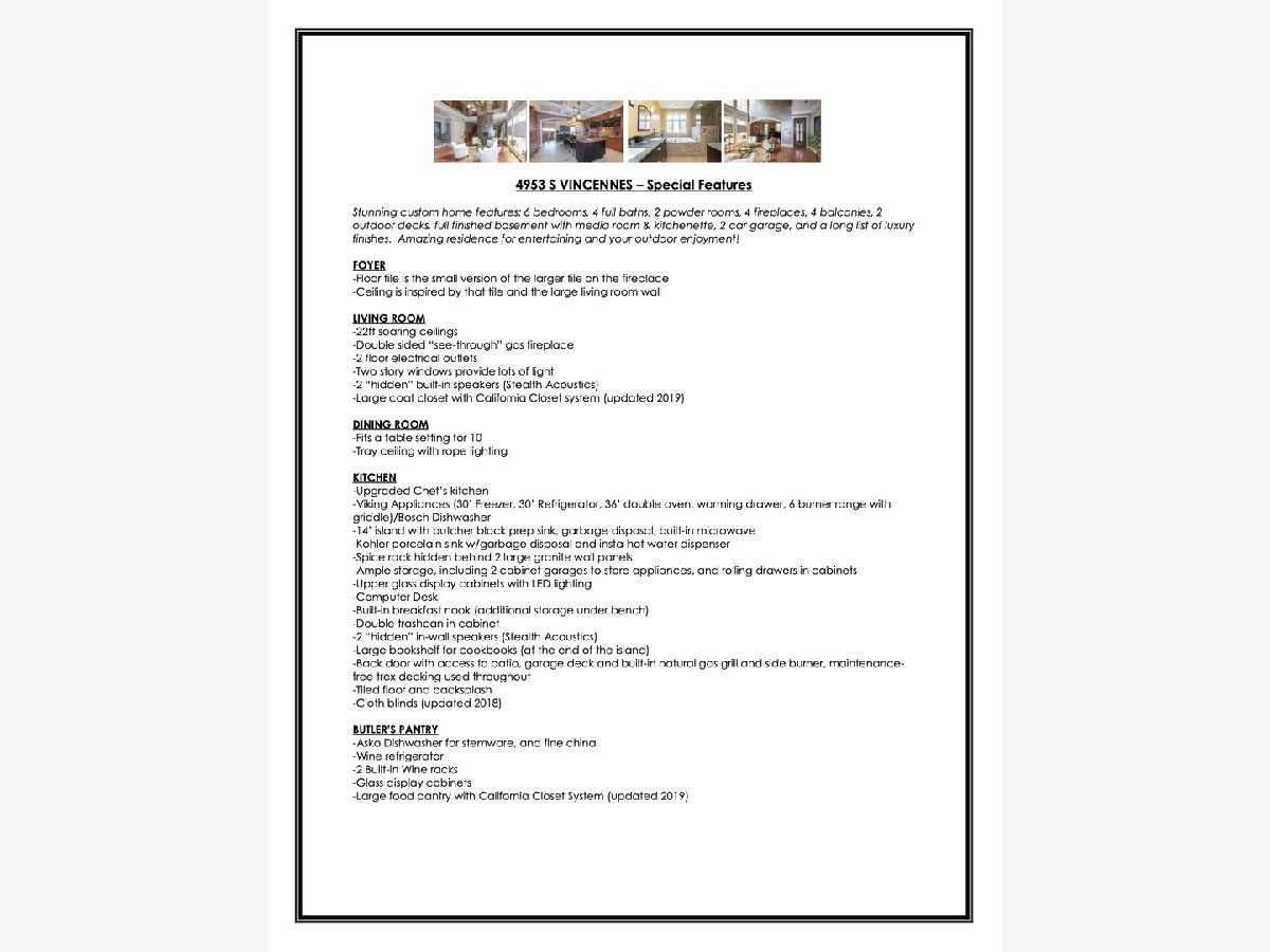 This stunning showpiece has exquisite amenities, unlike any others on market. Spacious SMART HOME and whole house audio by Control4, boasts 5500sf, 6BR's, 4 full baths, 2 powder rooms, and two car garage. Some stand out features include soaring 22ft coffered ceilings, two story windows and 4 fireplaces. True Chefs kitchen featuring Viking 6 burner range & refrigerator, Bosch dishwasher, insta hot water dispenser, warming drawer, double oven, wine fridge, formal Butler's Pantry with dishwasher, large storage pantry, creative hidden spice racks, pantry with swinging shelving, cabinets have rolling drawers and more. Spacious main bedroom suite, with gas fireplace, big balcony, hidden mirrored TV, luxurious bath with steam shower, heated floors & towel rack, a Waterfall jetted tub with headrest, & a custom large walk-in closet. Full finished lower level with heated floors has 3BR's ,one being used as a home gym, one full Jack and Jill bathroom and a half bathroom. A large kitchenette w/ a wine cooler, ice machine, dishwasher & microwave. The hallway has path lighting leading to a theater room with a projector and hidden screen, surround sound, and blackout shades. Home has 4 balconies, 2 huge rooftop decks, backyard, 2 grills, & 2 outdoor fireplaces. Near U of C, Hyde Park, & Bronzeville area. Minutes to loop, lake and shopping. ELIGIBLE FOR BUYER PAID LENDER CLOSING COSTS & PAID APPRAISAL VIA HUNTINGTON BANK...ASK FOR DETAILS.