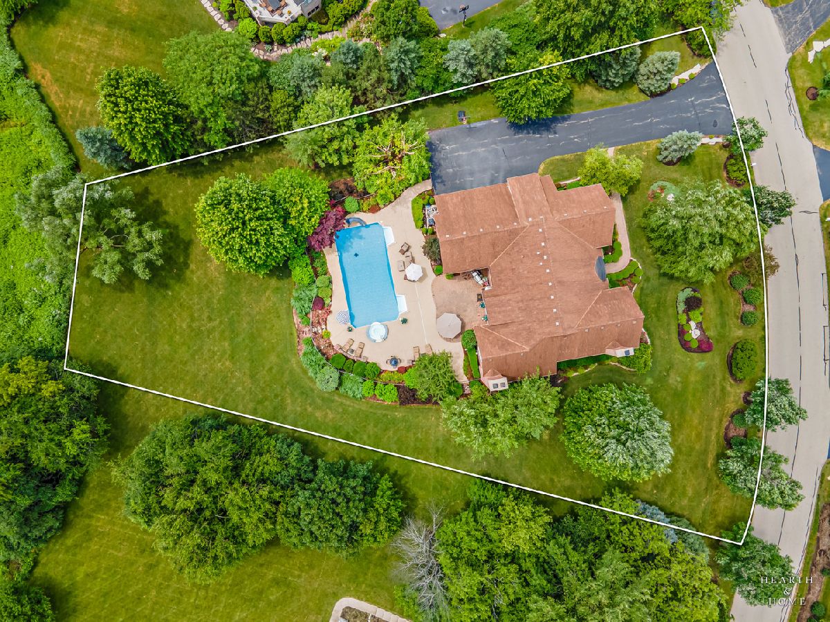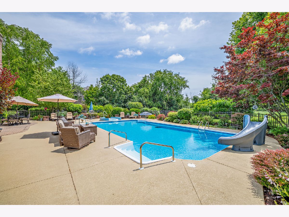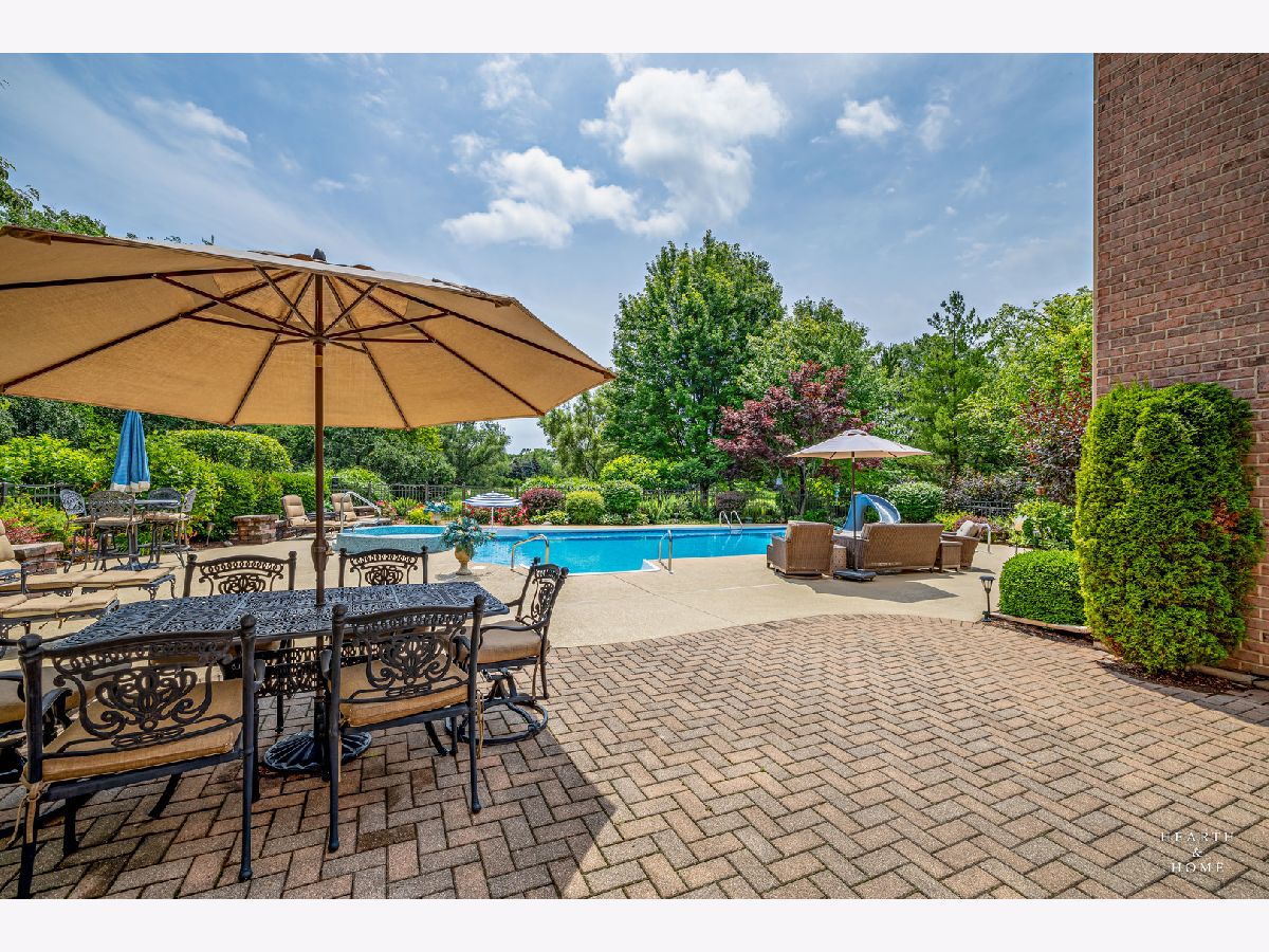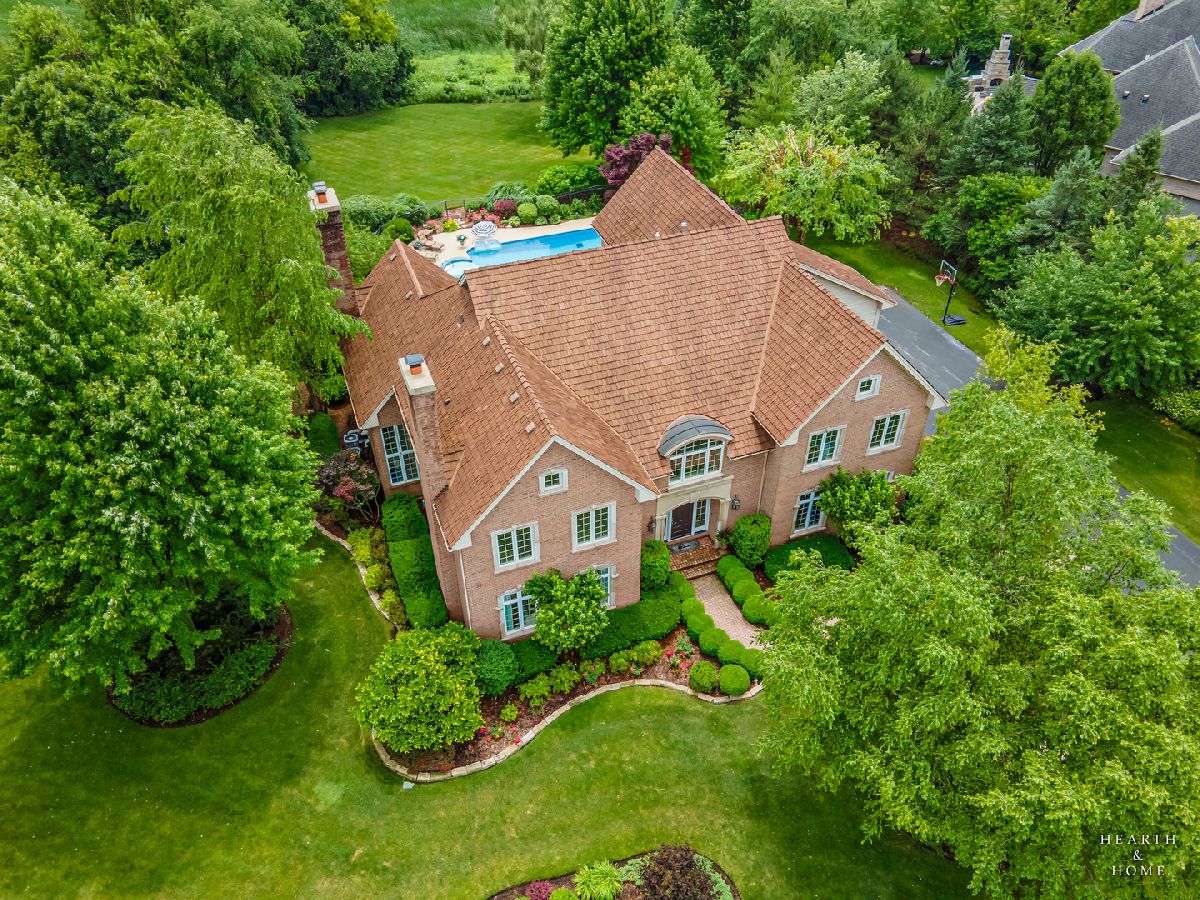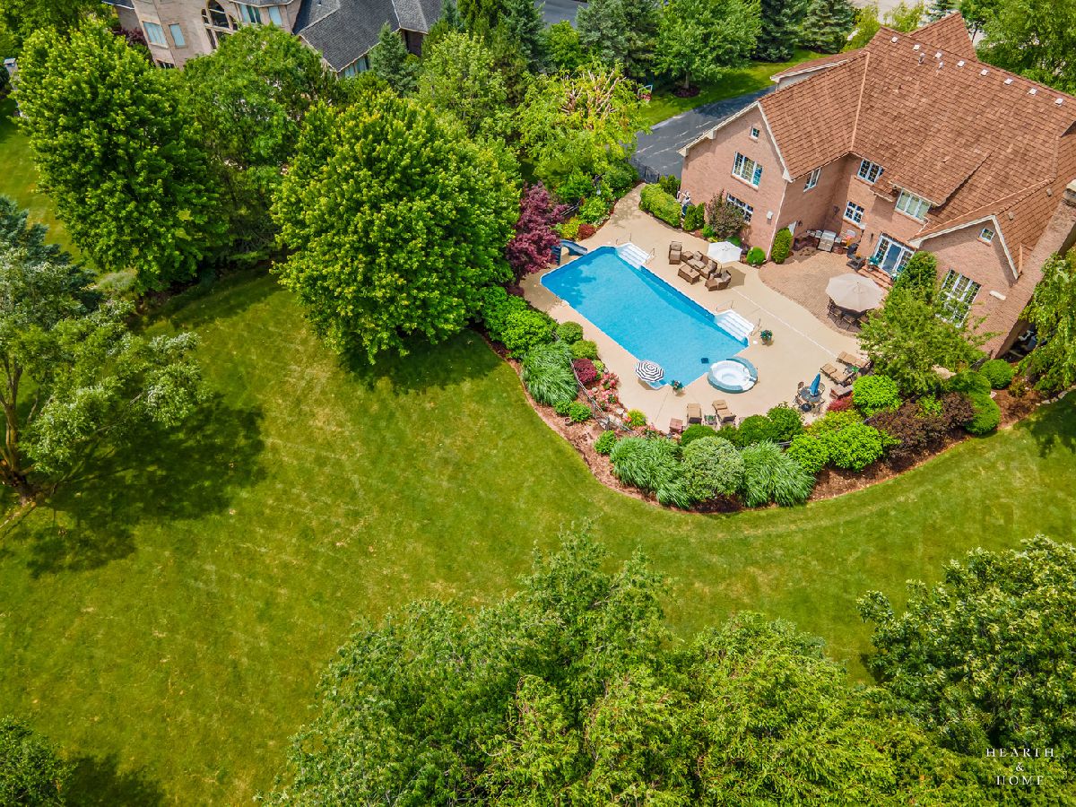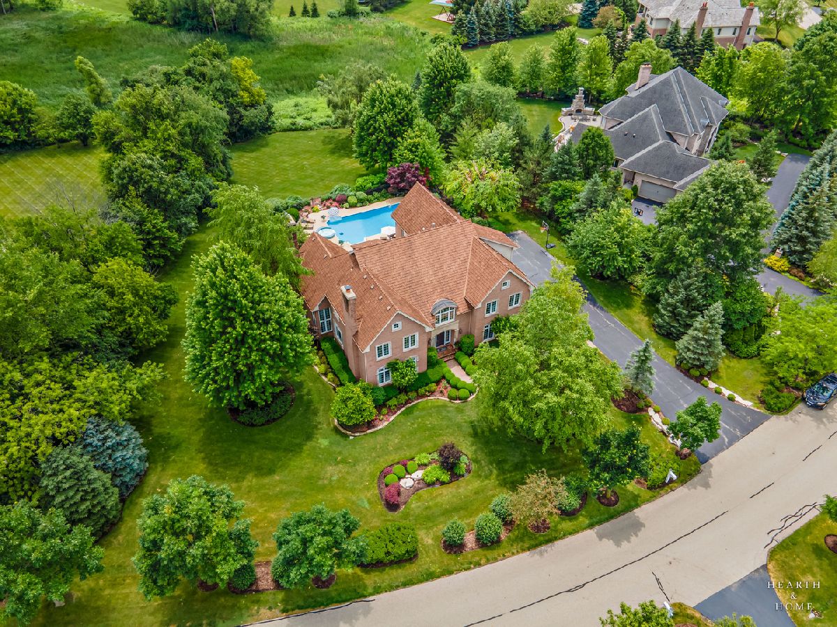 Simply sublime backyard pool retreat and elegant decor and finishes throughout make this gorgeous 6 bedroom home in the prestigious Prairie Trails neighborhood truly special. Relax in your own slice of paradise nestled on an acre of tranquil privacy, featuring an in-ground pool with jetted spa enclosed by a concrete and brick paver patio. The pool includes a new liner, cleaner, motor, and heater. This stunning home makes a great first impression with a grand 2 story foyer with crystal chandelier and beckons you into the great open floor plan. A brand new gourmet kitchen is highlighted by quartz countertops, custom milled cabinet doors, custom refrigerators doors, custom faucet, custom cabinet hardware, and exquisite high end appliances - including Subzero column refrigerator & freezer, Shaw sink, Waterstone faucet & handles, custom designed hood by Custom Copper Hoods matches the faucet and hardware, U-line beverage center, GE Profile Advantium wall oven with microwave, and GE Monogram warming drawer. Huge eating area with access to the patio, plus a spacious formal dining room. Unwind in the inviting family room with tons of natural light, beautiful backyard views, and soaring custom fireplace hearth. Tons of thoughtful touches throughout including crown molding, wainscotting, French doors, wrought iron spindled staircase, and all hardwood floors recently refinished. First level also offers a living room with marble fireplace and a large home office. Primary bedroom suite features a dramatic tray ceiling with recessed lighting and crystal chandelier, a spacious dressing room with organizer system, and main bathroom with dual granite vanities, soaking tub, and a glass shower. New wood floors throughout the upper level, where you will find four more spacious secondary bedrooms. The brand new finished basement features a large rec area, 6th bedroom, full bathroom, fireplace, and tons of storage space. Convenient whole home central vac as well. Professional landscaping nourished by in-ground sprinkler system with views of nearby protected nature conservancy, plus a 50+ year cedar roof that has been expertly maintained, put the perfect finishing touches on this rarified home, all within sought after Stevenson High School boundaries. Assessment includes common area maintenance AND water with city sewer and water!