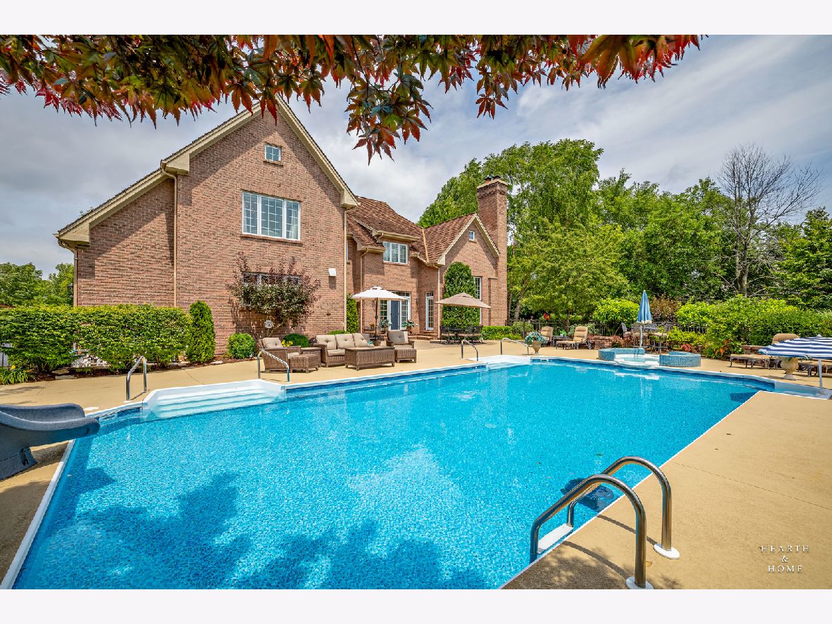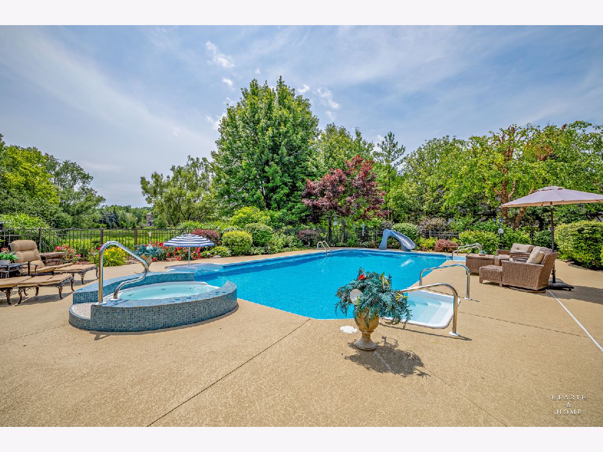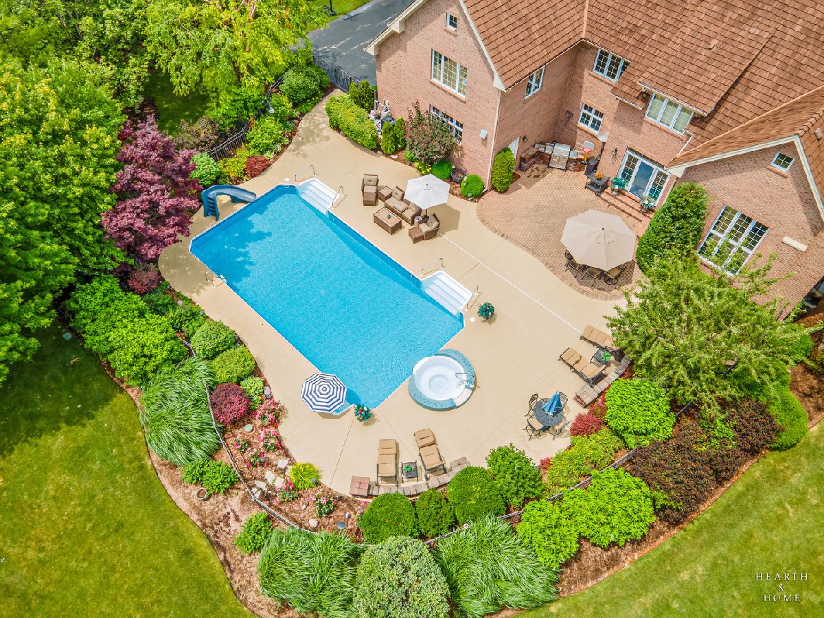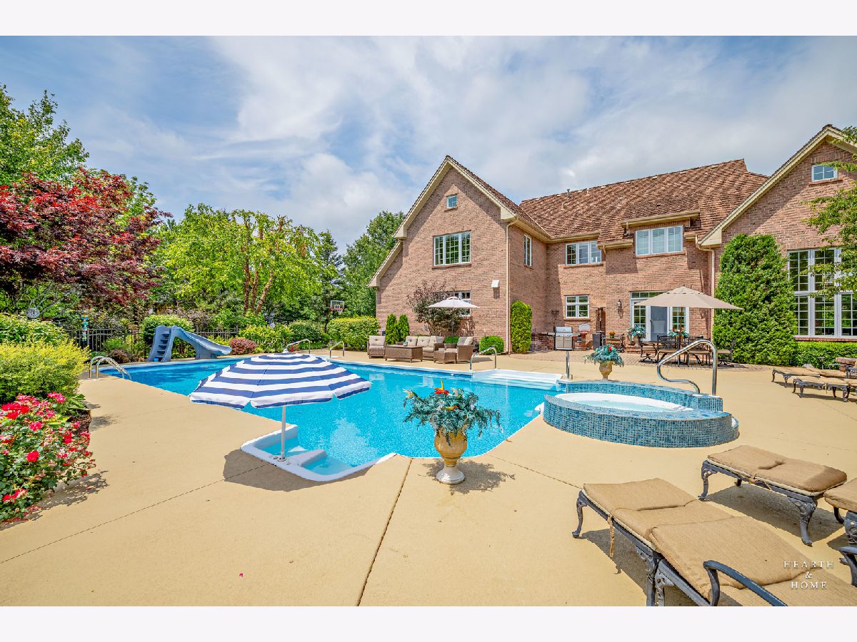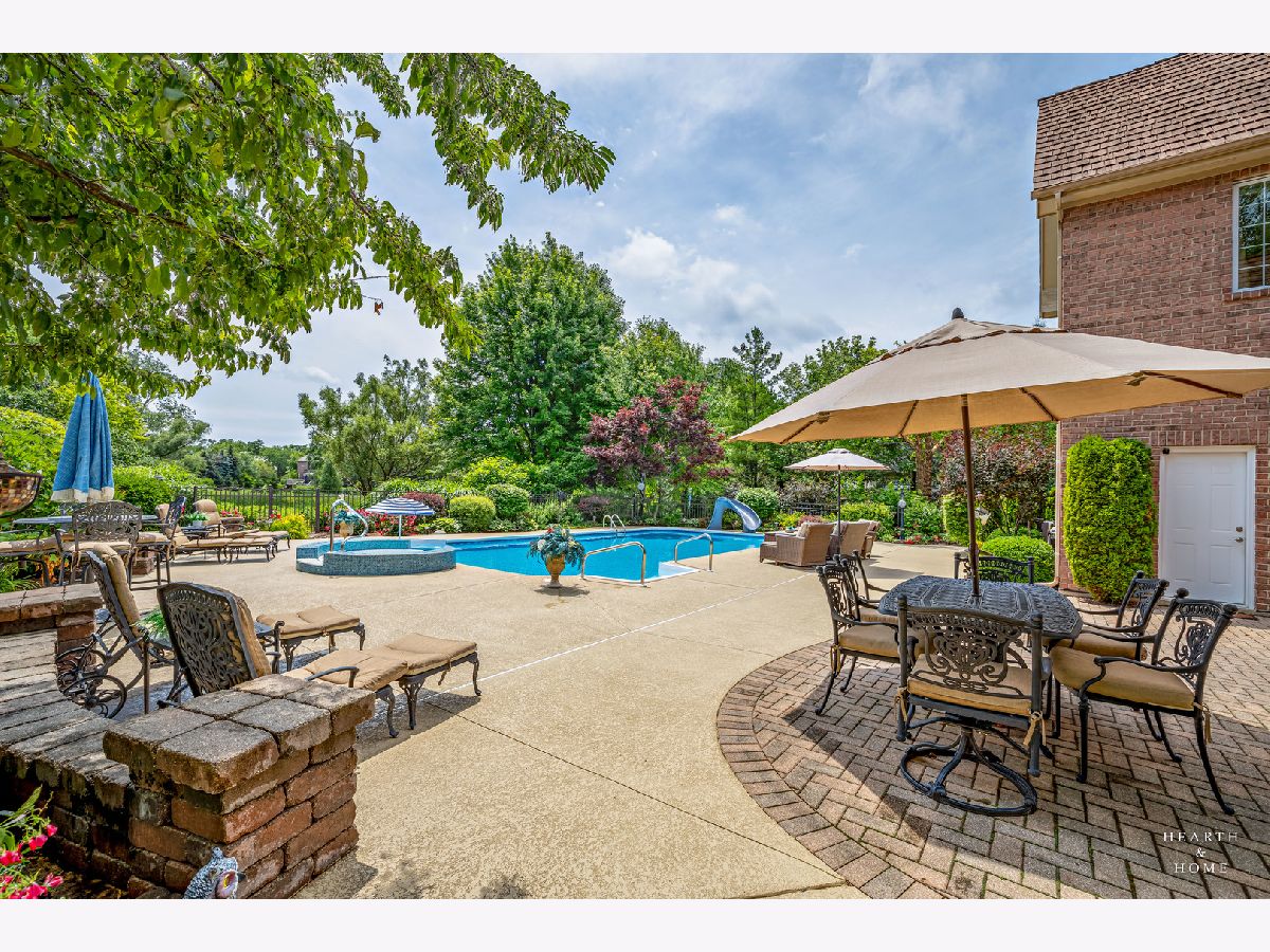 Simply sublime backyard pool retreat and elegant decor and finishes throughout make this gorgeous 6 bedroom home in the prestigious Prairie Trails neighborhood truly special. Relax in your own slice of paradise nestled on an acre of tranquil privacy, featuring an in-ground pool with jetted spa enclosed by a concrete and brick paver patio. The pool includes a new liner, cleaner, motor, and heater. This stunning home makes a great first impression with a grand 2 story foyer with crystal chandelier and beckons you into the great open floor plan. A brand new gourmet kitchen is highlighted by quartz countertops, custom milled cabinet doors, custom refrigerators doors, custom faucet, custom cabinet hardware, and exquisite high end appliances - including Subzero column refrigerator & freezer, Shaw sink, Waterstone faucet & handles, custom designed hood by Custom Copper Hoods matches the faucet and hardware, U-line beverage center, GE Profile Advantium wall oven with microwave, and GE Monogram warming drawer. Huge eating area with access to the patio, plus a spacious formal dining room. Unwind in the inviting family room with tons of natural light, beautiful backyard views, and soaring custom fireplace hearth. Tons of thoughtful touches throughout including crown molding, wainscotting, French doors, wrought iron spindled staircase, and all hardwood floors recently refinished. First level also offers a living room with marble fireplace and a large home office. Primary bedroom suite features a dramatic tray ceiling with recessed lighting and crystal chandelier, a spacious dressing room with organizer system, and main bathroom with dual granite vanities, soaking tub, and a glass shower. New wood floors throughout the upper level, where you will find four more spacious secondary bedrooms. The brand new finished basement features a large rec area, 6th bedroom, full bathroom, fireplace, and tons of storage space. Convenient whole home central vac as well. Professional landscaping nourished by in-ground sprinkler system with views of nearby protected nature conservancy, plus a 50+ year cedar roof that has been expertly maintained, put the perfect finishing touches on this rarified home, all within sought after Stevenson High School boundaries. Assessment includes common area maintenance AND water with city sewer and water!