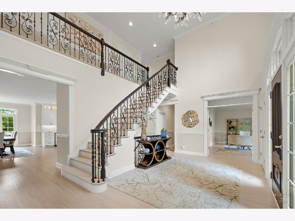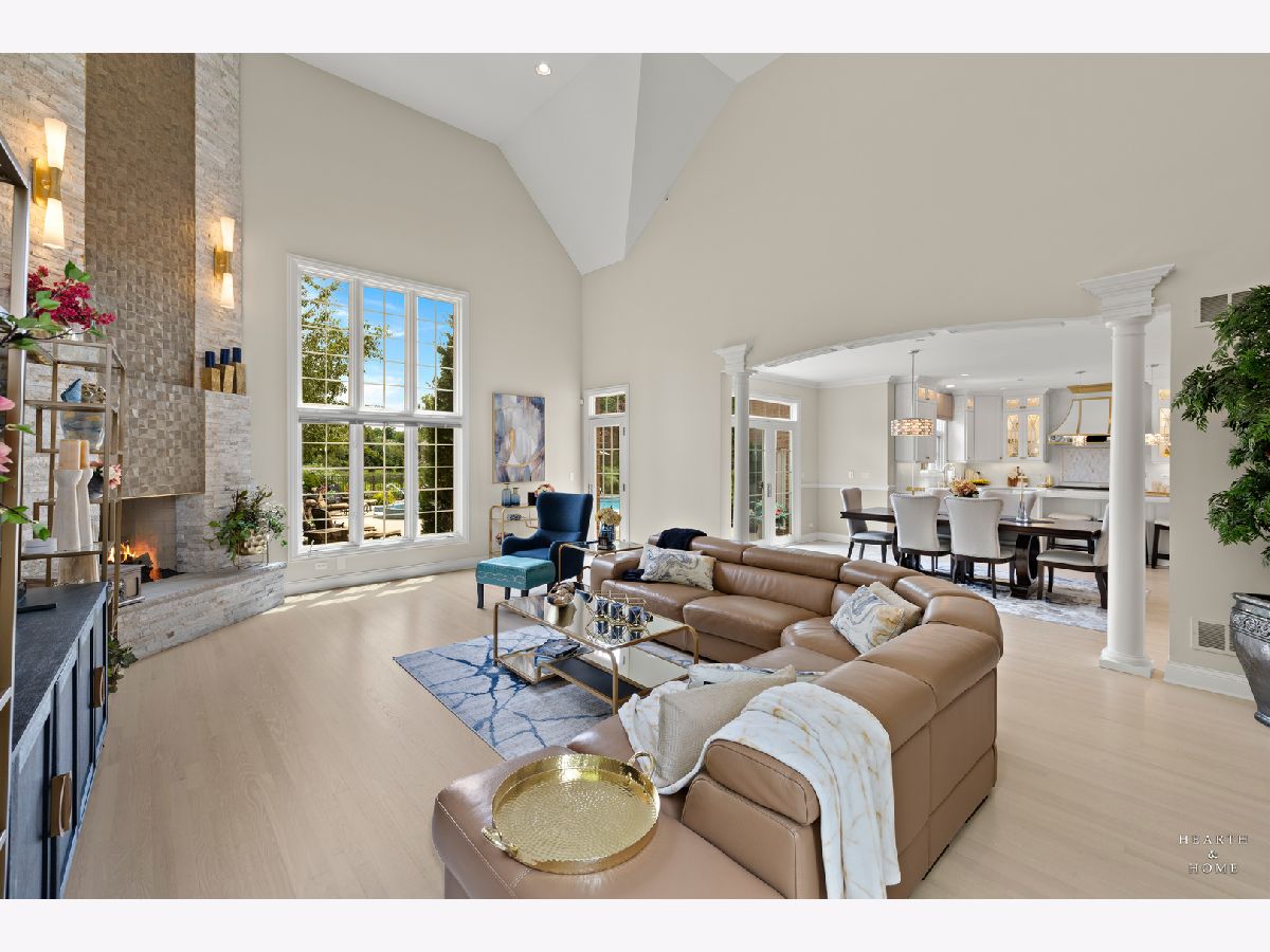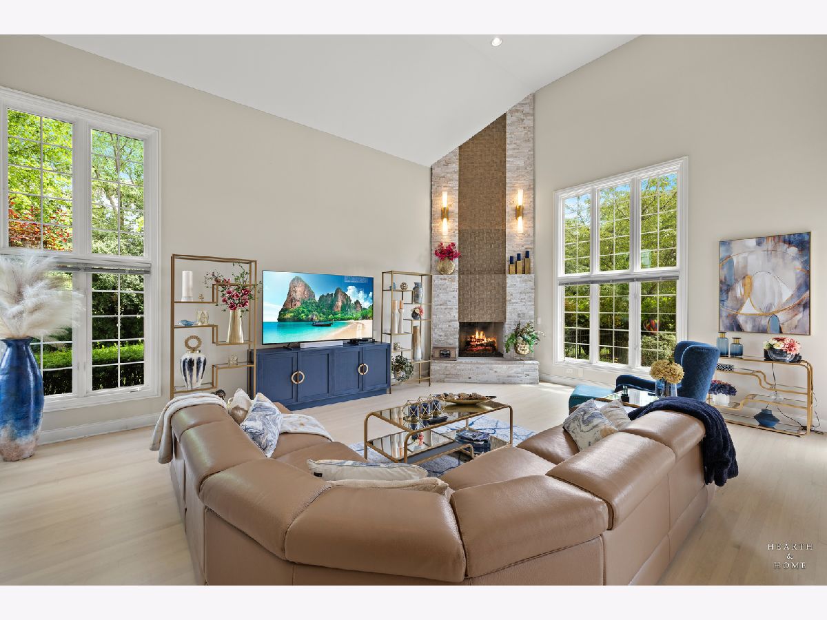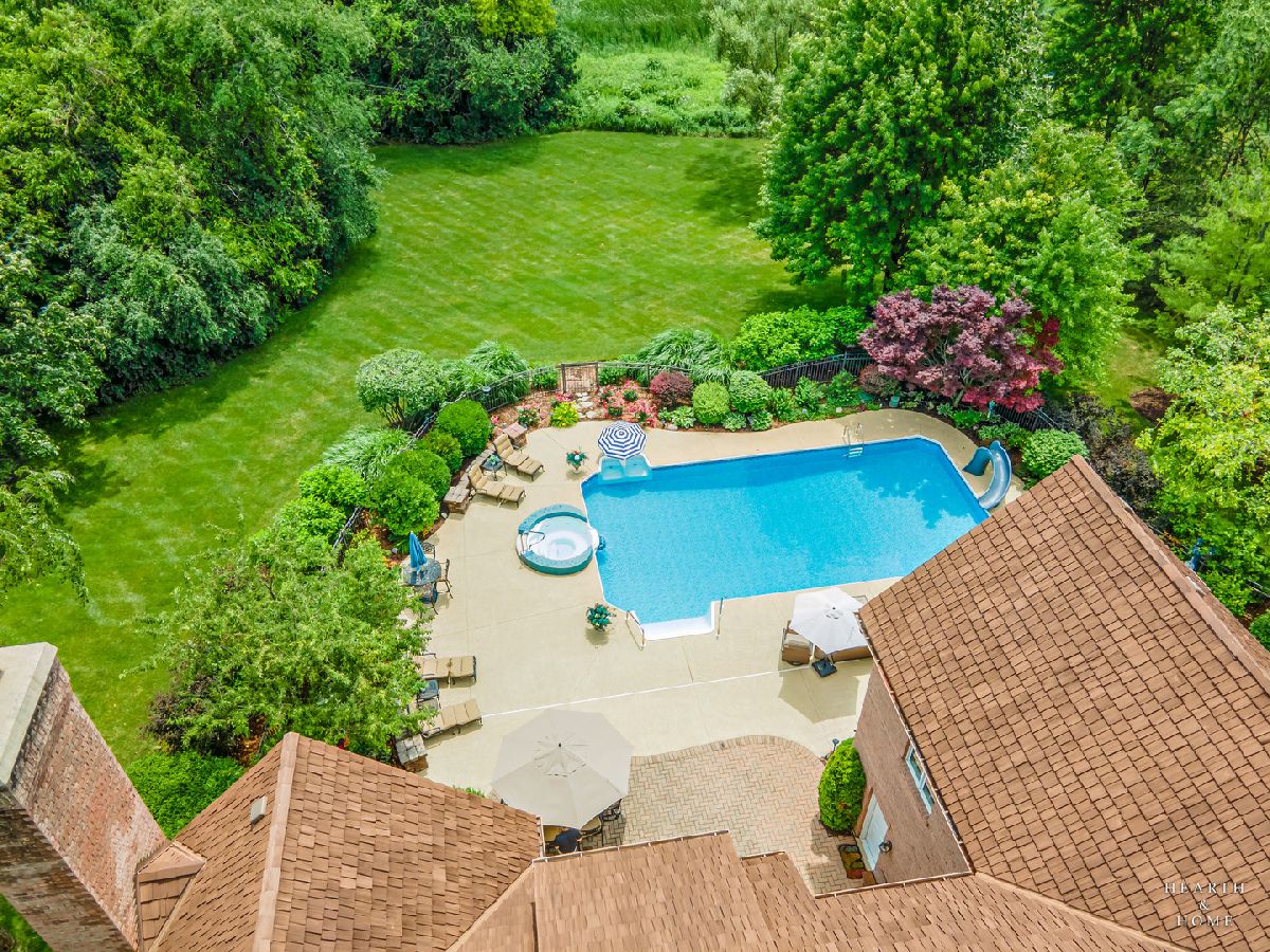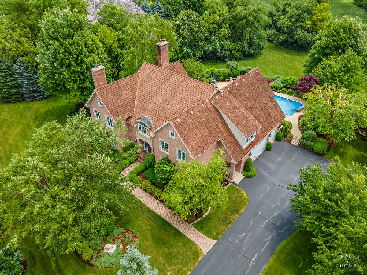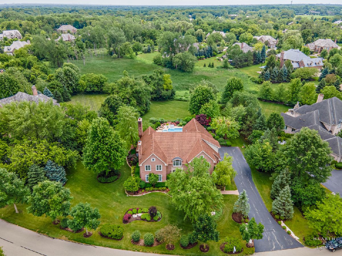 Simply sublime backyard pool retreat and elegant decor and finishes throughout make this gorgeous 6 bedroom home in the prestigious Prairie Trails neighborhood truly special. Relax in your own slice of paradise nestled on an acre of tranquil privacy, featuring an in-ground pool with jetted spa enclosed by a concrete and brick paver patio. The pool includes a new liner, cleaner, motor, and heater. This stunning home makes a great first impression with a grand 2 story foyer with crystal chandelier and beckons you into the great open floor plan. A brand new gourmet kitchen is highlighted by quartz countertops, custom milled cabinet doors, custom refrigerators doors, custom faucet, custom cabinet hardware, and exquisite high end appliances - including Subzero column refrigerator & freezer, Shaw sink, Waterstone faucet & handles, custom designed hood by Custom Copper Hoods matches the faucet and hardware, U-line beverage center, GE Profile Advantium wall oven with microwave, and GE Monogram warming drawer. Huge eating area with access to the patio, plus a spacious formal dining room. Unwind in the inviting family room with tons of natural light, beautiful backyard views, and soaring custom fireplace hearth. Tons of thoughtful touches throughout including crown molding, wainscotting, French doors, wrought iron spindled staircase, and all hardwood floors recently refinished. First level also offers a living room with marble fireplace and a large home office. Primary bedroom suite features a dramatic tray ceiling with recessed lighting and crystal chandelier, a spacious dressing room with organizer system, and main bathroom with dual granite vanities, soaking tub, and a glass shower. New wood floors throughout the upper level, where you will find four more spacious secondary bedrooms. The brand new finished basement features a large rec area, 6th bedroom, full bathroom, fireplace, and tons of storage space. Convenient whole home central vac as well. Professional landscaping nourished by in-ground sprinkler system with views of nearby protected nature conservancy, plus a 50+ year cedar roof that has been expertly maintained, put the perfect finishing touches on this rarified home, all within sought after Stevenson High School boundaries. Assessment includes common area maintenance AND water with city sewer and water!