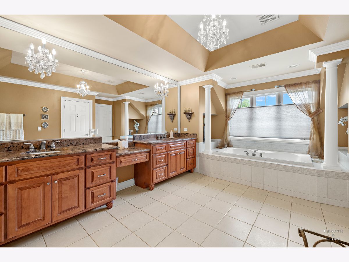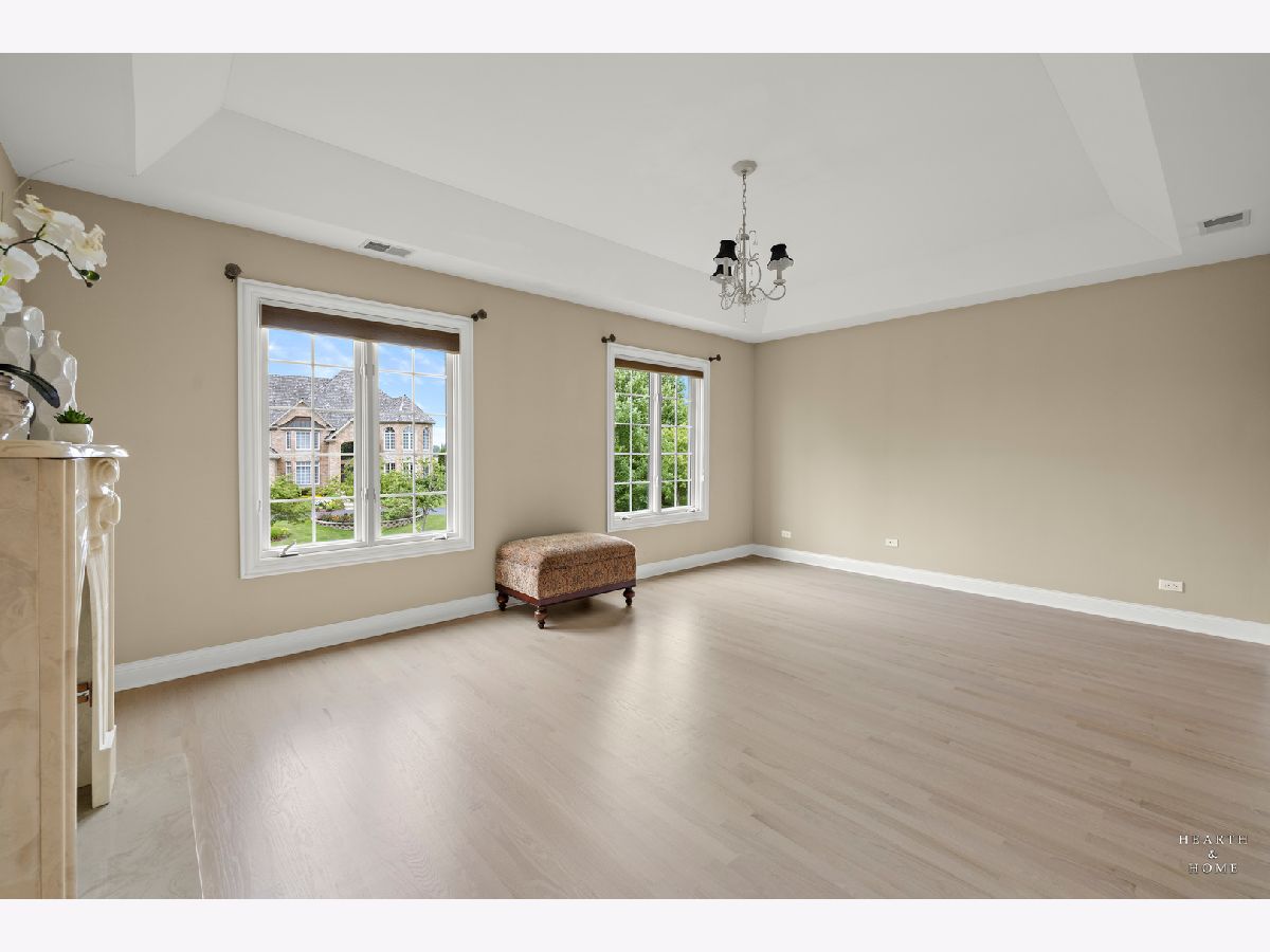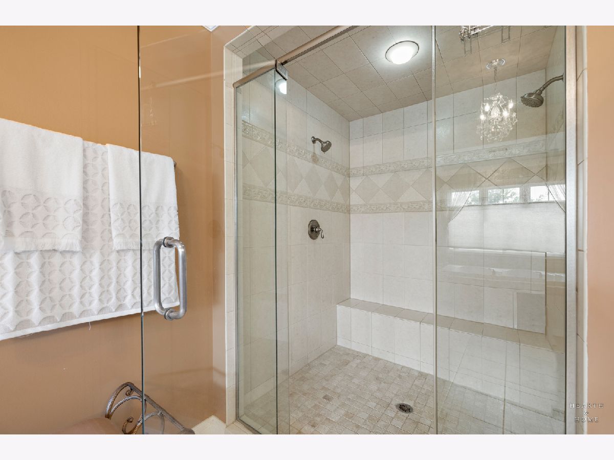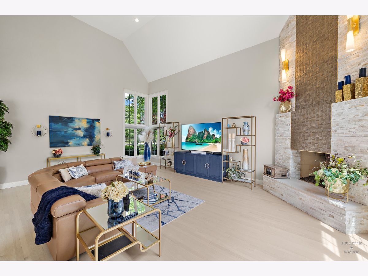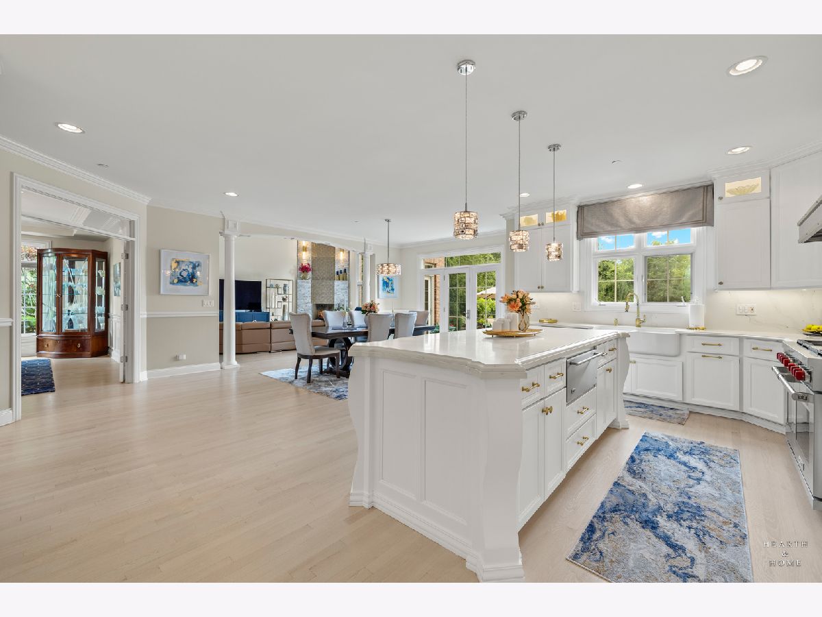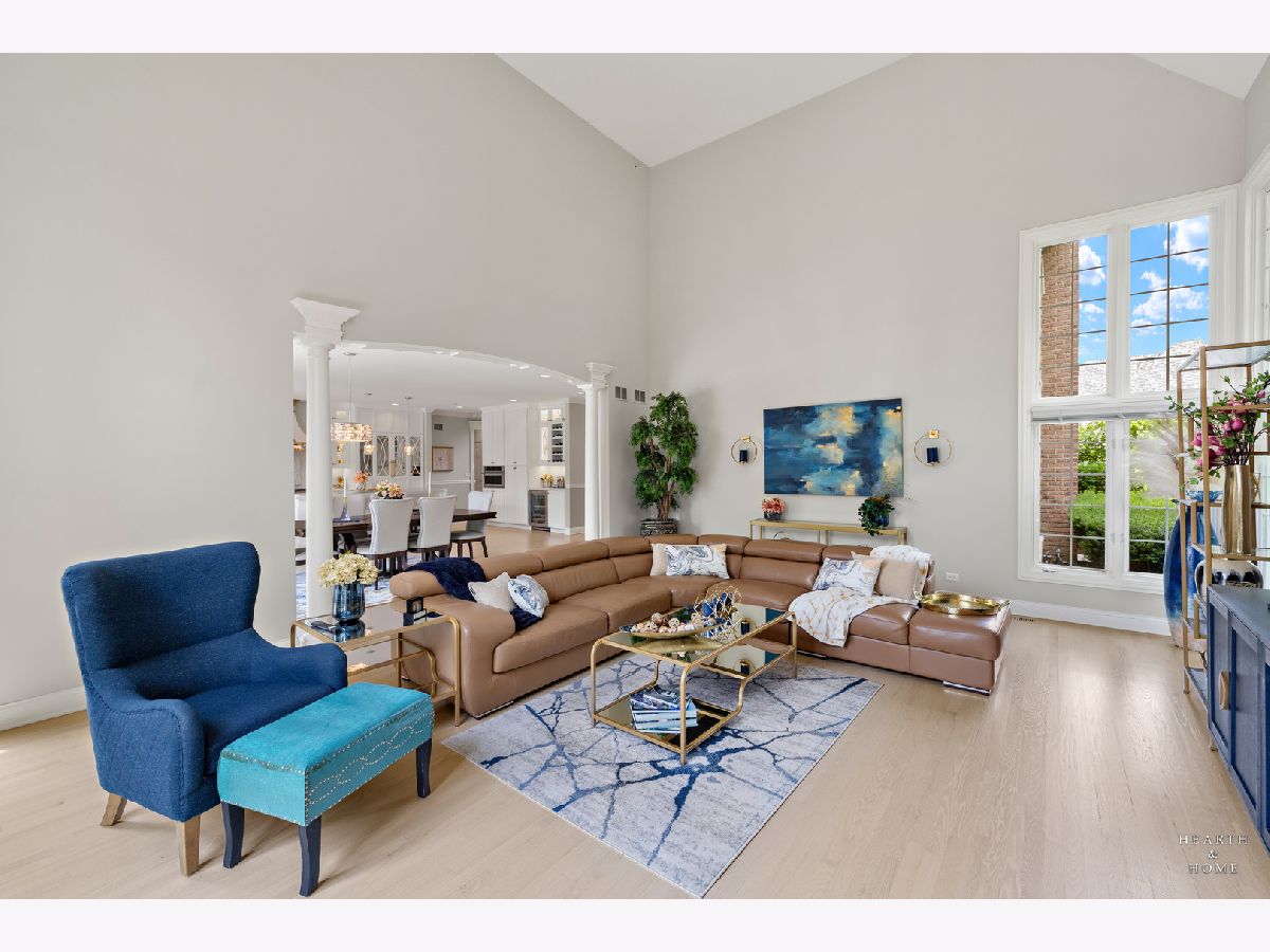 Simply sublime backyard pool retreat and elegant decor and finishes throughout make this gorgeous 6 bedroom home in the prestigious Prairie Trails neighborhood truly special. Relax in your own slice of paradise nestled on an acre of tranquil privacy, featuring an in-ground pool with jetted spa enclosed by a concrete and brick paver patio. The pool includes a new liner, cleaner, motor, and heater. This stunning home makes a great first impression with a grand 2 story foyer with crystal chandelier and beckons you into the great open floor plan. A brand new gourmet kitchen is highlighted by quartz countertops, custom milled cabinet doors, custom refrigerators doors, custom faucet, custom cabinet hardware, and exquisite high end appliances - including Subzero column refrigerator & freezer, Shaw sink, Waterstone faucet & handles, custom designed hood by Custom Copper Hoods matches the faucet and hardware, U-line beverage center, GE Profile Advantium wall oven with microwave, and GE Monogram warming drawer. Huge eating area with access to the patio, plus a spacious formal dining room. Unwind in the inviting family room with tons of natural light, beautiful backyard views, and soaring custom fireplace hearth. Tons of thoughtful touches throughout including crown molding, wainscotting, French doors, wrought iron spindled staircase, and all hardwood floors recently refinished. First level also offers a living room with marble fireplace and a large home office. Primary bedroom suite features a dramatic tray ceiling with recessed lighting and crystal chandelier, a spacious dressing room with organizer system, and main bathroom with dual granite vanities, soaking tub, and a glass shower. New wood floors throughout the upper level, where you will find four more spacious secondary bedrooms. The brand new finished basement features a large rec area, 6th bedroom, full bathroom, fireplace, and tons of storage space. Convenient whole home central vac as well. Professional landscaping nourished by in-ground sprinkler system with views of nearby protected nature conservancy, plus a 50+ year cedar roof that has been expertly maintained, put the perfect finishing touches on this rarified home, all within sought after Stevenson High School boundaries. Assessment includes common area maintenance AND water with city sewer and water!