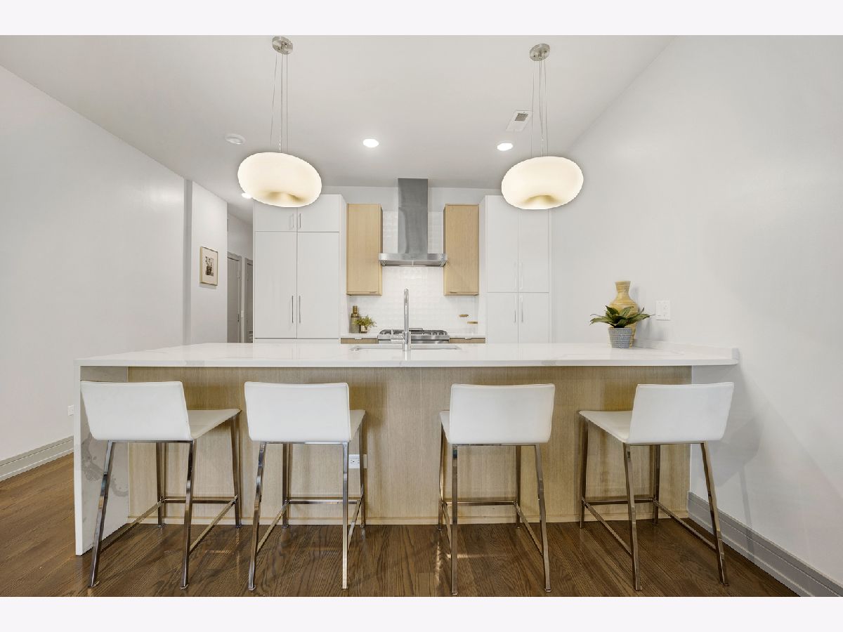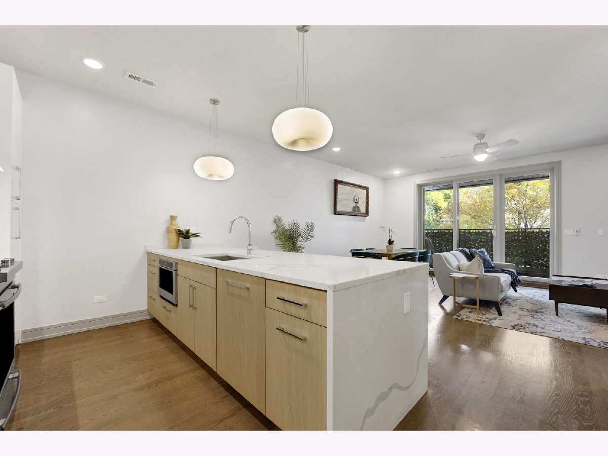 Discover your dream home in this stunning 3-bedroom, 2-bathroom condo in the heart of Lincoln Square! With modern living space, this 2018-built gem offers in-demand finishes throughout. Step into the open-concept living and dining area, perfect for entertaining or relaxing after a long day. The gourmet kitchen is a chef's delight, featuring a massive quartz waterfall breakfast bar and high-end appliances, including a Liebherr refrigerator and Jenn-Air dishwasher! Retreat to the spacious primary bedroom, complete with a custom walk-in closet and a luxurious en-suite bathroom. Indulge in the soaking tub, double sinks, and full-body spray shower for the ultimate spa-like experience. Two additional versatile bedrooms and another full bath complete the thoughtful layout. Enjoy the best of indoor-outdoor living with a private front balcony, a covered back deck with curtains, and your own private rooftop deck - perfect for summer barbecues or stargazing nights! Upgraded windows and soundproofing insulation ensure peace and quiet in your urban oasis. Conveniently located just one block from the Western bus, two blocks from the Lawrence bus, and three blocks from the Western Brown Line station. A short stroll takes you to the expansive 22-acre Winnemac Park, ideal for outdoor enthusiasts. Foodies will appreciate the proximity to Lincoln Square's diverse dining scene, while shoppers can easily access Mariano's, HarvesTime Foods, and Tony's Fresh Market. With one garage parking spot included, this modern condo offers the perfect blend of style, comfort, and urban convenience. Don't miss your chance to call this Lincoln Square treasure home - schedule your showing today!