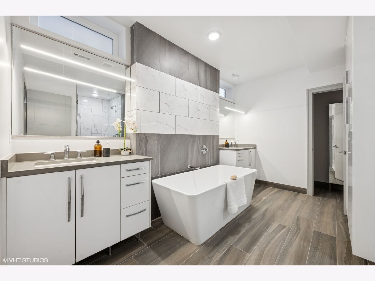 Beautifully appointed and graciously sized 3 bedroom, 2.1 bath, 1868 SQFT duplex down in the heart of Lincoln Square! This unit is NOT on Western - it has a separate entrance and faces west with 2 private terrace spaces off the kitchen and living space. Hardwood flooring throughout the main level. Kitchen with custom cabinetry with quartz countertops, Jenn-Air range/oven and dishwasher, commercial grade hood, and Liebherr fridge. Three bedrooms all located on the lower level, which features heated wood grain porcelain floors. Primary suite has custom closets and sleek and modern ensuite bath with private water closet, dual vanity, soaking tub, and shower with body sprays. Two spacious bedrooms share a full hallway bath. A laundry room completes the space on the lower level. 2.5 blocks to Brown line; steps to the Square for shopping, dining, and entertainment. 1 covered parking space included.