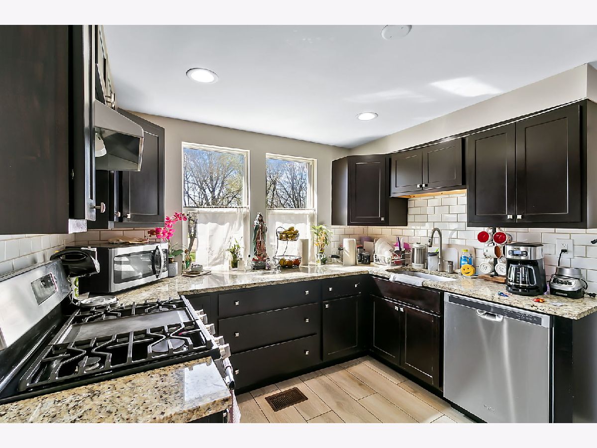 Let the sunshine in!!! Across the street from park this recently updated corner home has tons of natural light, formal dining room, hardwood floors and potential in-law in basement. Living room combined with formal dining area, kitchen and Two bedrooms on first level w/ bonus heated enclosed sunny back porch; Lovely wood cabinet kitchen w/ granite counter tops and stainless-steel appliances. Family room, two bedrooms and bath in basement with separate entrance to yard is potential in-law space. Fenced yard. 2 car garage built in 2023. Home across street from La Follette Park with field house and indoor swimming pool. Shopping and transportation nearby.