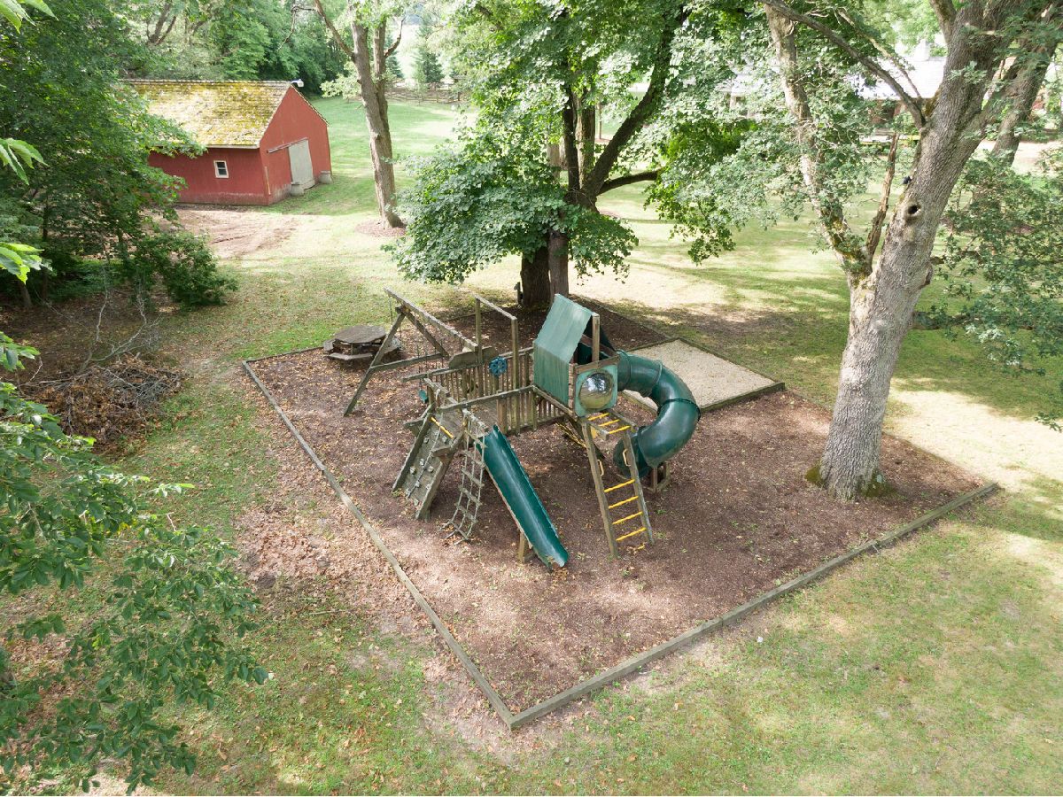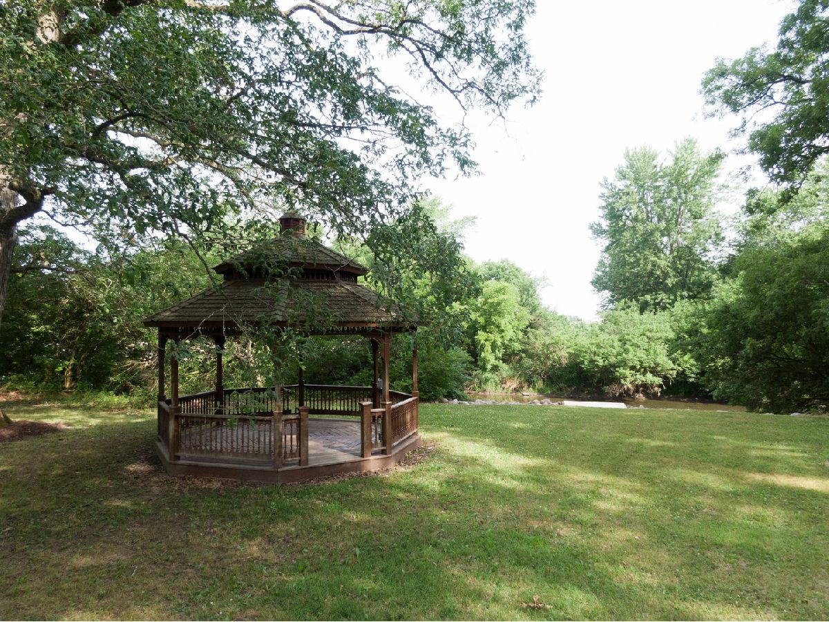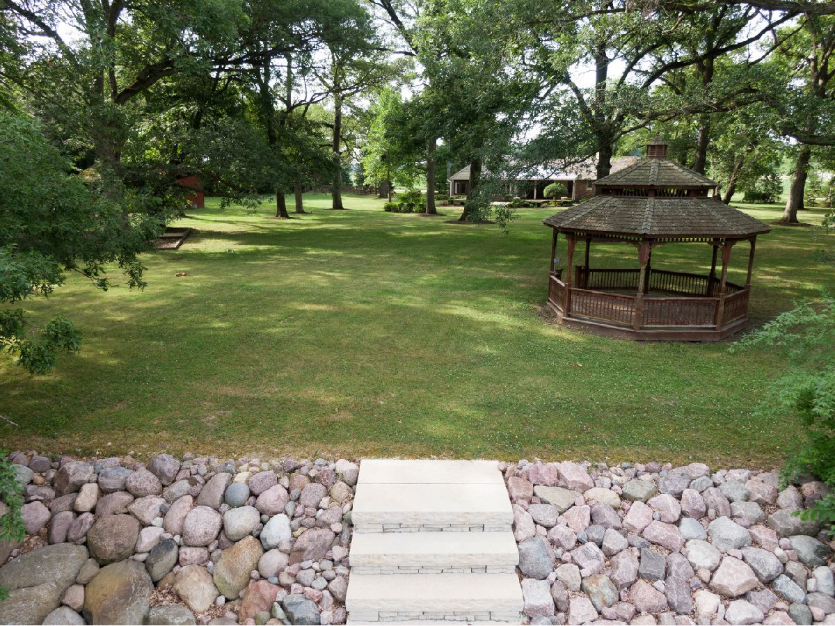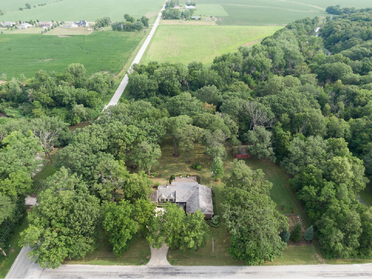 Located across from the Kankakee State Park, this custom, water front property is truly a must see. Sprawling entertaining spaces flow outside to the outdoor covered porch and 900 square foot, stone paver patio with corner fire pit. Beautiful hardwood floors and plenty of natural light flow throughout the home's open, airy layout. Greeted with a covered front porch entrance, you are invited into a formal foyer, and formal dining room. The dining room features a beautiful brick, high efficiency, wood burning fireplace. The generous kitchen features hardwood flooring. a large island and ample cabinet space. The sun room off the kitchen is a lovely space for enjoying your morning coffee and taking in the beautiful landscape surrounding. The expansive living room is great for hosting family gatherings. You will find 3 bedrooms on the East side of the home. The primary suite features floor to ceiling windows including backyard access via french doors, 3 closets. Primary bathroom is newly remodel with a custom vanity, and a Jacuzzi tub. Additionally you will find 2 nice sized bedrooms, all with ample closet space and built in organization systems. Fantastic full bathroom off the bedrooms. On the West side of the home you will find two more additional bedrooms, and a 3rd full bathroom with steam shower and air bath. The west end of the home was designed for a possible, future related living situation....perfect for home office. Off the kitchen you will find a laundry room, mudroom that opens to the backyard, and access to the full unfinished basement. As you sit outside on your covered porch you will enjoy the tranquility of the property. Mature trees throughout the 5 acres offer ample shade. Gazebo, adjacent to the water front stone landing with steps for access to Rock Creek. Great for canoeing, kayaking, paddle boarding, floating and fishing. Large 32 x 28 outdoor barn and a limited number of horses and/or livestock are permitted in this property's zoning. Heavily wooded, back acreage offers desirable private, hunting opportunities. Fenced in garden area with raised beds. This unique property offers the best of both worlds, country living, only being 8 minutes from Bourbonnias and 1 hour from Chicago. The State Park includes hiking and horse-back riding trails. Expansive Rainbow Playground is staying.