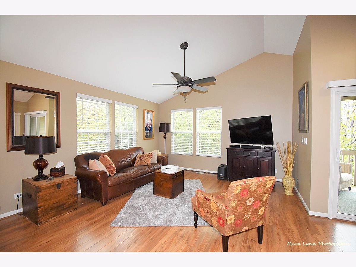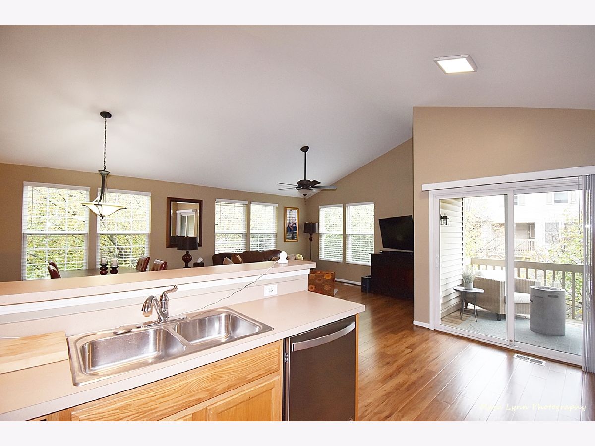 Move right in and enjoy this pristine and hard to find end-unit with large front porch and plenty of yard space! Vaulted ceilings and open floorplan, newly painted, plus an abundance of natural light and NEW laminated hardwood flooring throughtout. Inviting family room and dining room areas and kitchen with all NEW stainless steel appliances, breakfast bar and large panty. Balcony provides added space with plenty of room for patio furniture! Huge 1st floor master suite with large walk-in closet, private bath and office nook plus 2 decently sized additional bedrooms and/or office space in lower level with 2nd full bath. NEW oversized ceramic tile flooring in all bathrooms, separate laundry area, additional storage and large 2-car attached garage. Assessment includes water. Highly rated Dist. 204 Naperville schools, close to shopping, restaurants and not far from I-88, downtown Naperville and train. Terrific home and location!!