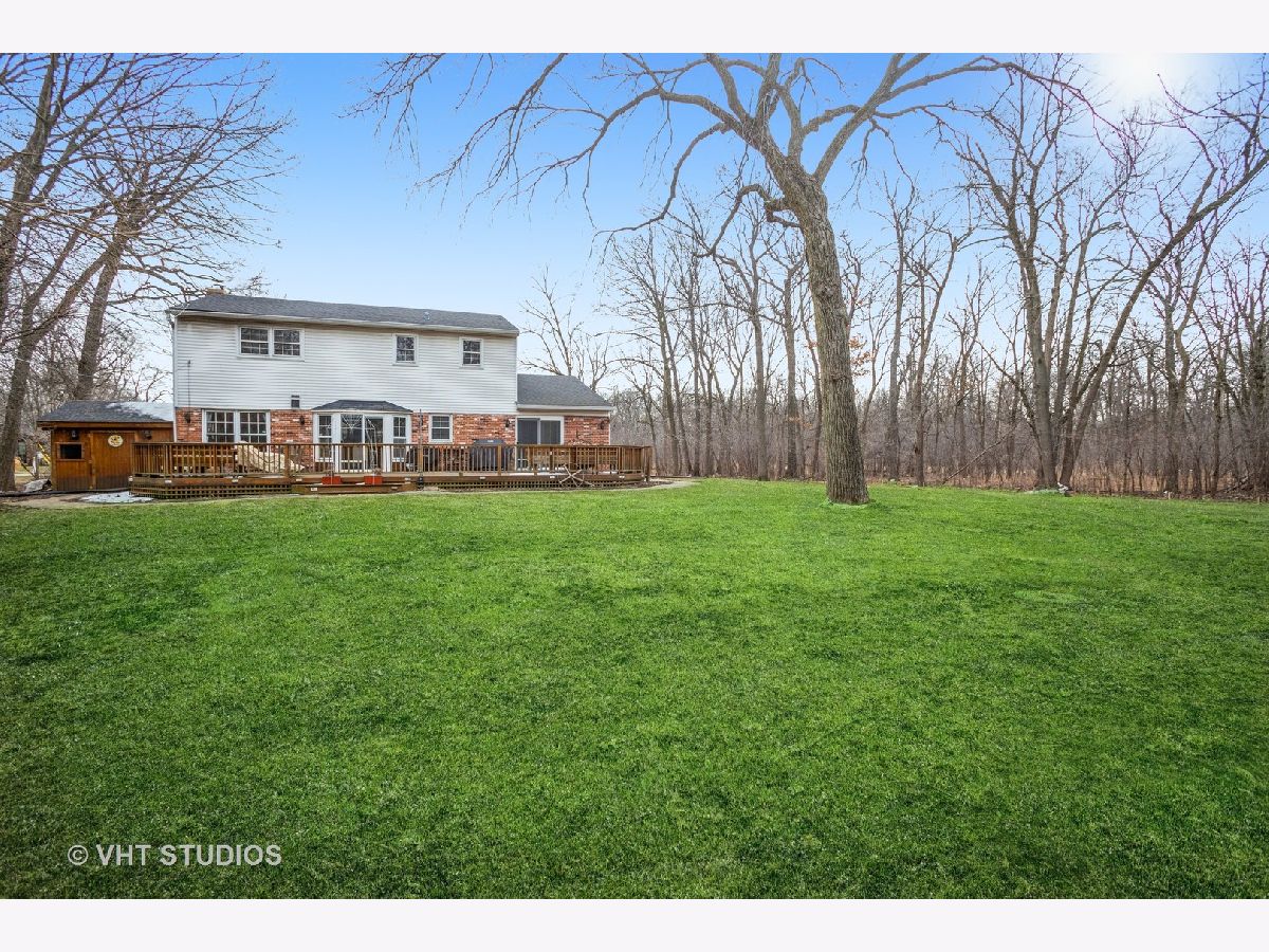 This four bedroom, two and one-half bath Colonial is situated on a very large (20,000sf) secluded lot which abuts the forest preserve to the south. There is a spacious deck with built-in seating and wood table. 2-car attached garage, family room, living room with wood burning fireplace, two large sheds, and covered front porch. Central air, newly refinished hardwood floors, primary bath, and full unfinished basement. Newer alarm system, sump pump, and washer. All four bedrooms are a good size with ample closets. Washer/dryer set up in southeast bedroom in closet area. Real estate taxes are $6,903 (senior exemption). Inclusions: two refrigerators, washer and dryer, kitchen island buffet, all window treatments, fireplace screen, wood deck table, metal shelving in basement, John Deere rider tractor in west shed. Exclusions: deck firepit with ornate cover, entryway light fixture, some hardscape stone by rear firepit and front yard. THIS HOME IS BEING SOLD "AS IS"
