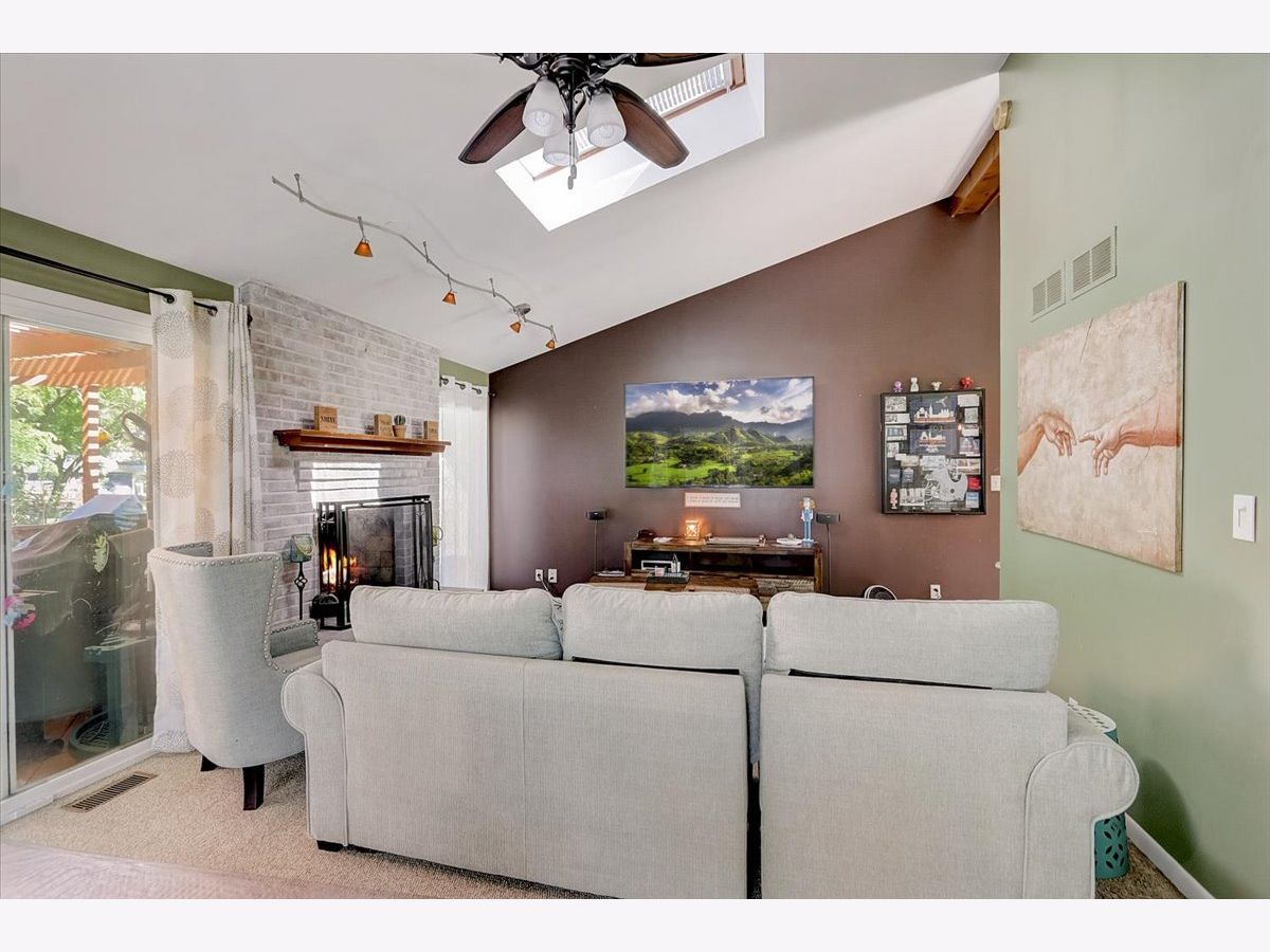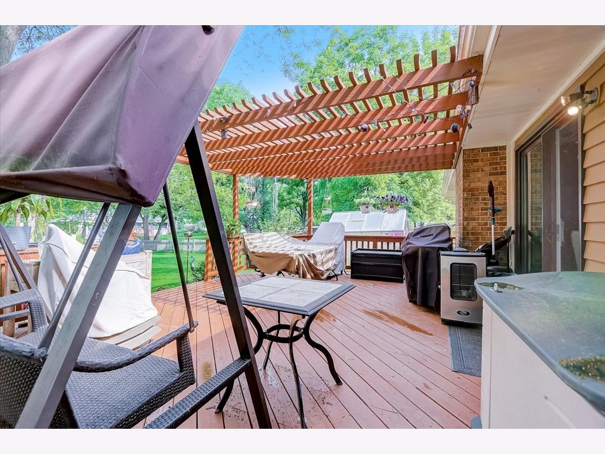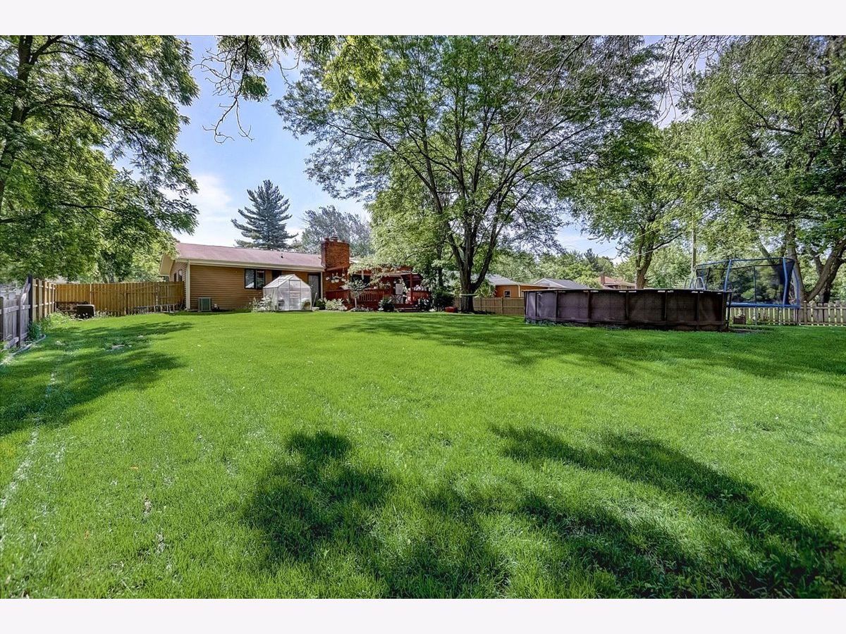 Welcome home to your charming and well-maintained 3BR, 2.5 Bathroom ranch home oasis set on a deep, nearly half-acre lot with mature trees. The home welcomes you as you pull up with updated landscaping all around, trees and front walk. Entering the home, the kitchen boasts SS appliances and sink, kitchen island, and plenty of white cabinetry for ample storage. Cozy up by the fireplace in the large living/dining room combo that also offers vaulted ceilings, skylights and plenty of sunshine. Head down the hall to find 3 generously sized BRs and 2 full bathrooms including the primary bedroom with double closets and a private, updated primary bathroom that features dual sinks with Kohler faucets and step-in shower with seat and multiple shower heads. The full basement offers ample room for additional living and storage space, half-bath, and a perfect room for a 4th bedroom. The pool table, cover and cues stay with the home. Get ready for a great summer under the pergola on your large deck that gives you a prime view of your own personal oasis. The pool and trampoline are staying to give you a head start on your summer plans! Roof (2012), Furnace (2015), AC condenser (2015), Water heater (2017), Windows and appliances (2019). So close to schools, shopping, entertainment, parks, IL Prairie Path, Metra, expressways and more!