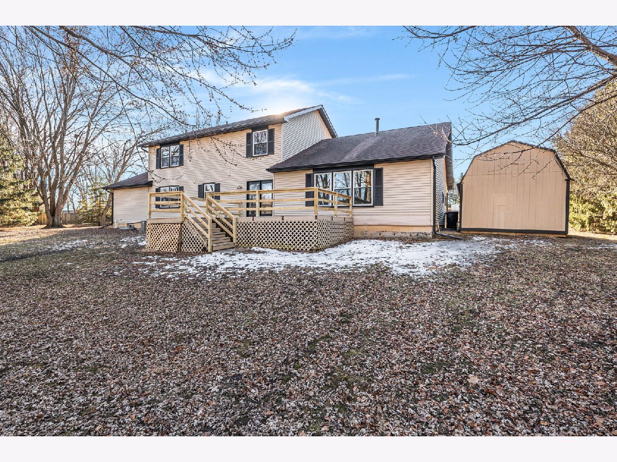 Welcome to this move-in ready home in Elburn, featuring beautiful updates and plenty of space for your family! This spacious 5-bedroom, 3.5-bath home includes an unfinished basement, offering endless potential to expand and add your personal touch. Upon entering, you'll be captivated by the natural light, hardwood floors, and fresh paint throughout. The open-concept kitchen boasts custom cabinets, quartz countertops, and stainless steel appliances, perfect for both cooking and entertaining. A nearby dining room and a large living room overlooking the backyard provide the ideal spaces for family gatherings. The main level also features a versatile in-law suite or main-level master with a full bath and adjacent office. Upstairs, you'll find 4 generously sized bedrooms with brand-new carpet and 2 full baths. Outside, enjoy nearly an acre of land with a large deck, perfect for hosting guests and enjoying summer evenings. There's also a storage shed for your extra belongings and a heated 2-car garage for all your storage needs. Located in a peaceful neighborhood close to schools, parks, and entertainment, this home is a must-see. Book your showing today!