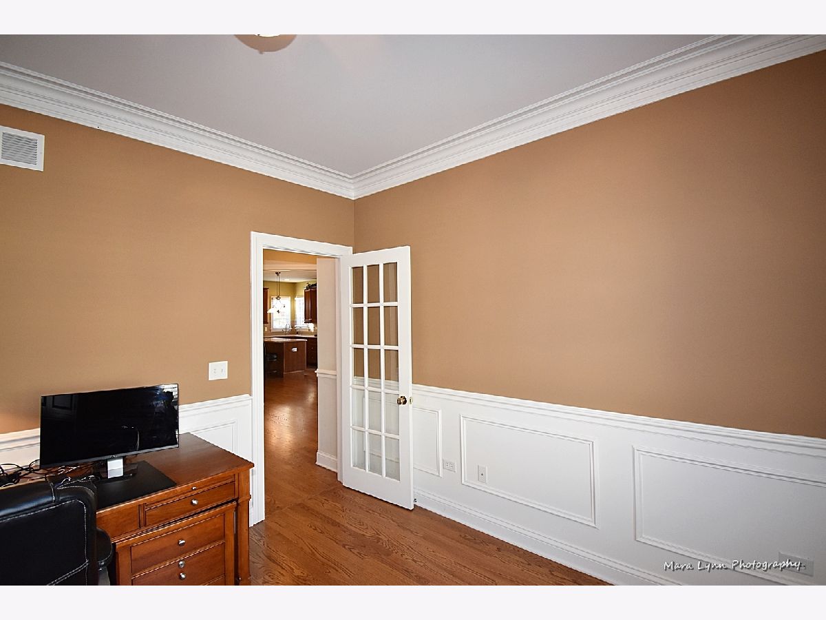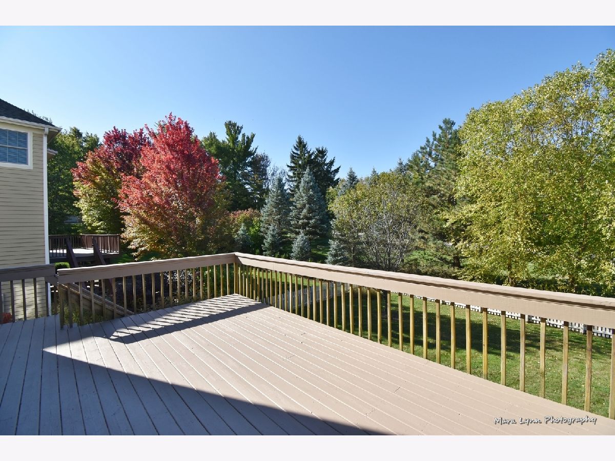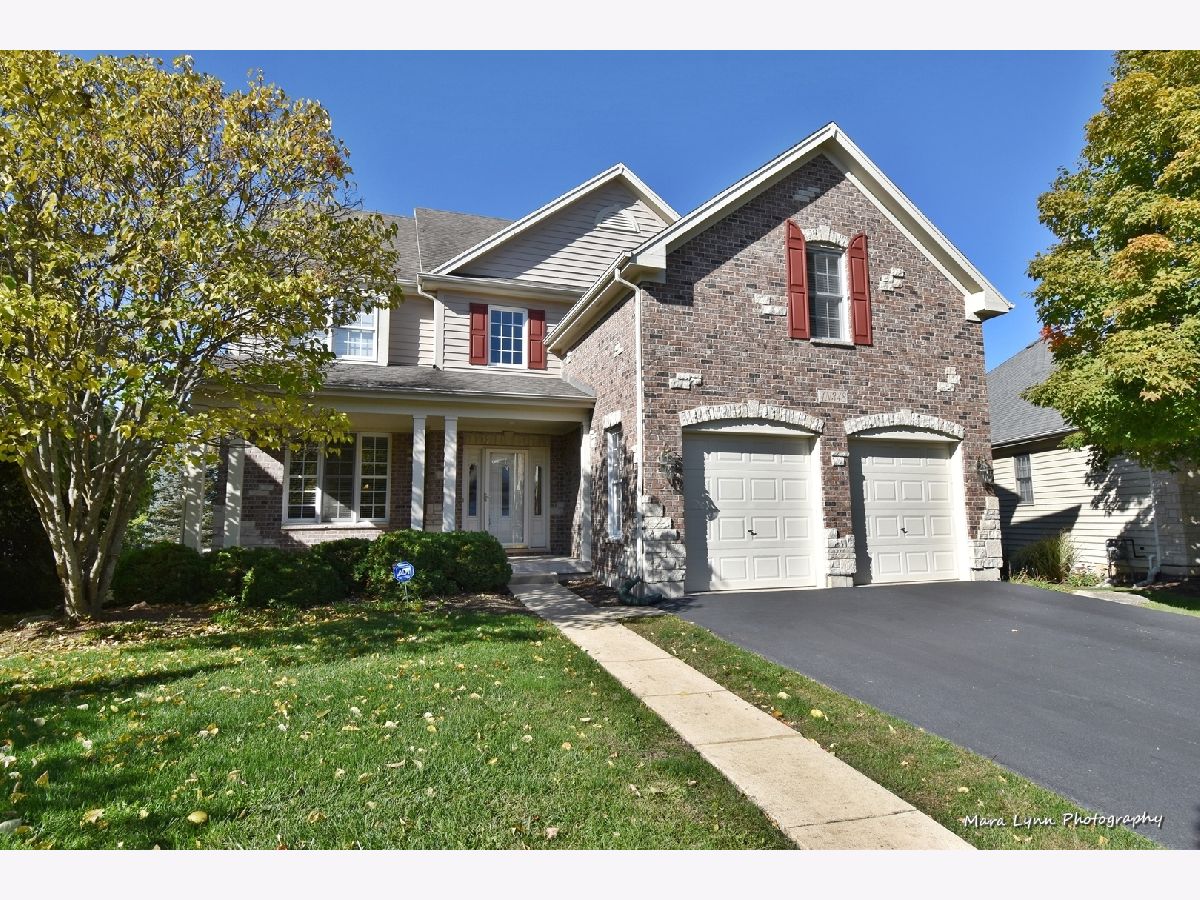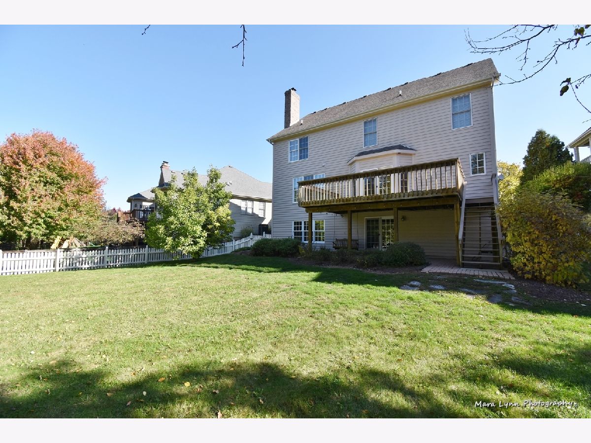 Brick & stone front beauty with finished walk-out basement! Light filled 2-story foyer makes a great first impression. Formal dining room offers crown molding, chair rail, wainscot and extra wide wood cased opening leading to the kitchen. Gourmet kitchen with hardwood floors, 42" cabinetry, solid surface c-tops, center island/breakfast bar and Stainless Steel appliances including a trash compactor! Spacious eating area with bayed slider leads out to large upper deck overlooking deep fenced yard. Family room with hardwood floors, stone fireplace and big picture window. Awesome 1st floor den with custom millwork and French door entry. Beautiful master suite through double door entry with tray ceiling and private luxury bath with his & hers vanities, make-up area, jetted tub and separate shower with glass doors! Bedrooms 2 & 3 share a Jack & Jill bath! Bedroom four and full hall bath complete the 2nd floor. An entertainer's dream awaits you in the finished walk-out basement! Custom bar with granite top, beverage cooler & dishwasher! Gaming space with laminate hardwoods. Media area with corner fireplace and is wired for surround sound! Full bath with huge walk-in shower! There is plenty of space for storage in the unfinished area of basement. The outdoor living space includes a patio with access from basement and a large deck above! Super convenient location is only minutes from the Metra Train Station and the Randall Road shopping corridor. Enjoy all that Fox Mill has to offer, miles of walking trails, community pool and too many parks to mention!