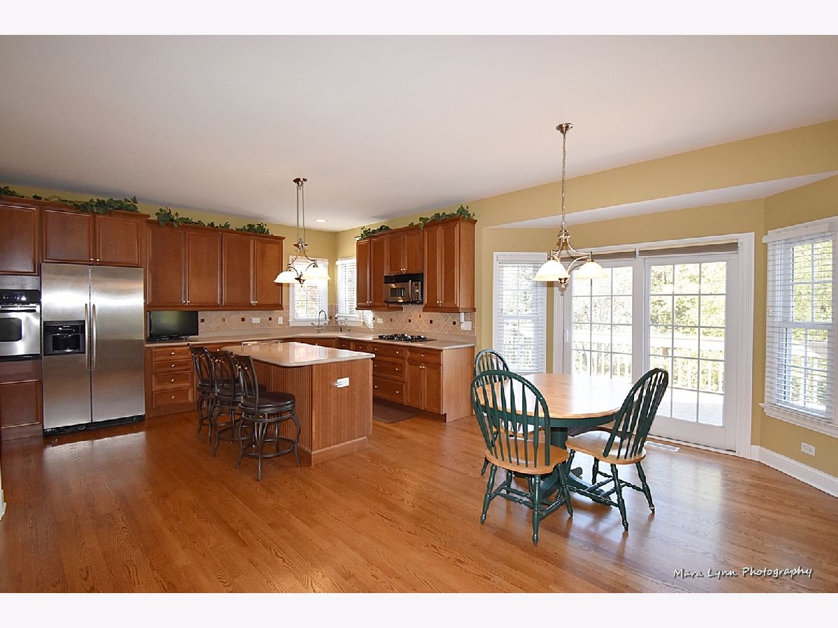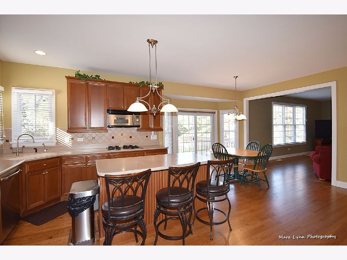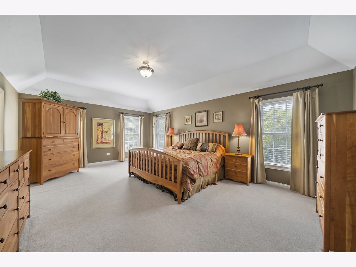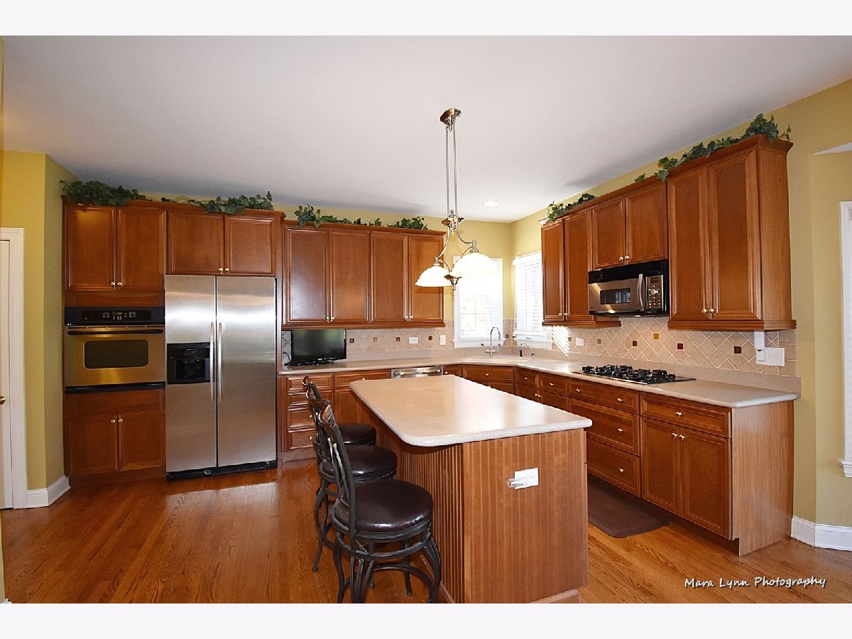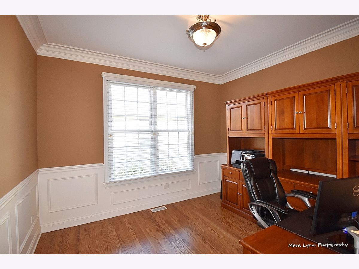 Brick & stone front beauty with finished walk-out basement! Light filled 2-story foyer makes a great first impression. Formal dining room offers crown molding, chair rail, wainscot and extra wide wood cased opening leading to the kitchen. Gourmet kitchen with hardwood floors, 42" cabinetry, solid surface c-tops, center island/breakfast bar and Stainless Steel appliances including a trash compactor! Spacious eating area with bayed slider leads out to large upper deck overlooking deep fenced yard. Family room with hardwood floors, stone fireplace and big picture window. Awesome 1st floor den with custom millwork and French door entry. Beautiful master suite through double door entry with tray ceiling and private luxury bath with his & hers vanities, make-up area, jetted tub and separate shower with glass doors! Bedrooms 2 & 3 share a Jack & Jill bath! Bedroom four and full hall bath complete the 2nd floor. An entertainer's dream awaits you in the finished walk-out basement! Custom bar with granite top, beverage cooler & dishwasher! Gaming space with laminate hardwoods. Media area with corner fireplace and is wired for surround sound! Full bath with huge walk-in shower! There is plenty of space for storage in the unfinished area of basement. The outdoor living space includes a patio with access from basement and a large deck above! Super convenient location is only minutes from the Metra Train Station and the Randall Road shopping corridor. Enjoy all that Fox Mill has to offer, miles of walking trails, community pool and too many parks to mention!