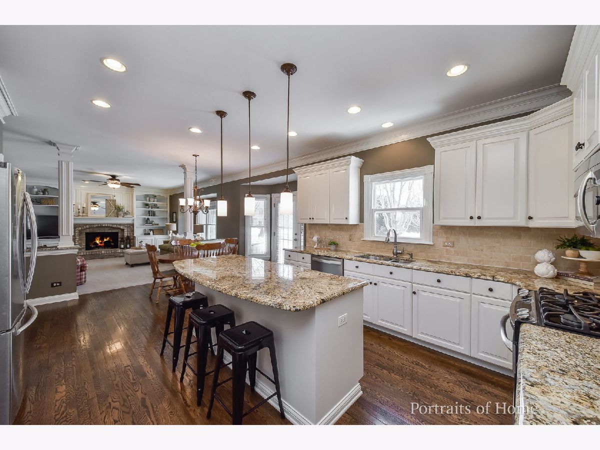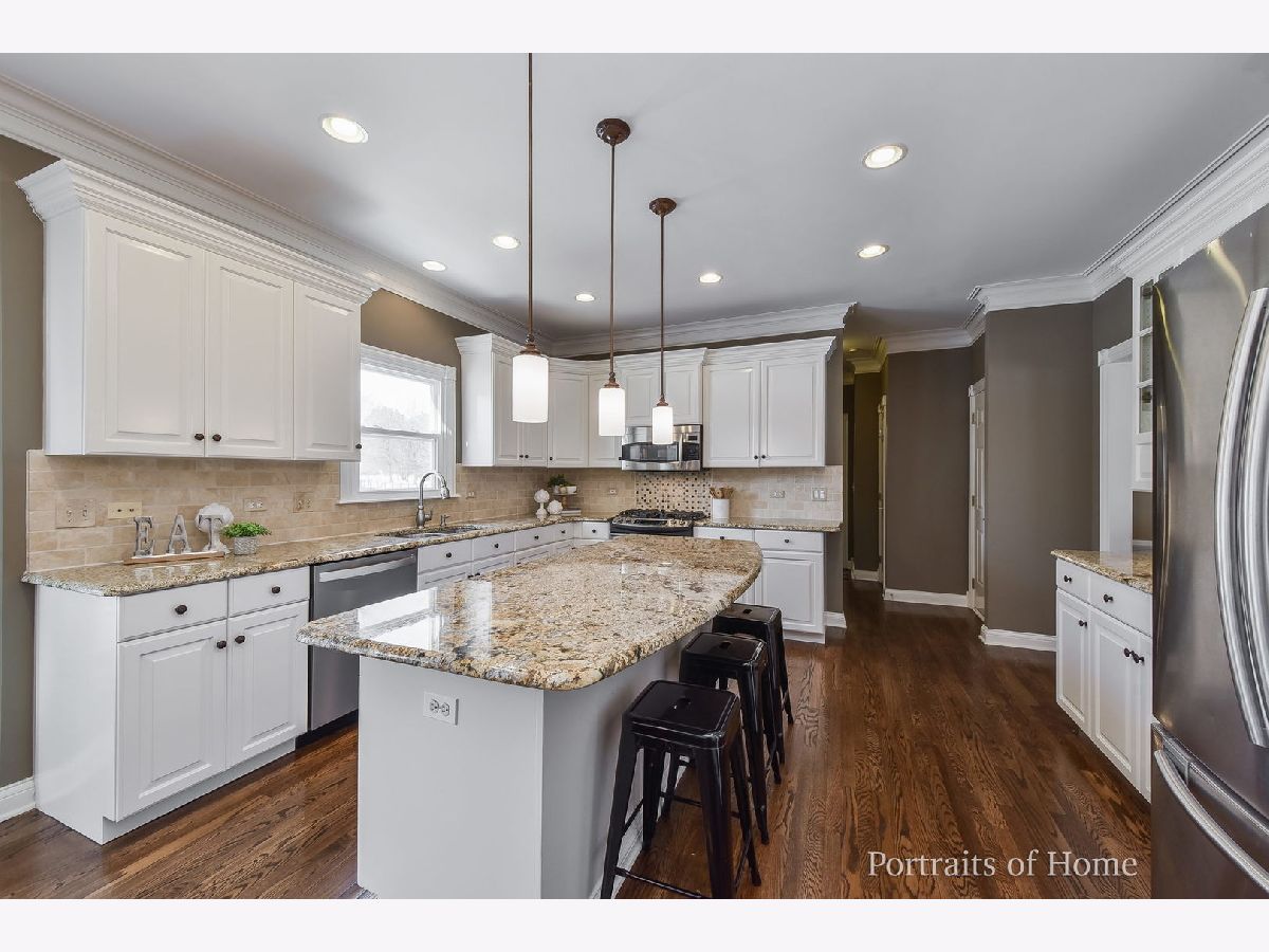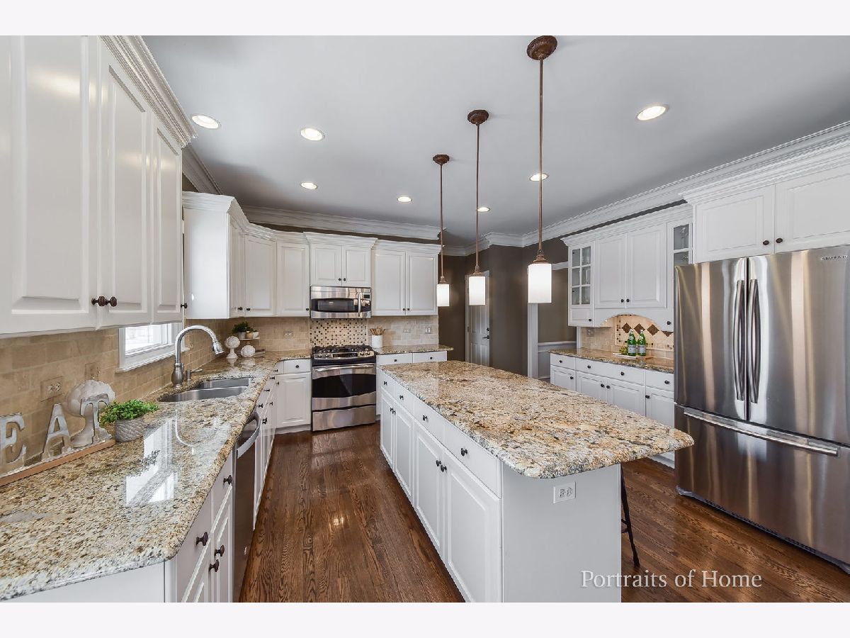SOLD IN PRIVATE NETWORK. New carpet in 2020; new roof in 2018; new windows in 2019; light fixtures and faucets updated; new washing machine 2019; new paver patio in 2018; exterior painted in 2017; new stainless appliances and granite countertops in 2011. Neutral paint color throughout and recently refinished hardwood floors in popular dark finish. 42" white kitchen cabinets and backsplash. First floor half bath and master bath remodeled in 2016. Second floor hall bath updated in 2021. Huge master suite with volume tray ceiling with large walk-in closet. First floor office. Family room with built-in bookshelves. Finished basement with bedroom or second office, full bathroom, bar with beverage refrigerator and large storage room. Three car garage, private cul-de-sac location and 1/2 block from the elementary school.