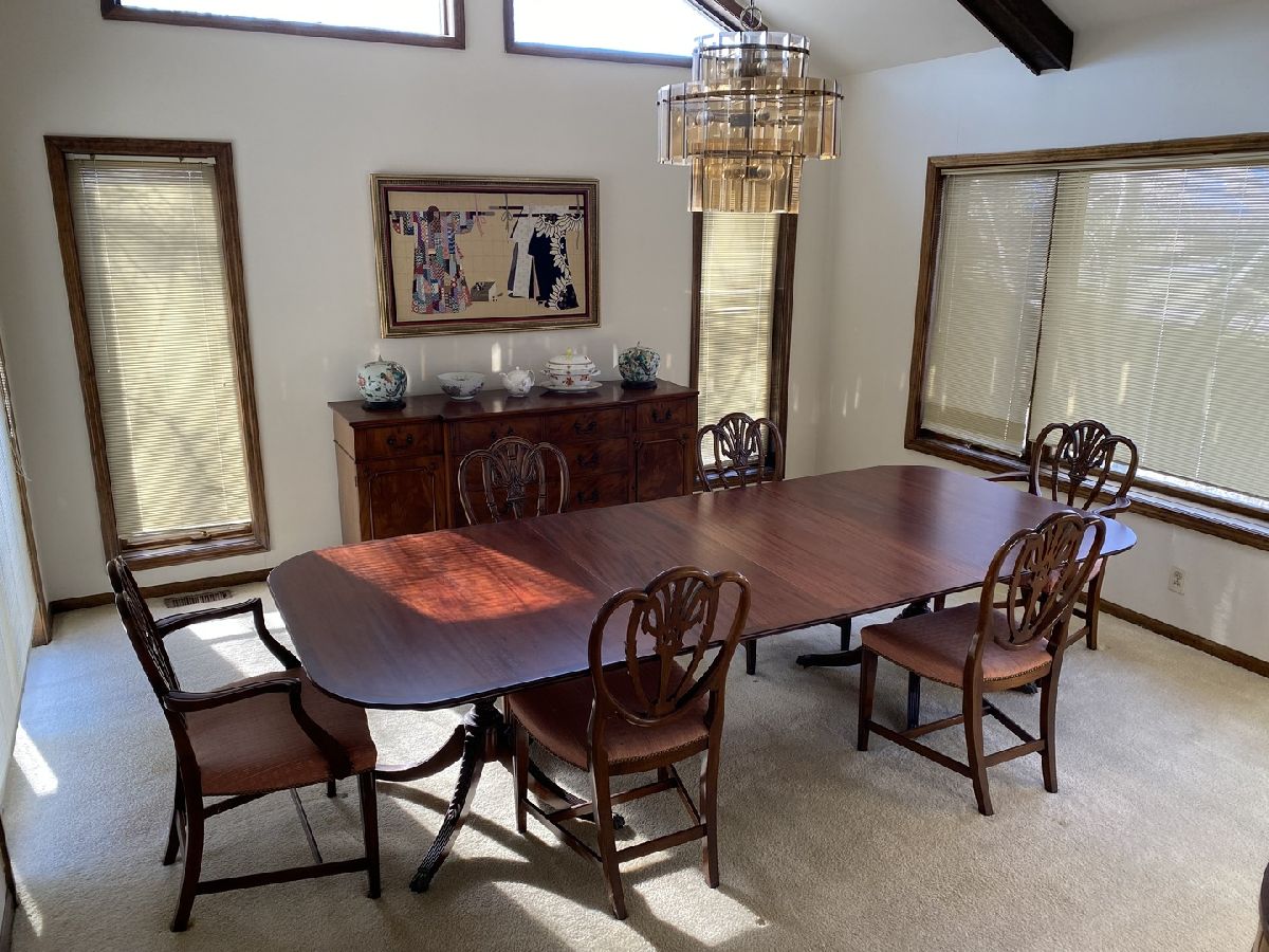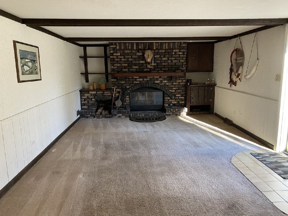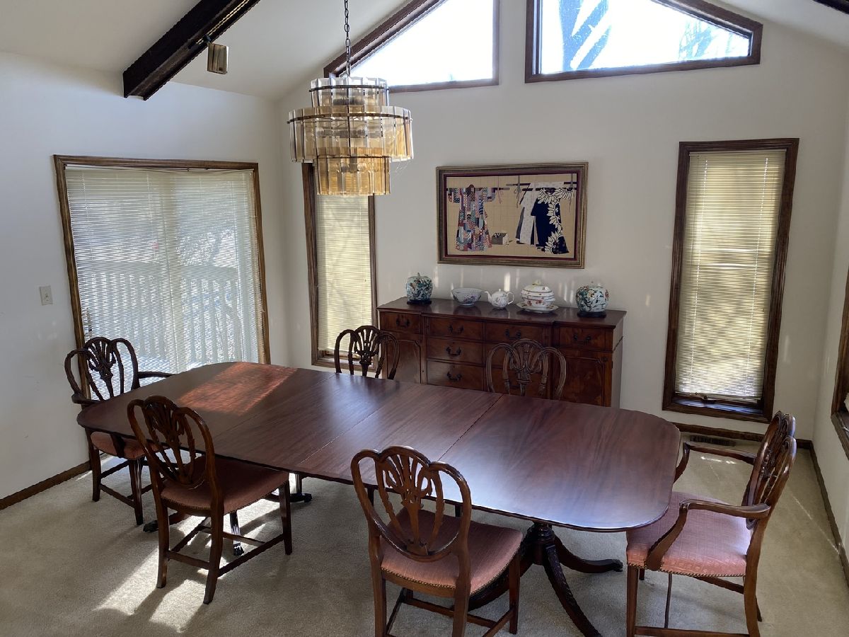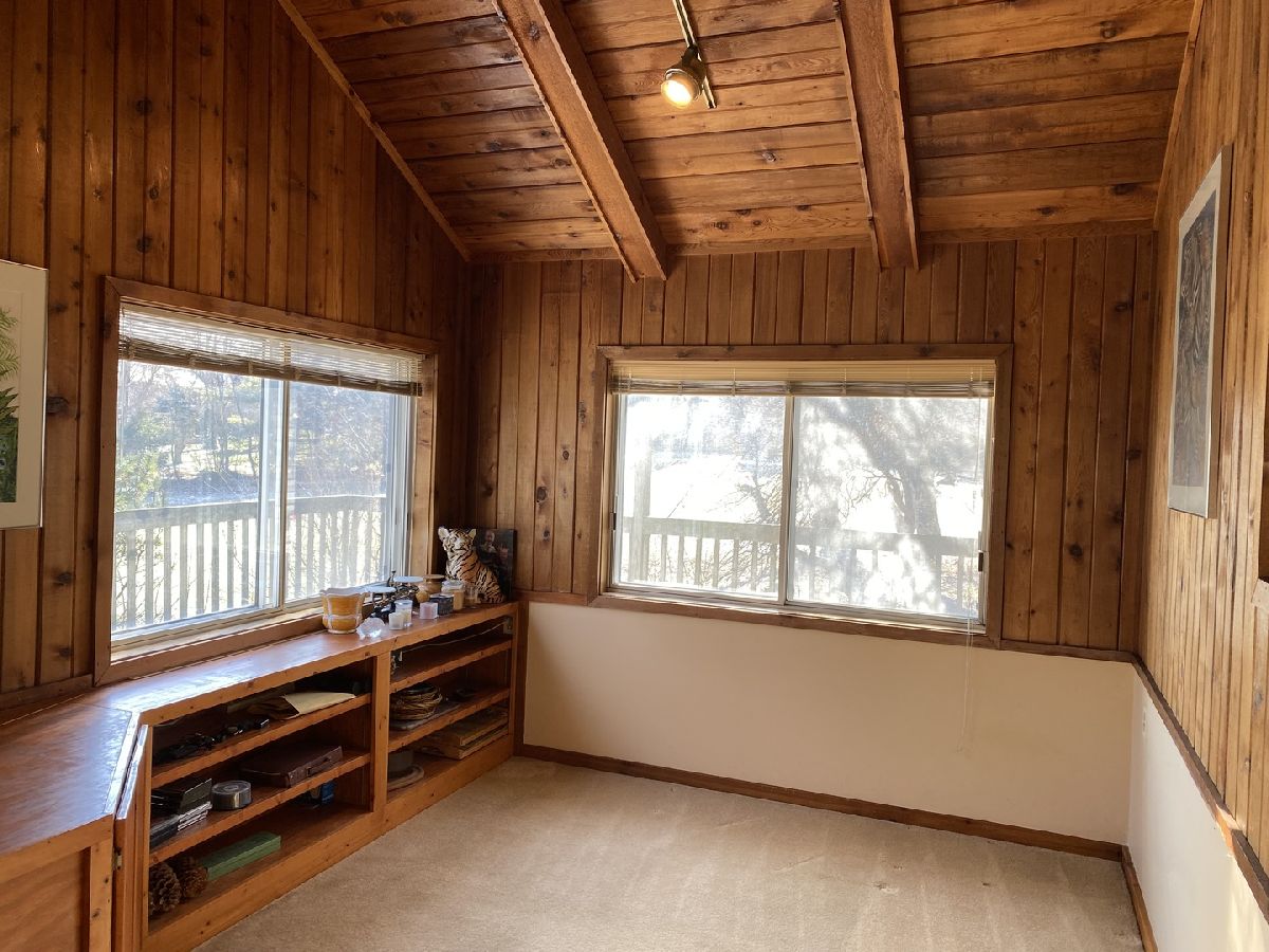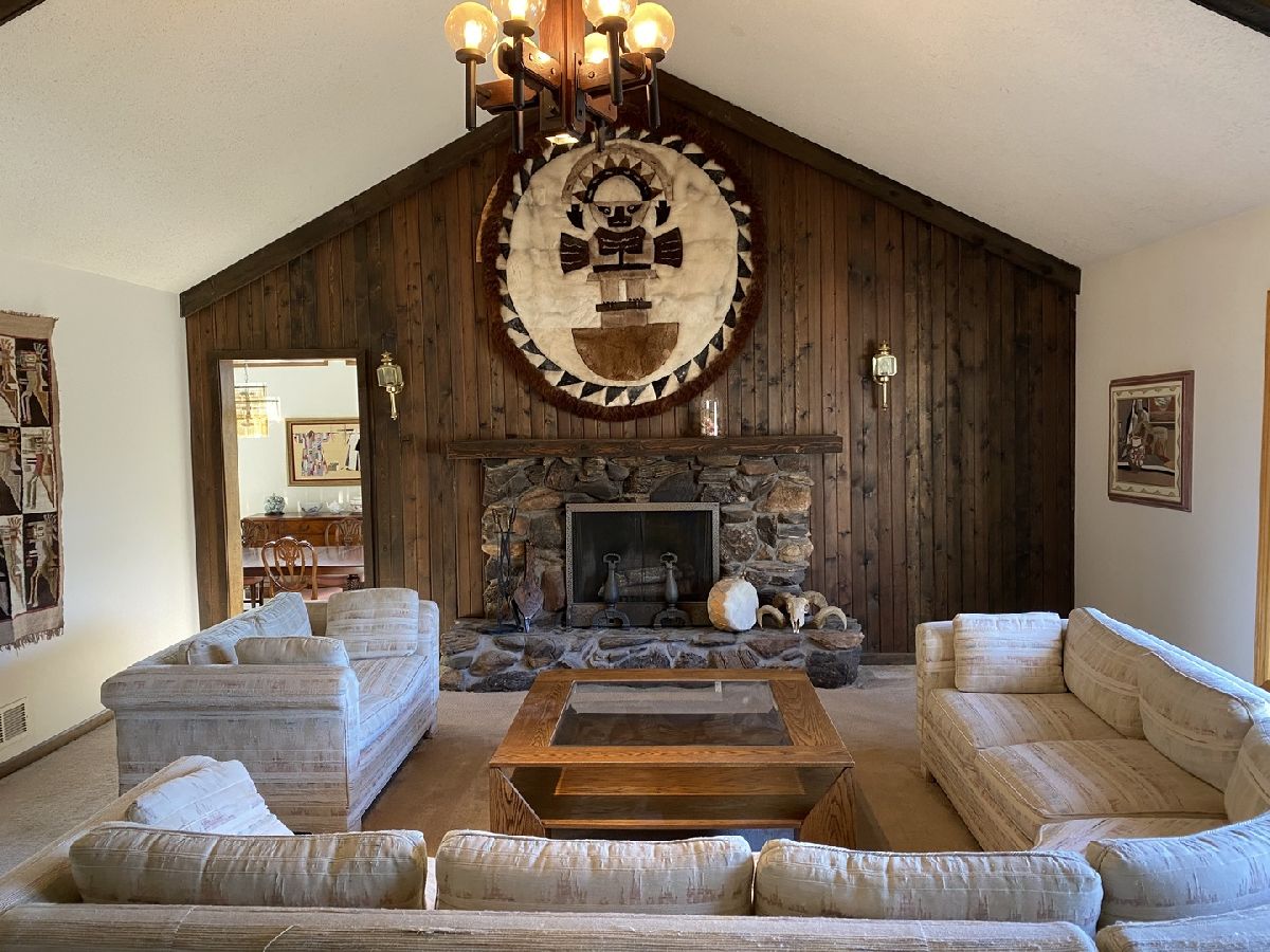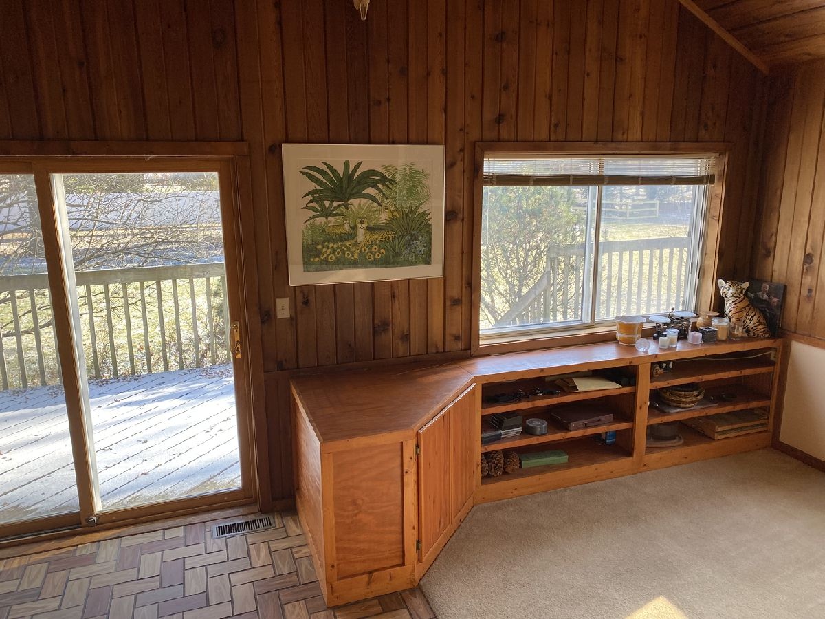 Nestled in a serene, private country setting, this multi-level home offers the perfect blend of tranquility and convenience with access to St. Charles schools. Situated on a spacious 1-acre corner lot adorned with mature trees, this property boasts unique features and endless possibilities. 4 bedrooms and 2.5 baths. Living room with fireplace, with stunning beamed, vaulted ceilings and a large bowed window that floods the space with natural light. Sunken dinning room with beamed vaulted ceiling and sliding glass door to deck. Kitchen with pantry closet and desk area opens to sunken den with pine tongue and grove walls, vaulted beamed ceiling and built in counter top, shelves and cabinet space. Family room with masonry fireplace with wood storage, shelves, cabinet and built ins. Sliding glass door to patio. Two cozy fireplaces to enjoy during cooler months. A basement perfect for storage and/or workshop. A layout with potential for customization to fit your family's needs. This home needs remodeling and TLC but has incredible potential to become your dream home. With its spacious lot, charming features, and great location, it's perfect for creating lifelong memories. Living room and dining room furniture included.